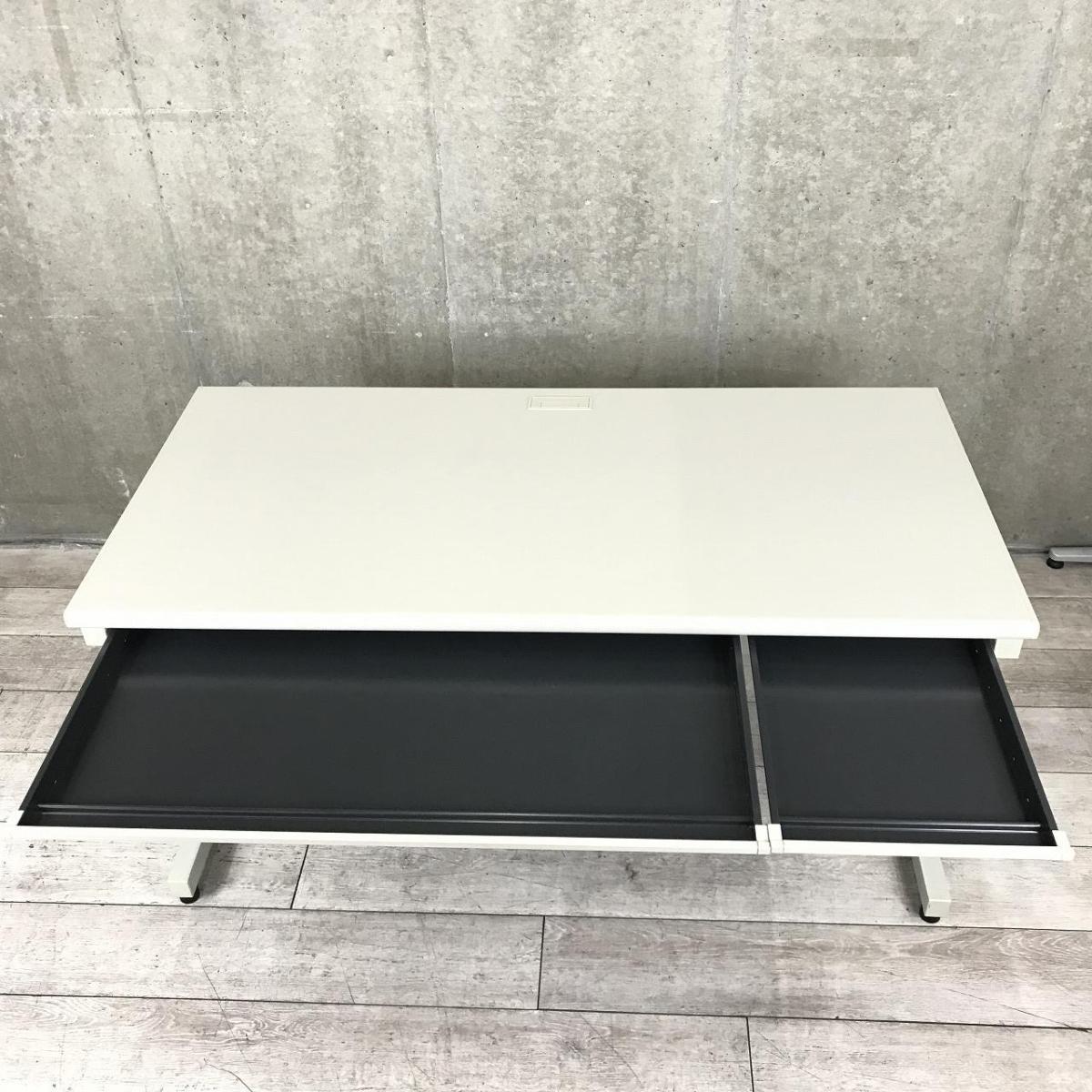 ※引出部分に日焼けによる使用感あり【ワークスペース広々!幅1400㎜のスタイリッシュな平机!】■平机 引き出し付き W1400㎜ ■ホワイト/プラス(PLUS)製 JSシリーズ