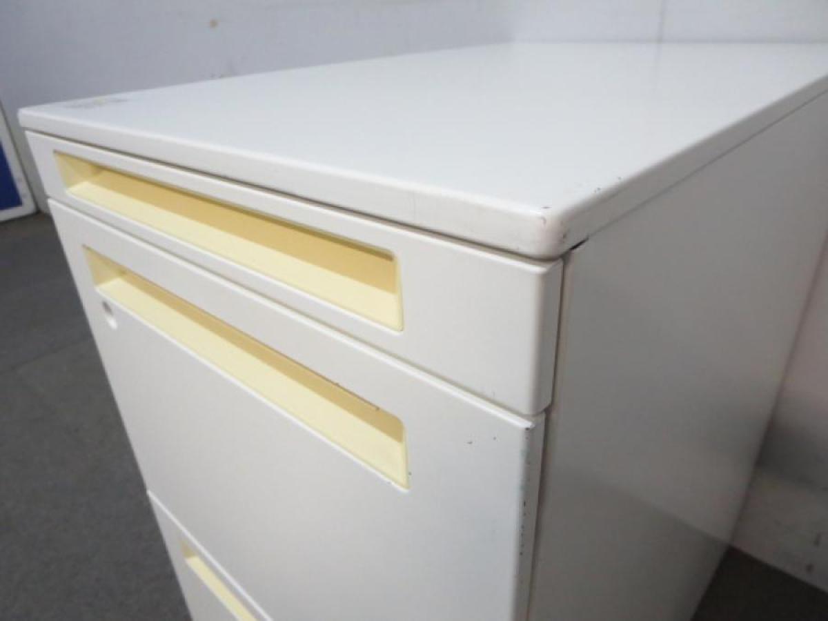 【正面に取っ手が無いフラットなデザイン!キャスター付でレイアウト変更がスムーズ!】■オカムラ(okamura)製 プロユニットシリーズ 3段ワゴン フリアド用ワゴン H650㎜ ■ホワイト ■シリンダー錠 ※キズ・塗装剝がれ有【弊社使用欄:A01042240】