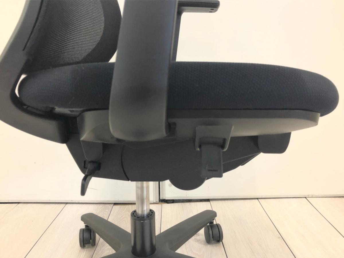 - 座面の高さは上下に90㎜、奥行は前後に50㎜調節可能。さらに骨盤を支えるポスチャーシート採用で着座時の前滑りを防ぎます。