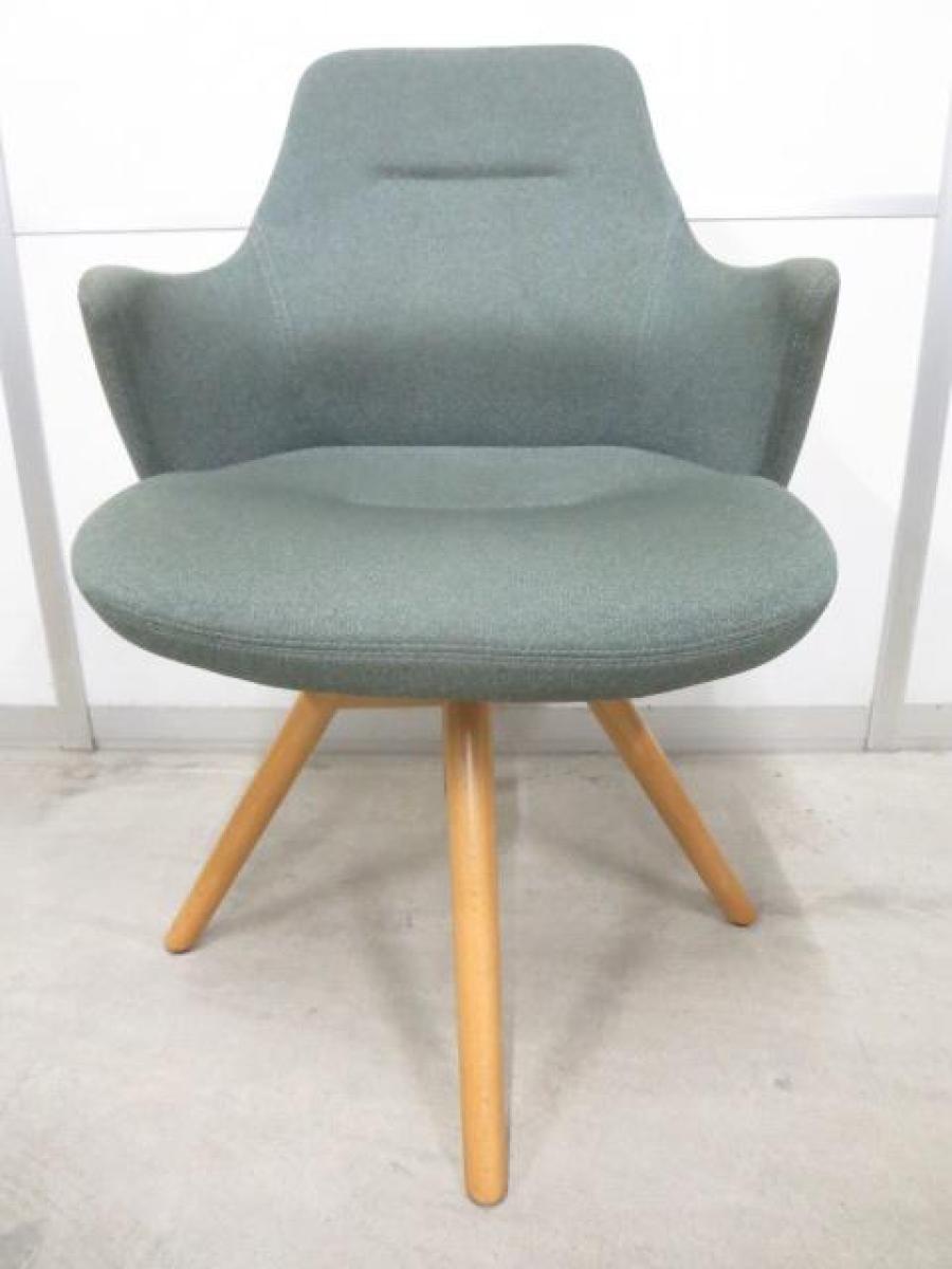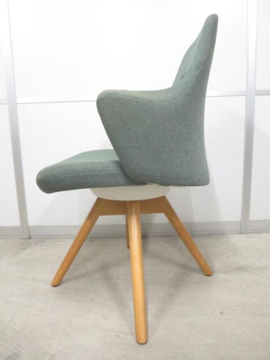 【感性を刺激するデザイン!】■オカムラ ライブス ミーティングチェア 肘付 ダークグリーン 木製脚【Okamura Lives Work Chair】【ABW】 ★- 川崎店