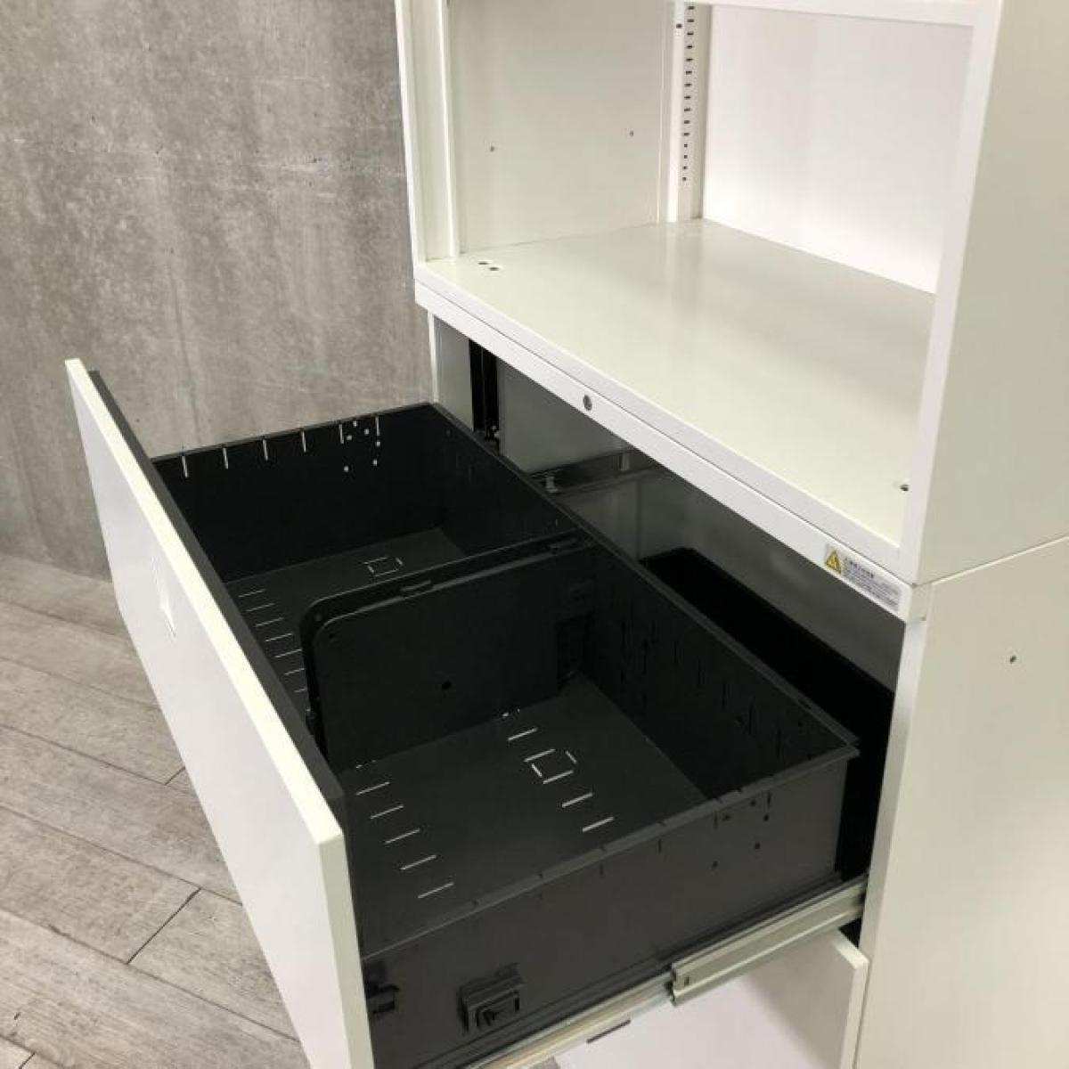 - 一部不具合ありそ引出の開閉不可、施錠不可、棚板無しといったの書庫の本来の効用を果たすための機能以外の一部が使用不可(例、扉、引出の開閉がしづらいなどがある。 )