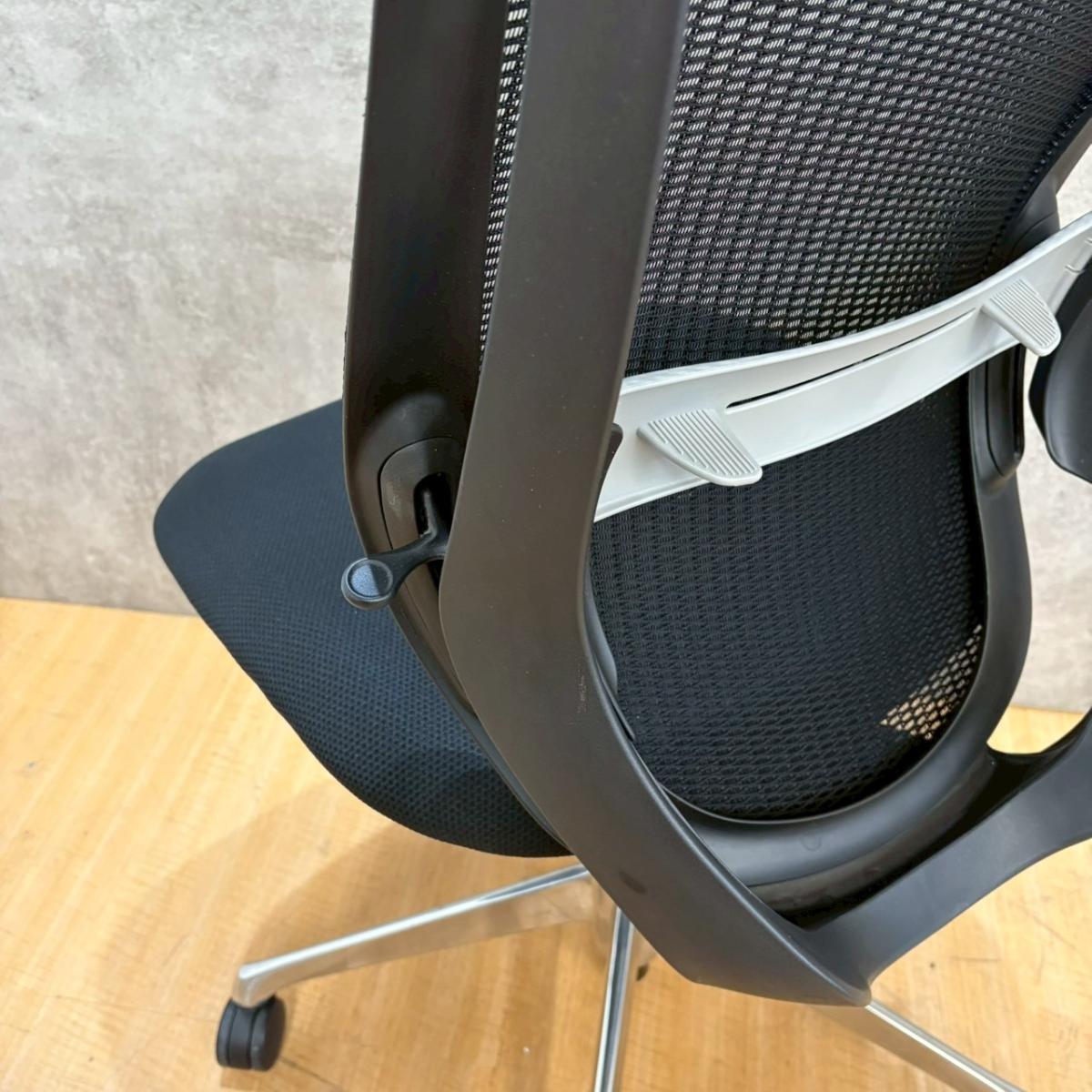 【前傾チルト機能付き!】【ご自宅用にもオススメ!】■オカムラ製 シルフィ(Sylphy)肘無ハイバック ■ブラック×ホワイトシェル ■日焼け有