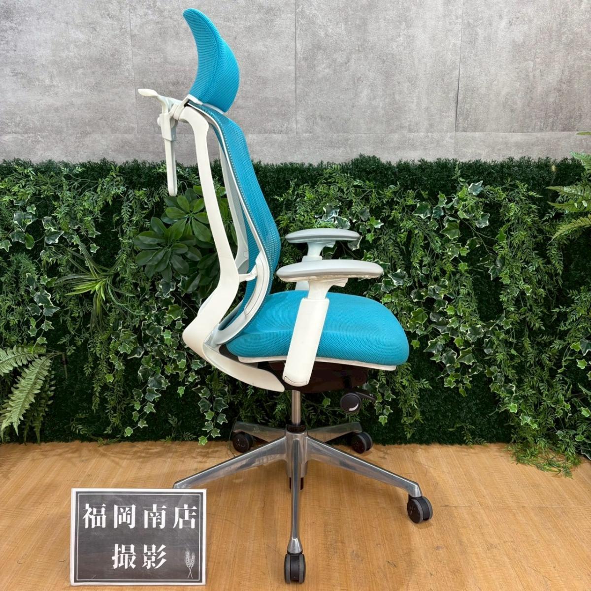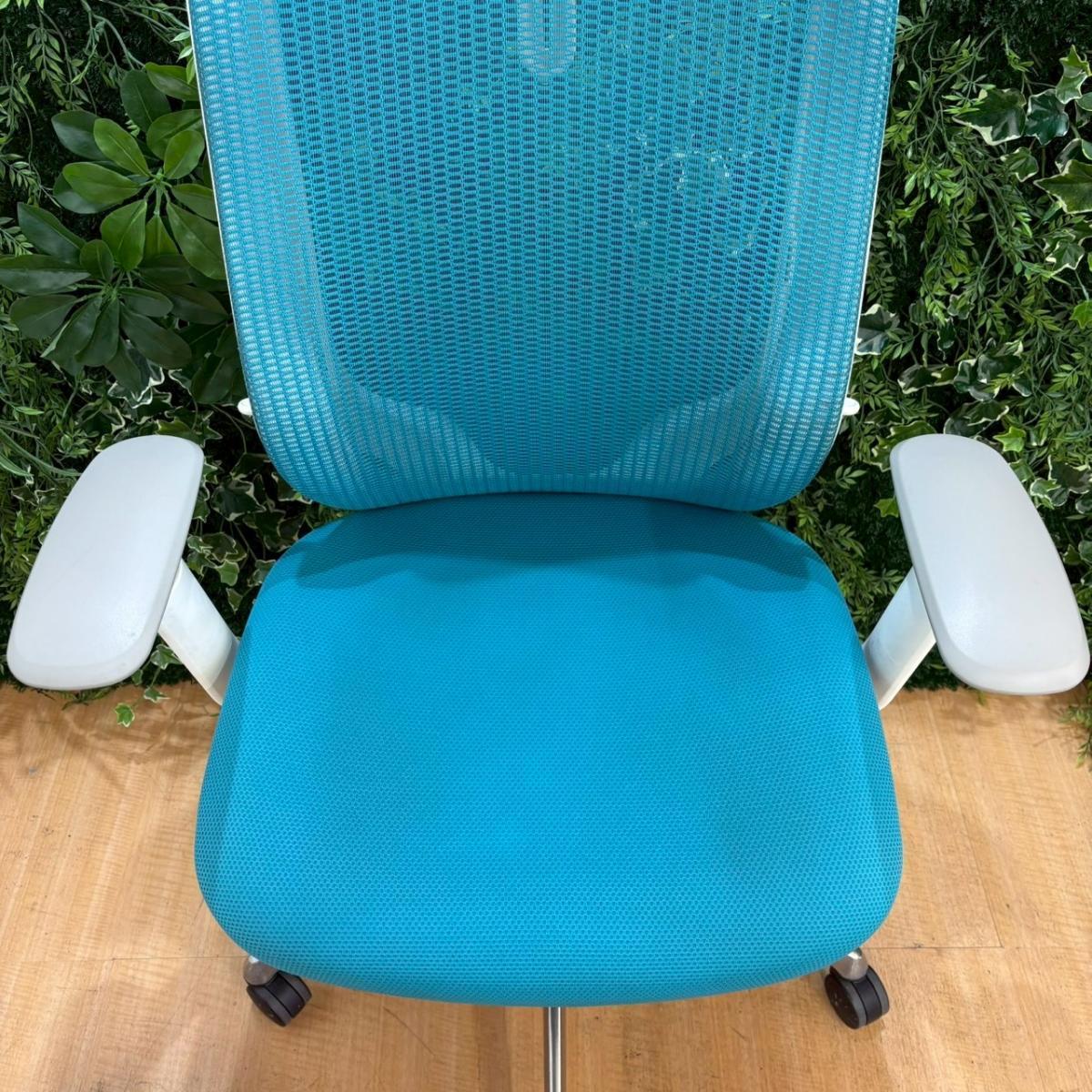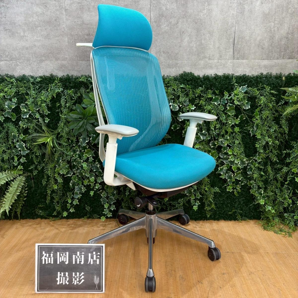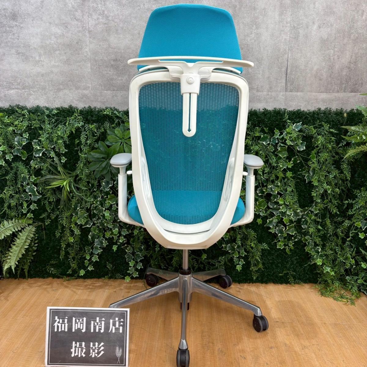 《在庫入替セール/㉕/8》オカムラ製の人気オフィスチェア【シルフィーメッシュ/可動肘/ヘッドレスト付き/ブルーグリーン】が値下されました!- 福岡南店