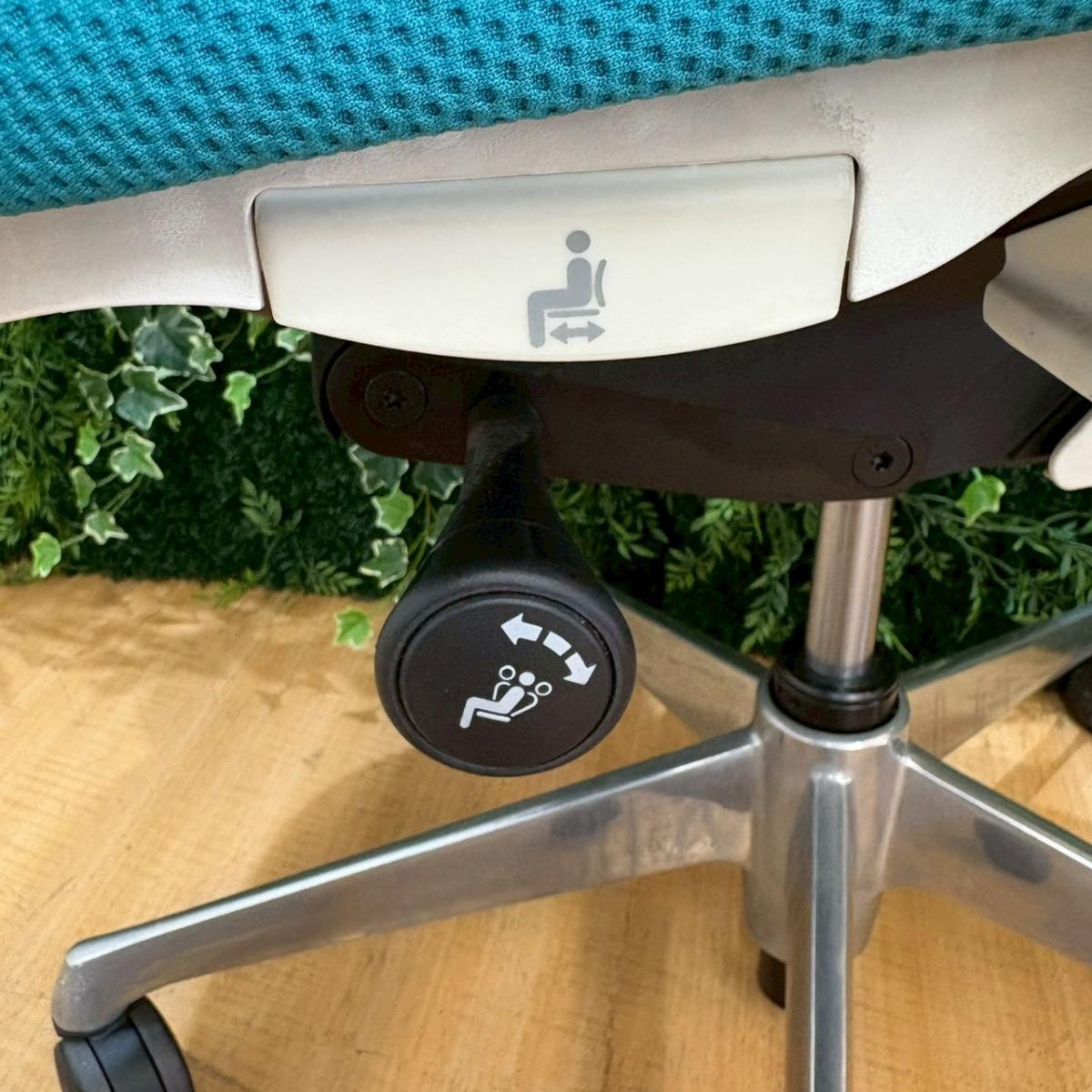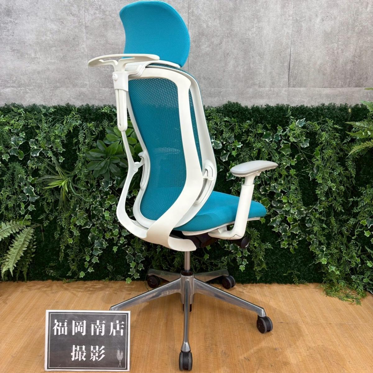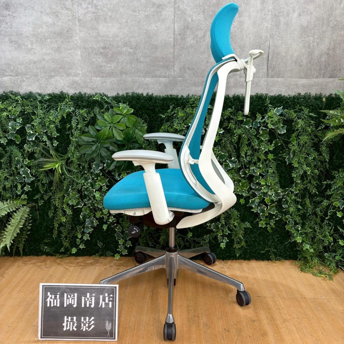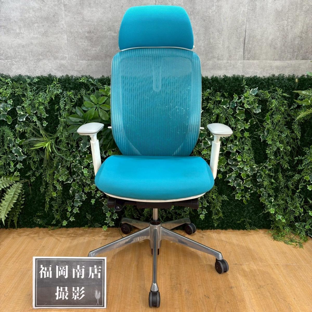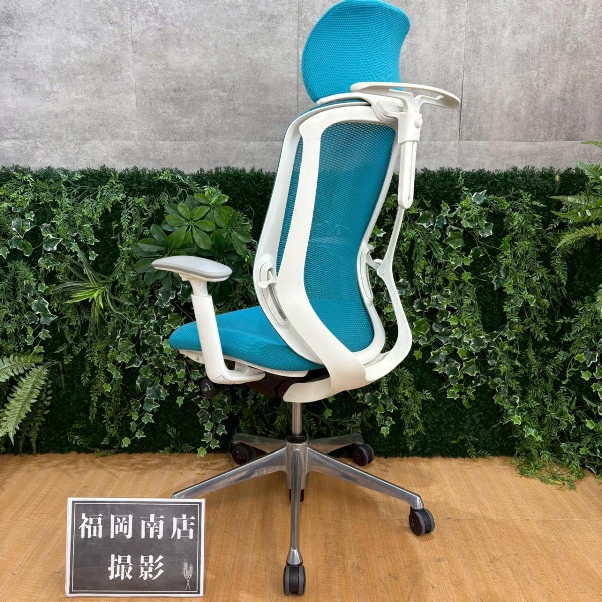 《在庫入替セール/㉕/8》オカムラ製の人気オフィスチェア【シルフィーメッシュ/可動肘/ヘッドレスト付き/ブルーグリーン】が値下されました!- 福岡南店