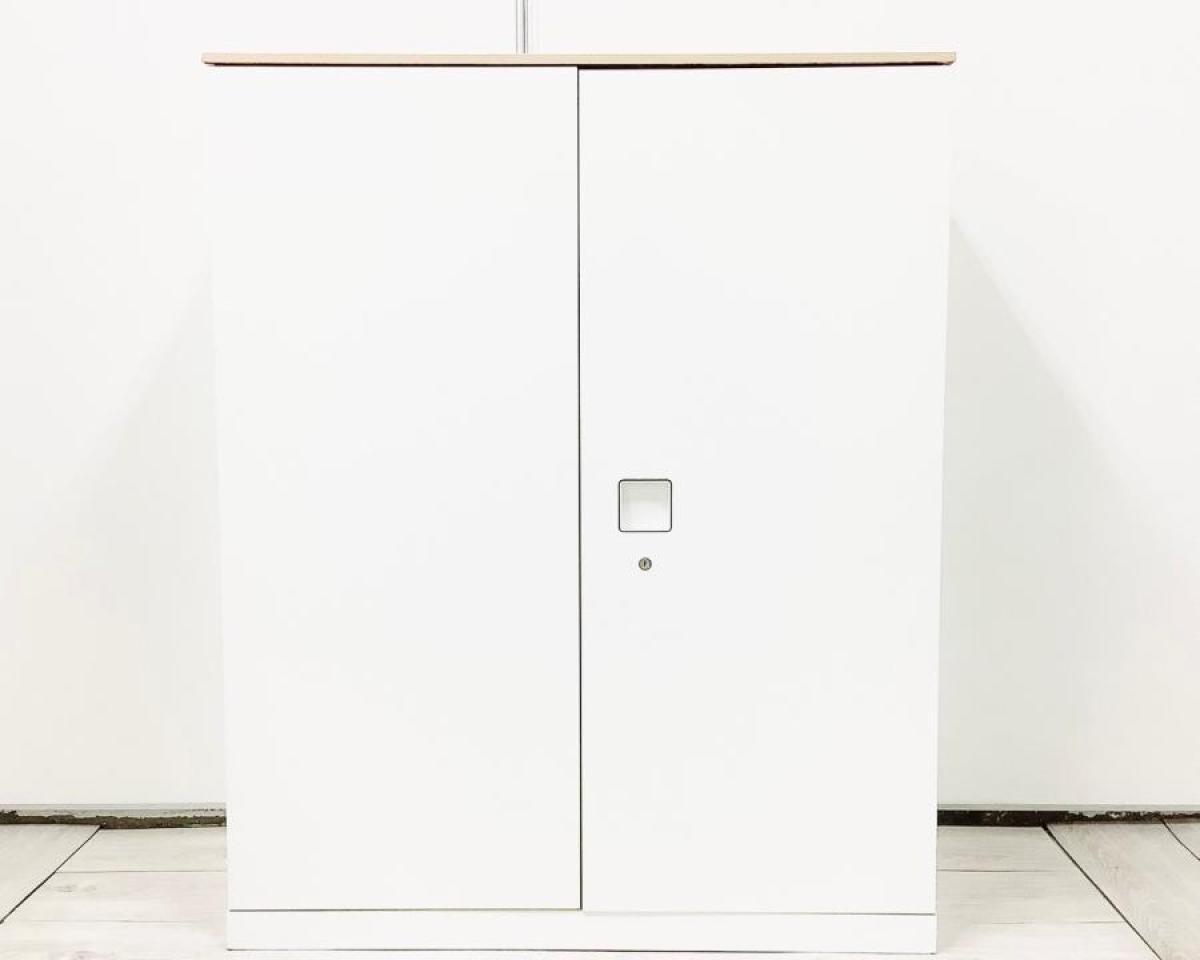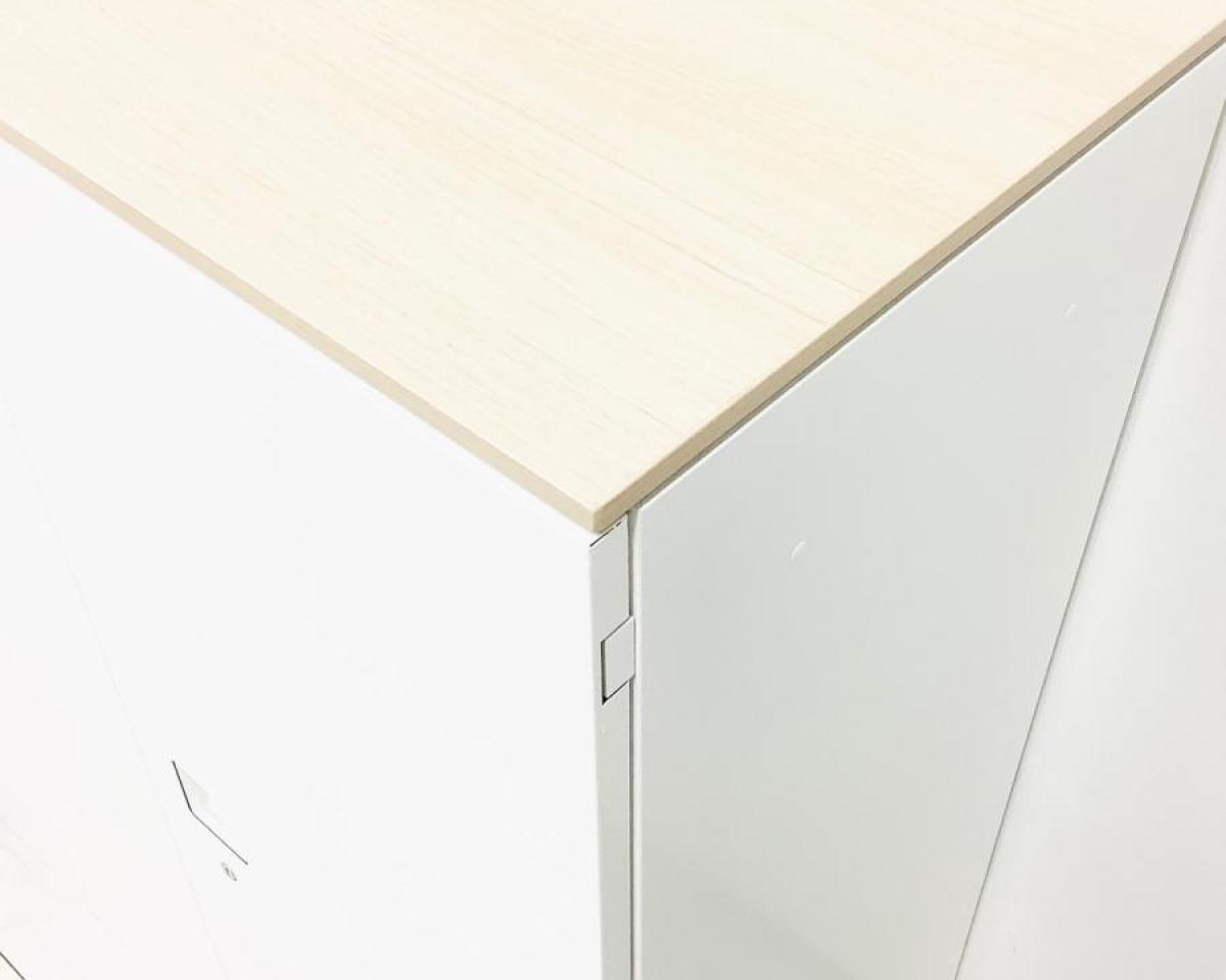 【オフィスの書類をスッキリ整理!取っ手がどの方向からでも開くマルチハンドルが人気!】■オカムラ(okamura)製 レクトラインシリーズ(Rectline) 両開き書庫 ローキャビネット ■天板付き ■シリンダー錠 ■ホワイト