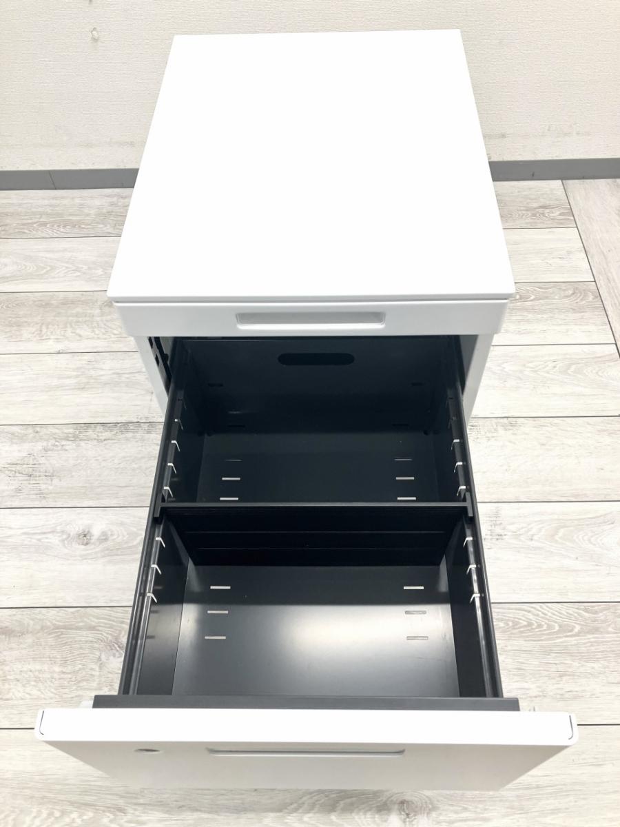 一般的なワゴンより奥行が浅く、限られたデスク下スペースにも設置しやすい設計です。