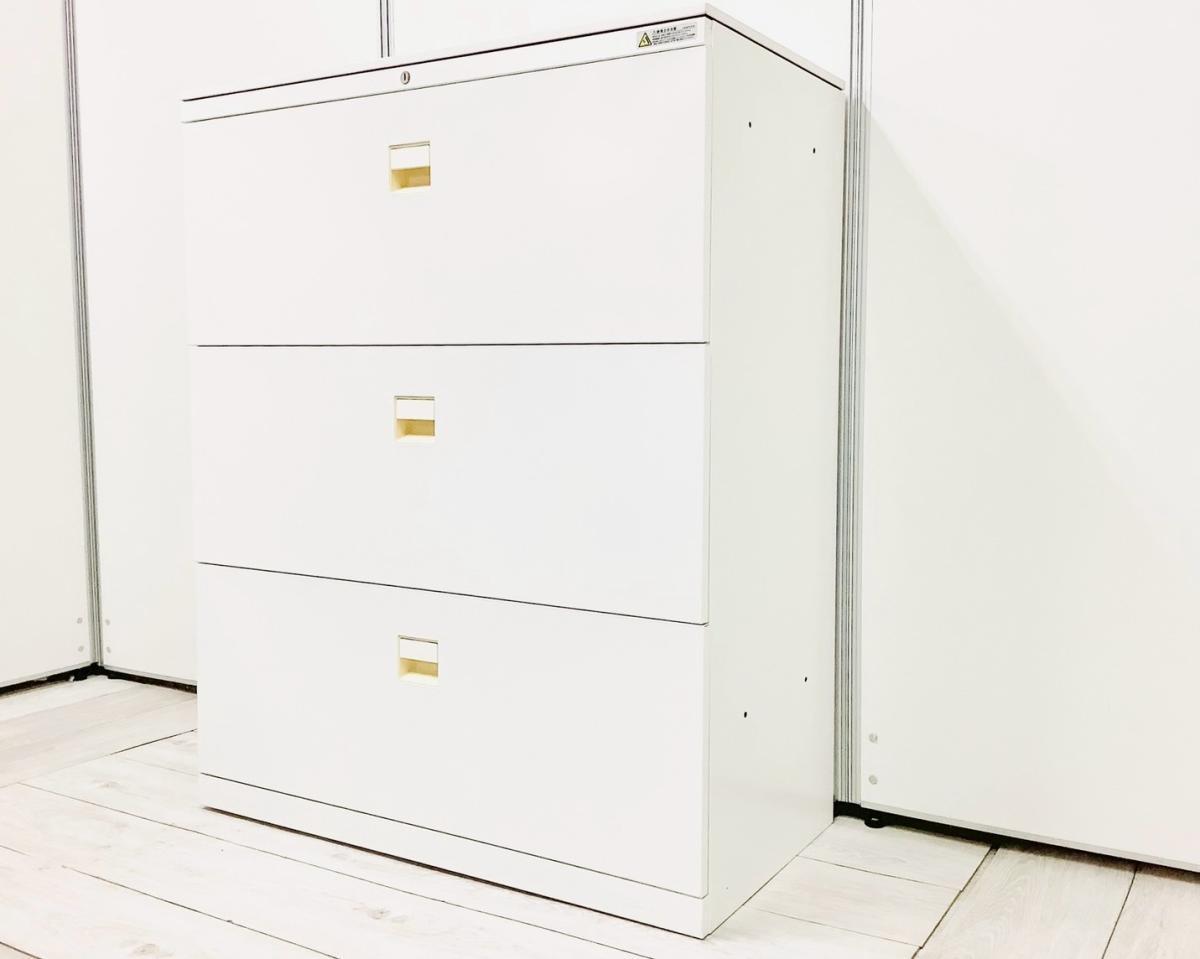【博】オカムラの3段ラテラル書庫【3S/ホワイト色※鍵付き】 ※【博多店在庫品※在庫確認必要:南店でもご案内が可能です】