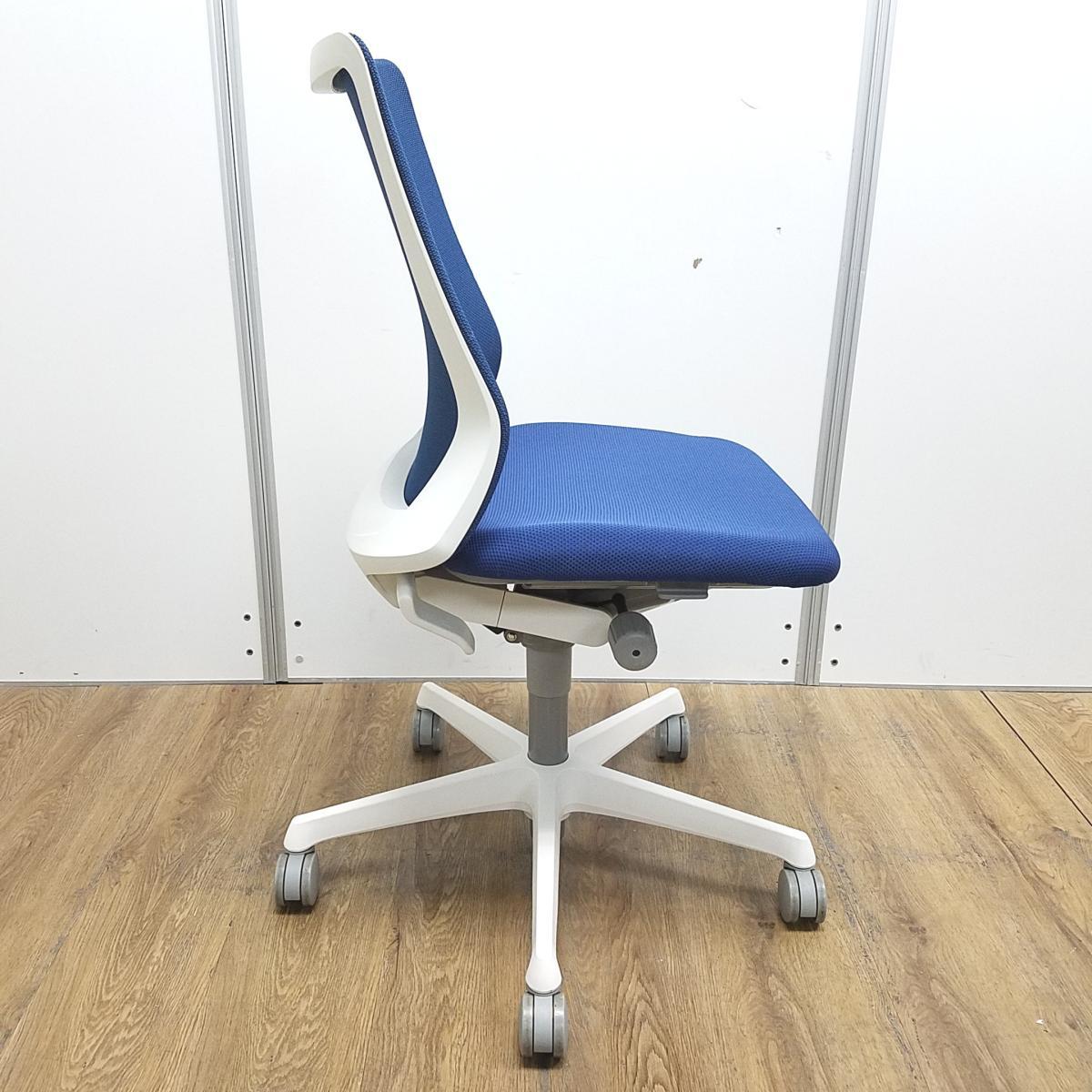 【2023年製の状態良好品!】【腰まわりをしっかりホールド!長時間作業も快適フィット!】■オカムラ(okamura)製 フルーエントチェア(Fluent) ローバック 背面メッシュ ■ミディアムブルー ×ホワイトシェル