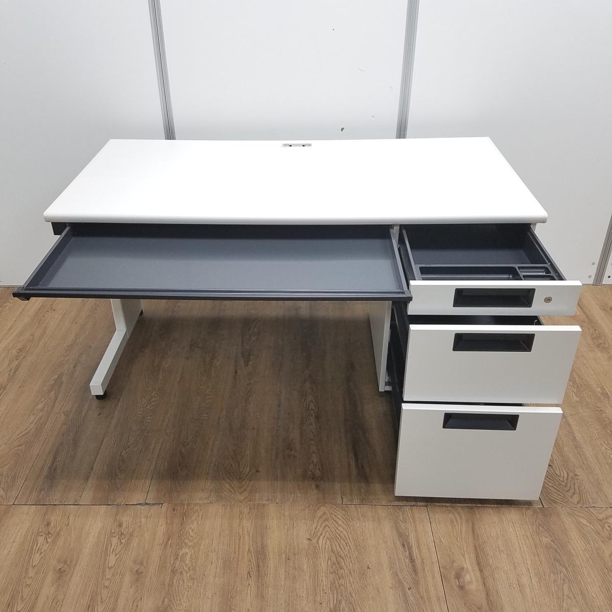 ★プラス製 フラットライン ホワイト W1400xD700xH700サイズ シリンダー 幅広サイズで収納スペースも豊富! 定番ワークデスク W1400片袖机!!在庫がある店舗一覧