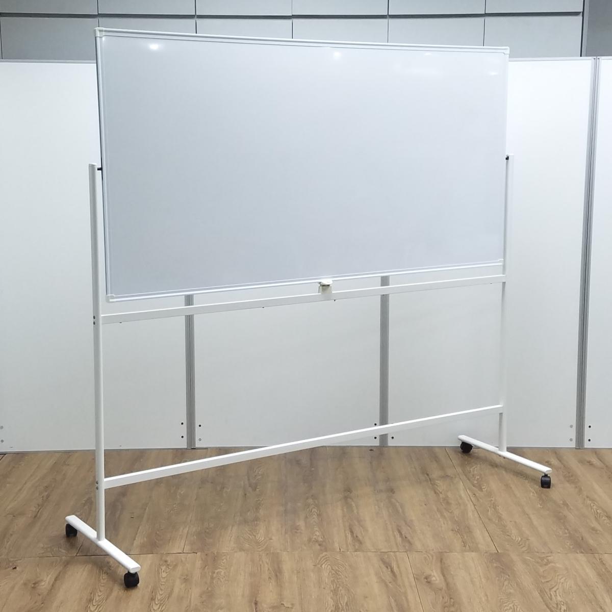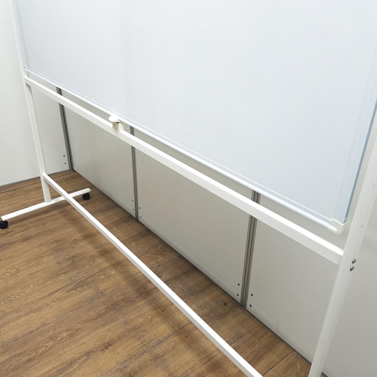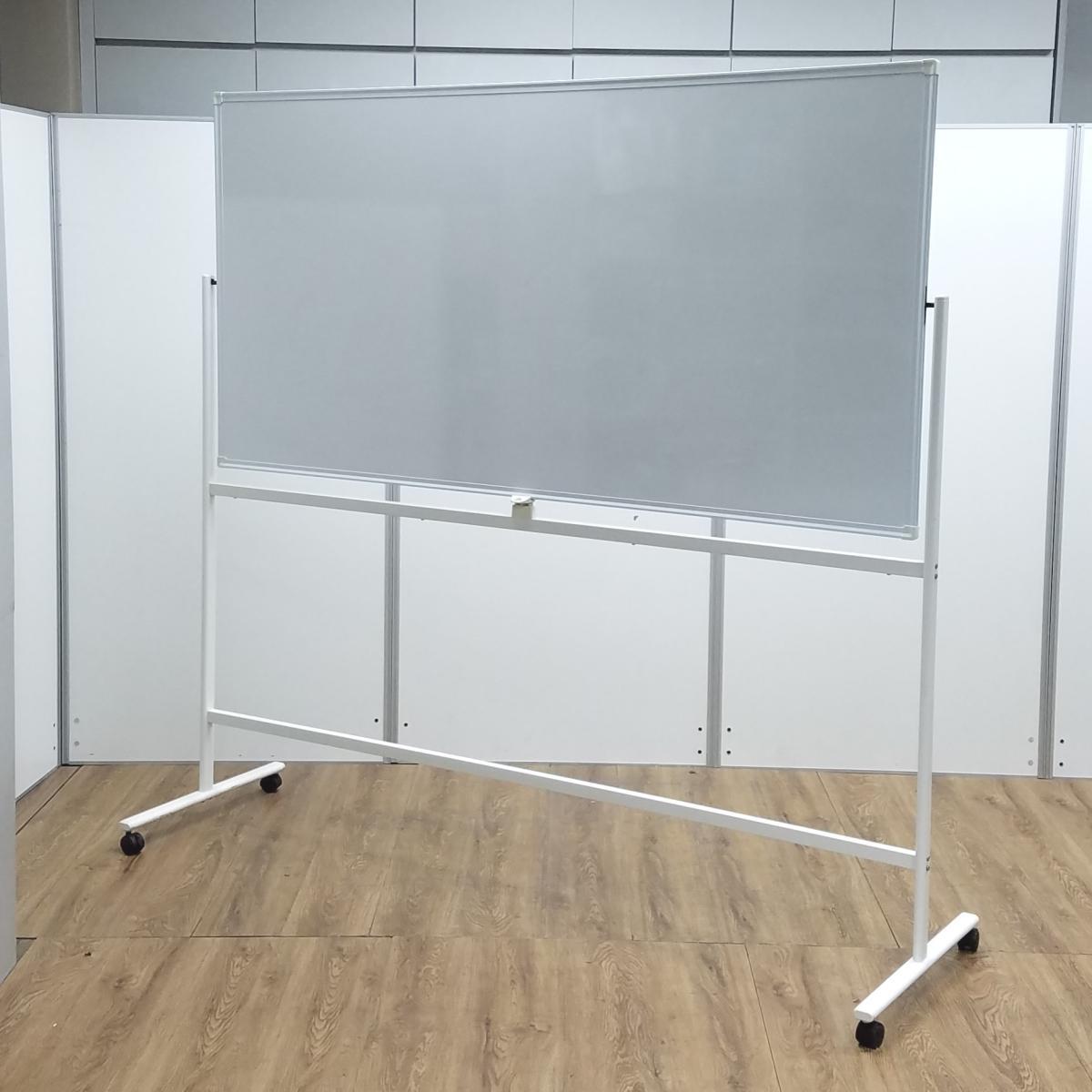 ★【マーカー受けなし】 ホワイト W1800×H1800サイズ 両面タイプ 回転可能 キャスター付 オフィス会議の必需品! ミーティングにもオススメ! 自立式脚付ホワイトボード!!- 京都東寺店