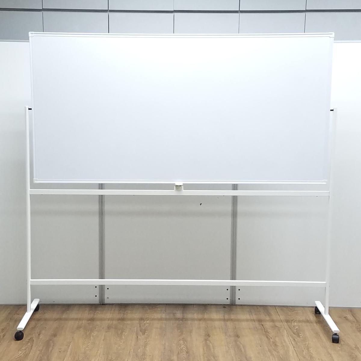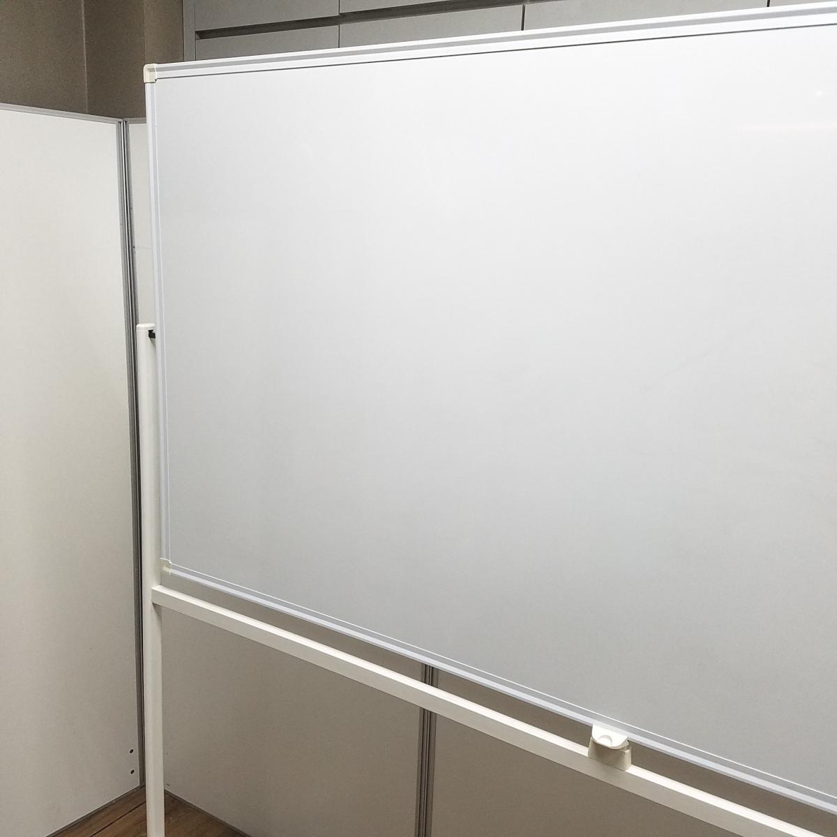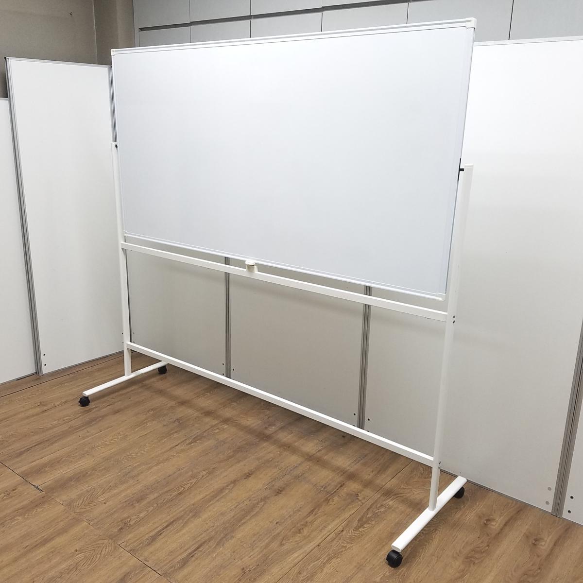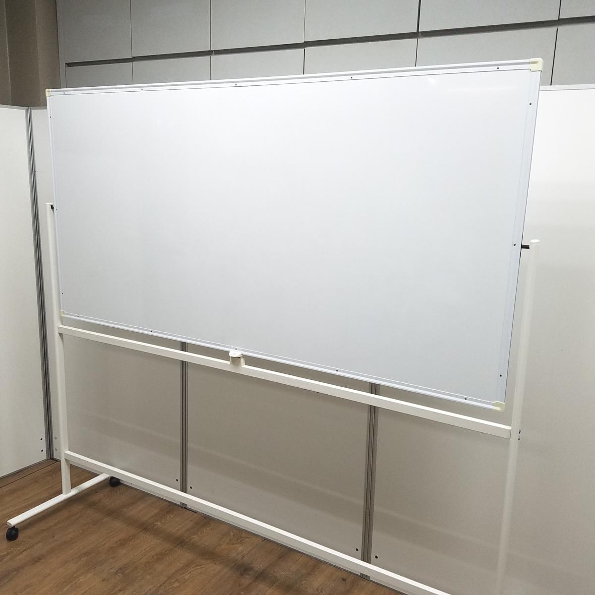 ★【マーカー受けなし】 ホワイト W1800×H1800サイズ 両面タイプ 回転可能 キャスター付 オフィス会議の必需品! ミーティングにもオススメ! 自立式脚付ホワイトボード!!- 京都東寺店