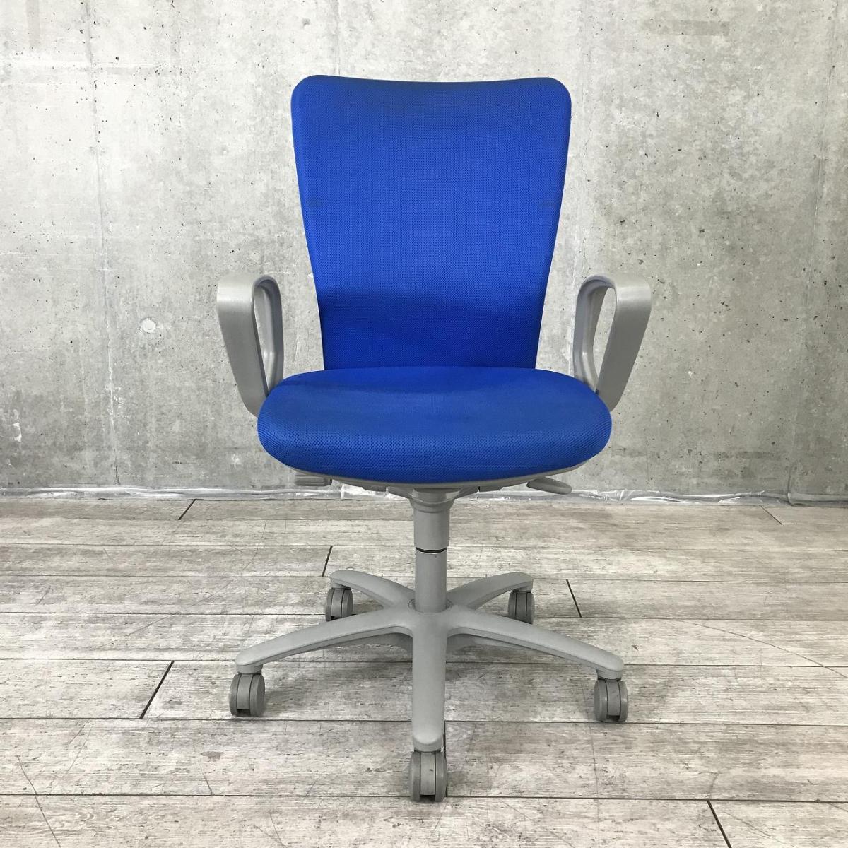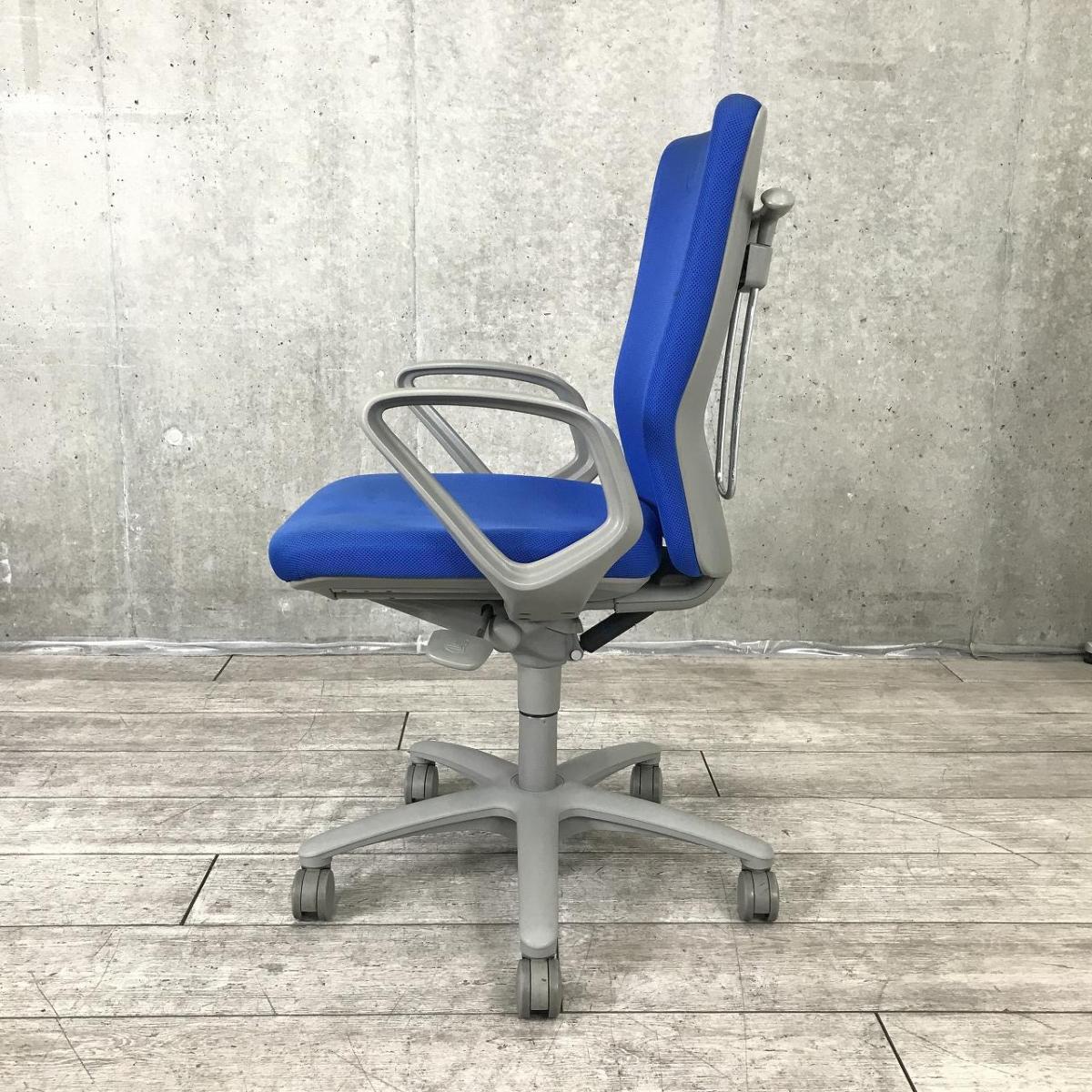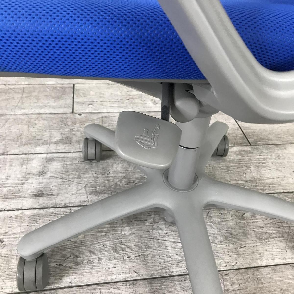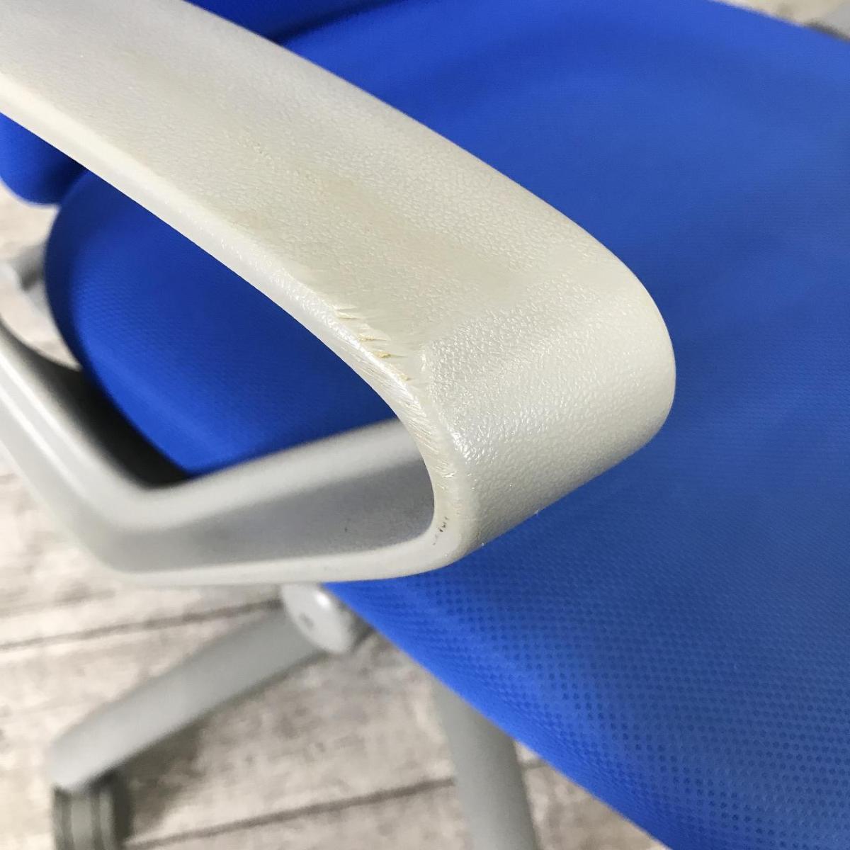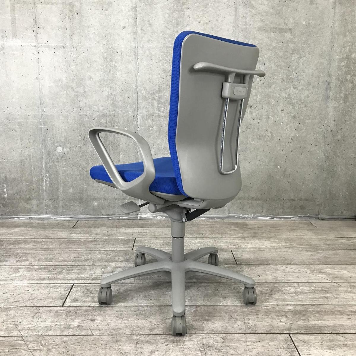 【長年愛されるロングセラー商品!厚めのクッションで疲れにくい!】■オカムラ(okamura)製 カロッツァ(Carrozza)チェア 肘付 ハイバック ■サークル肘・ハンガー付 ■ブルー×グレーシェル ※肘キズ・背面たるみ有- 大手町・神田サテライト