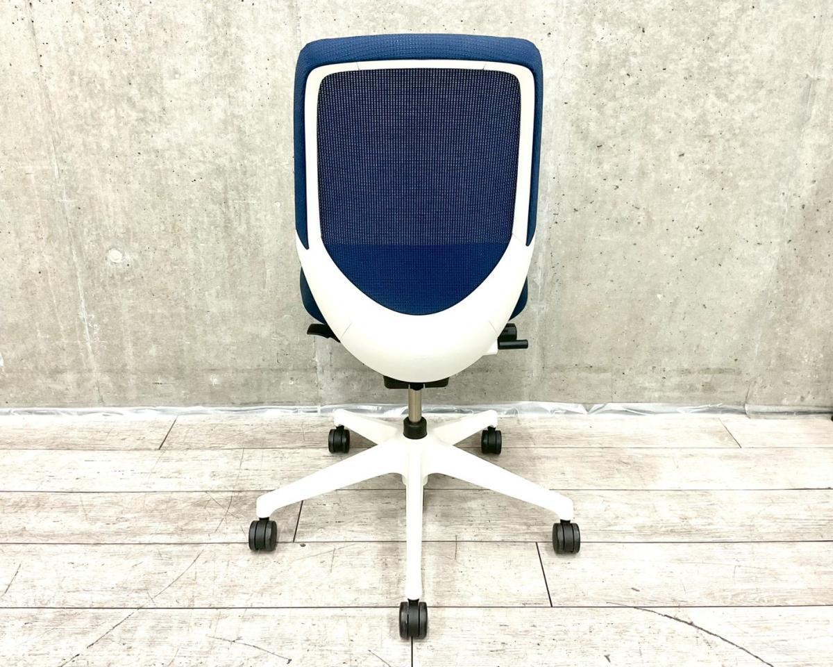 【定価約8万円】【オフィスの今を、美しく快適に!落ち着きのある新世代ワークチェア】■イトーキ(ITOKI)製 ノートチェア 肘無ハイバック ■ネイビーブルー×ホワイトシェル ■背面メッシュ【AD】