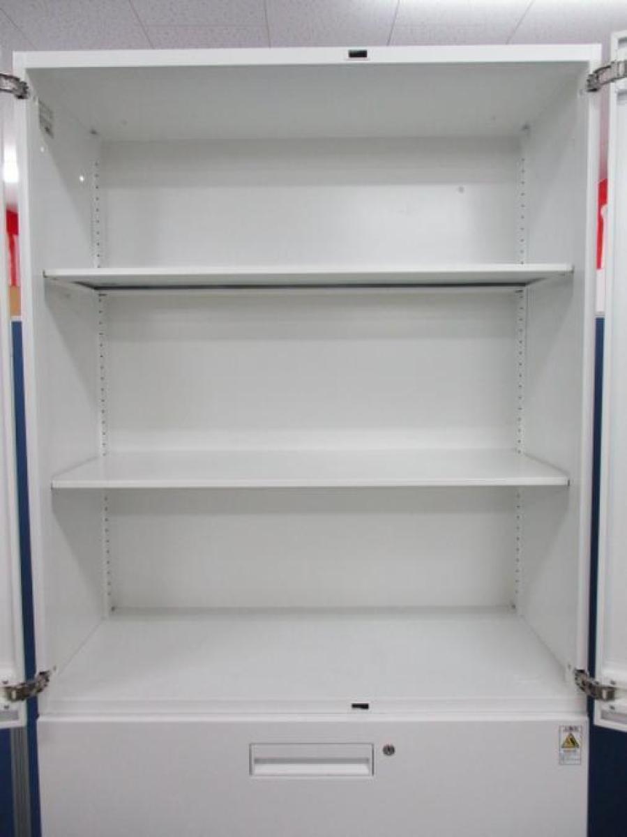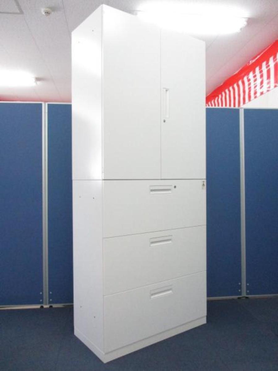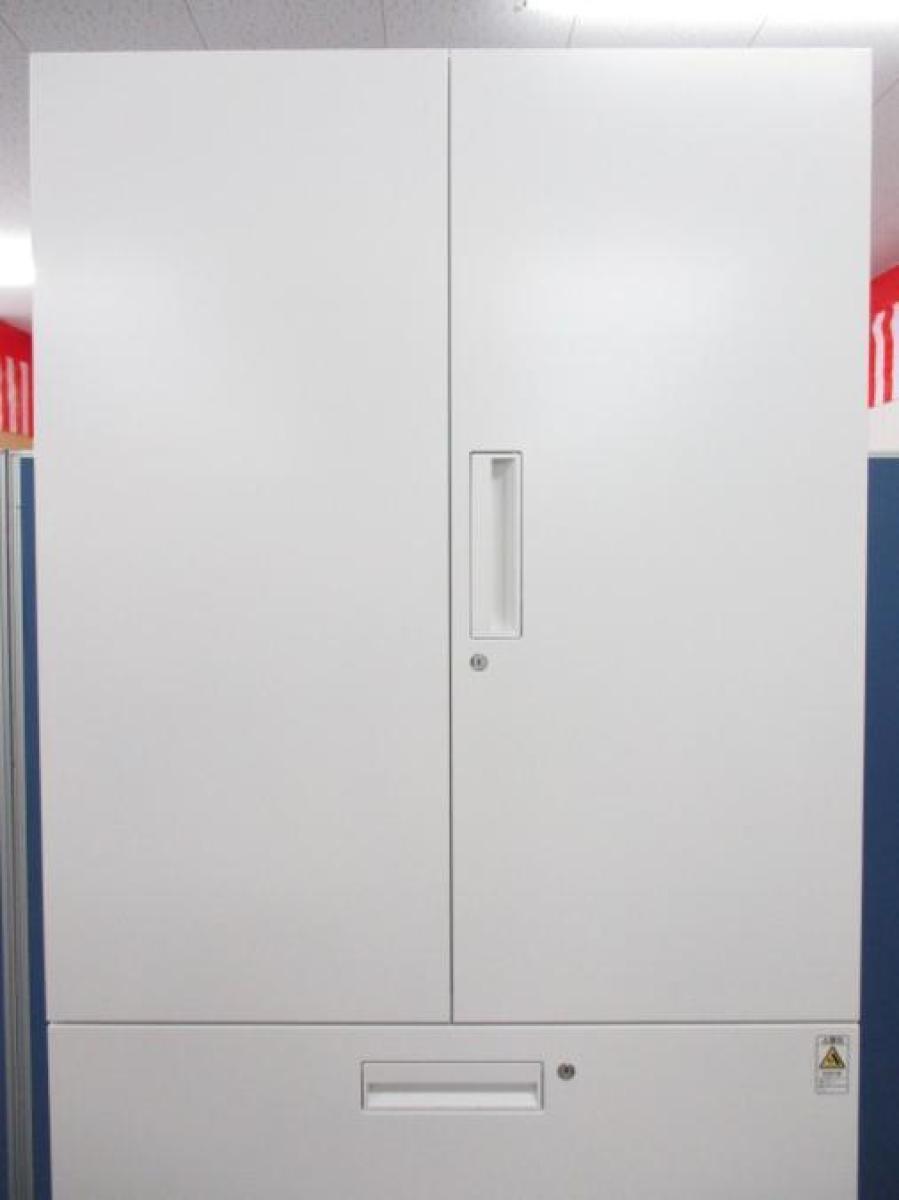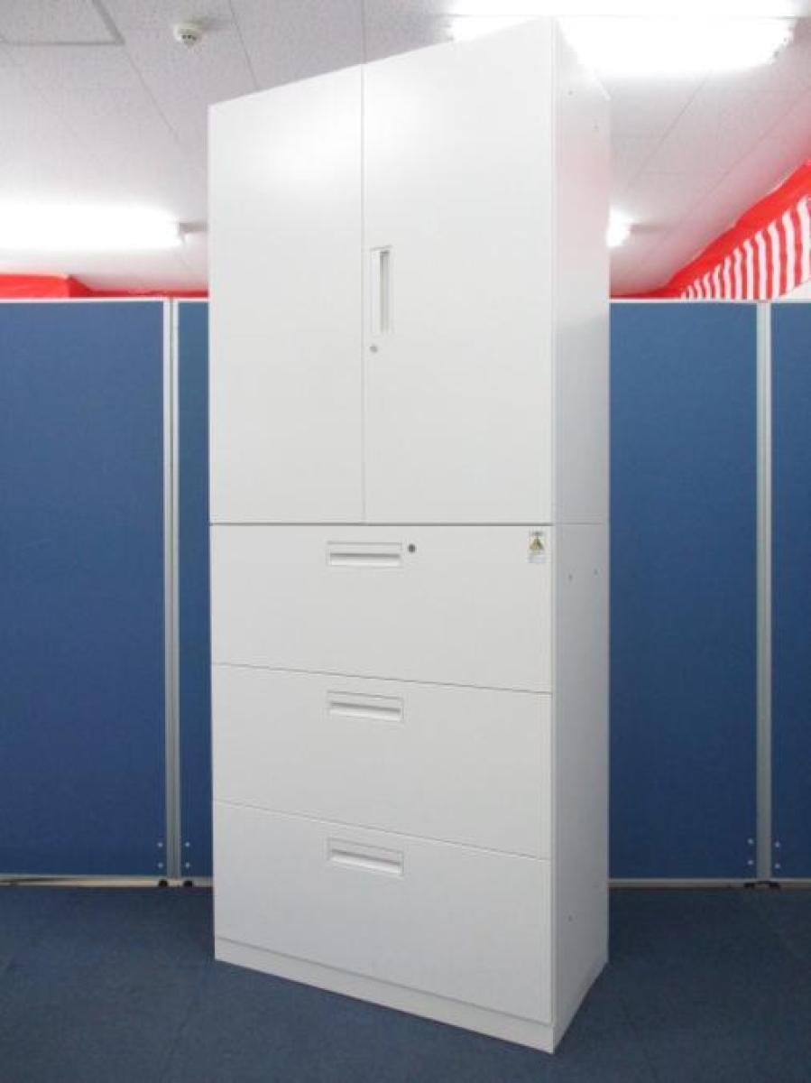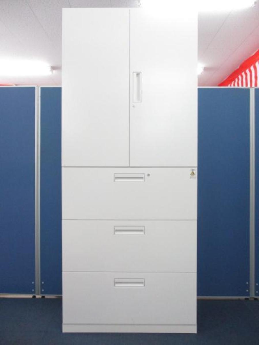 【収納量抜群の書庫セット!観音開き+引き出しタイプの人気の組み合わせ!】■コクヨ(KOKUYO)製 エディアシリーズ(EDIA) 両開き+3段ラテラル 書庫セット ハイキャビネット ■シリンダー錠 ■ホワイト