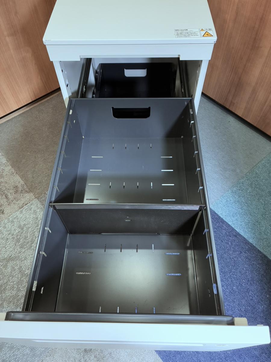 - 一部不具合ありその脇机・ワゴンの本来の効用を果たすための機能以外の一部が使用不可な状態。(例、引出が開閉しづらい、 キャスターロック機能使用不可、ラッチ不良 等がある。)