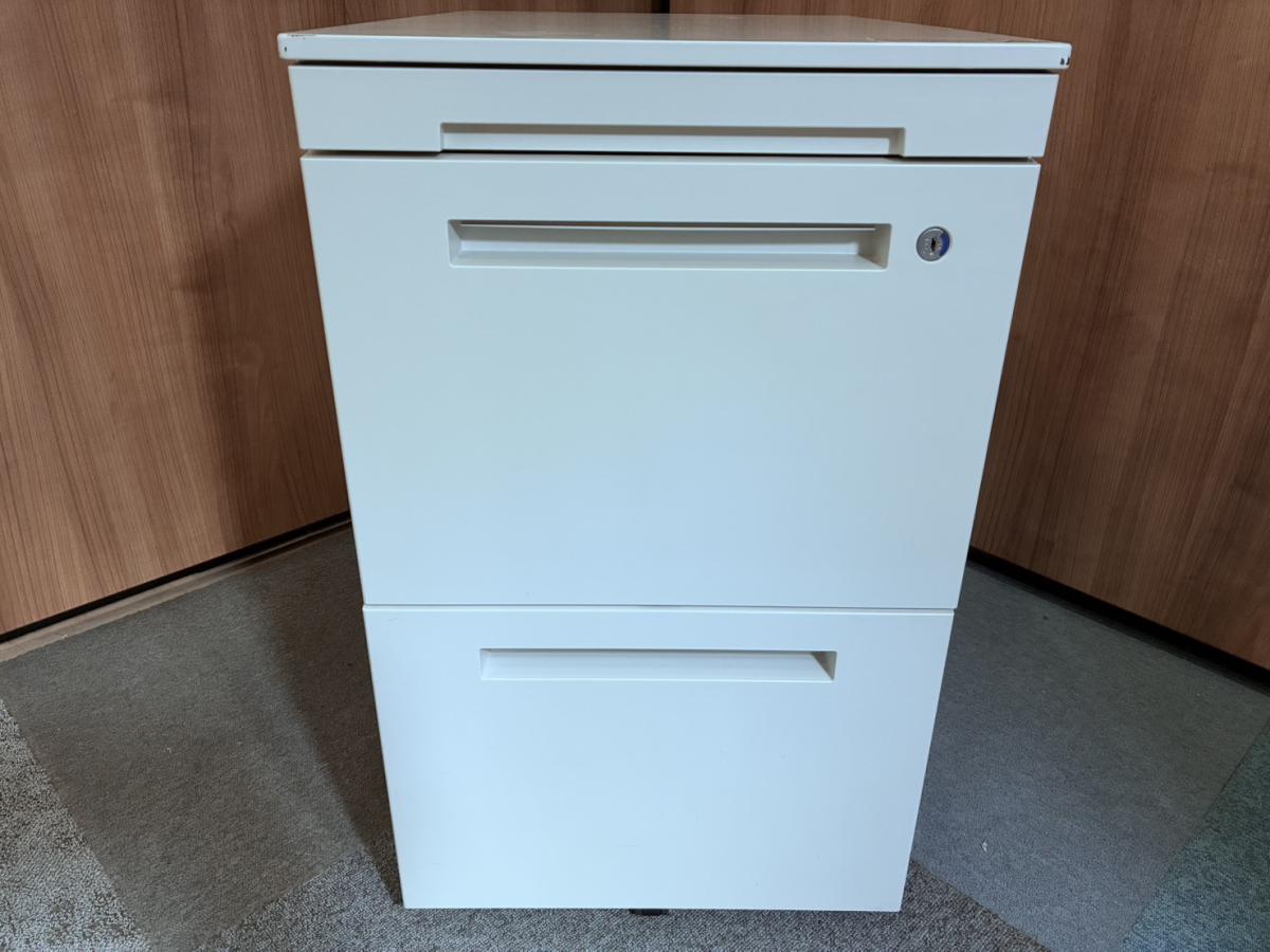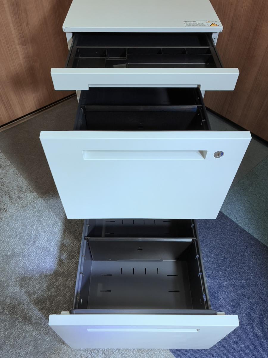 【デスク下の収納・書類管理に!使いやすさ抜群のキャスター付き3段ワゴン!!】 ■イトーキ(ITOKI)製 CZRシリーズ 3段ワゴン デスクインワゴン H600㎜ ■キャスター付 ■シリンダー錠 ■ホワイト- 名古屋本店