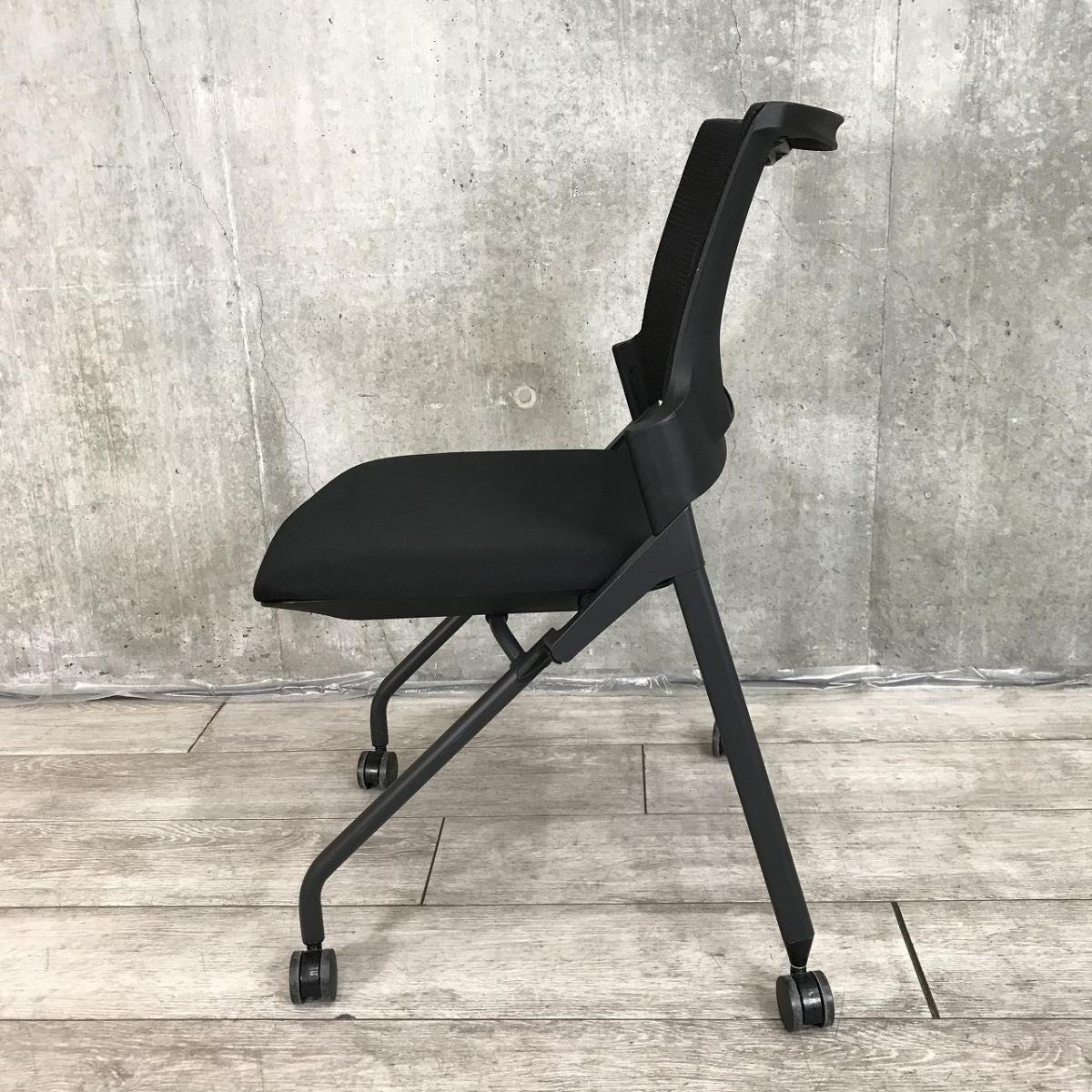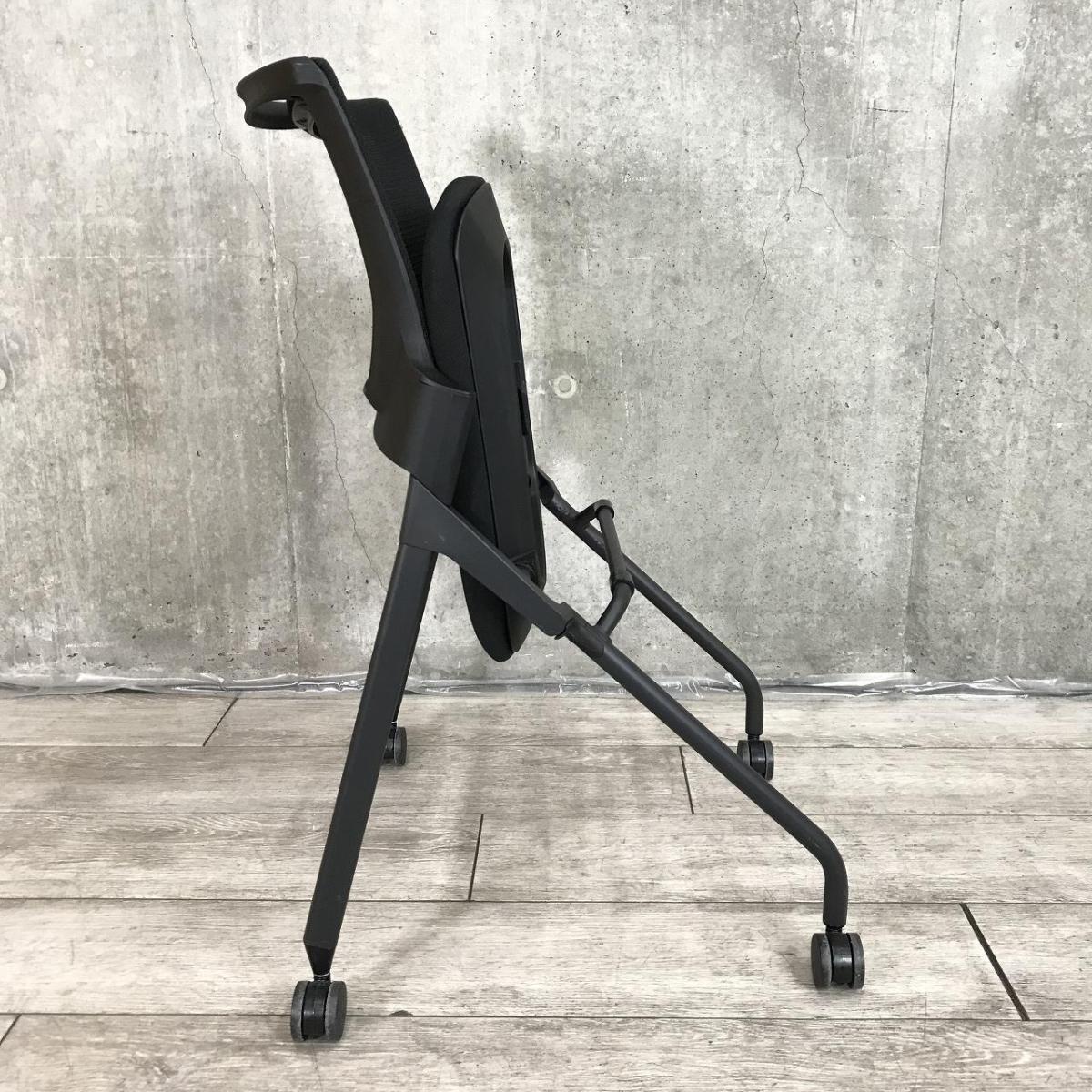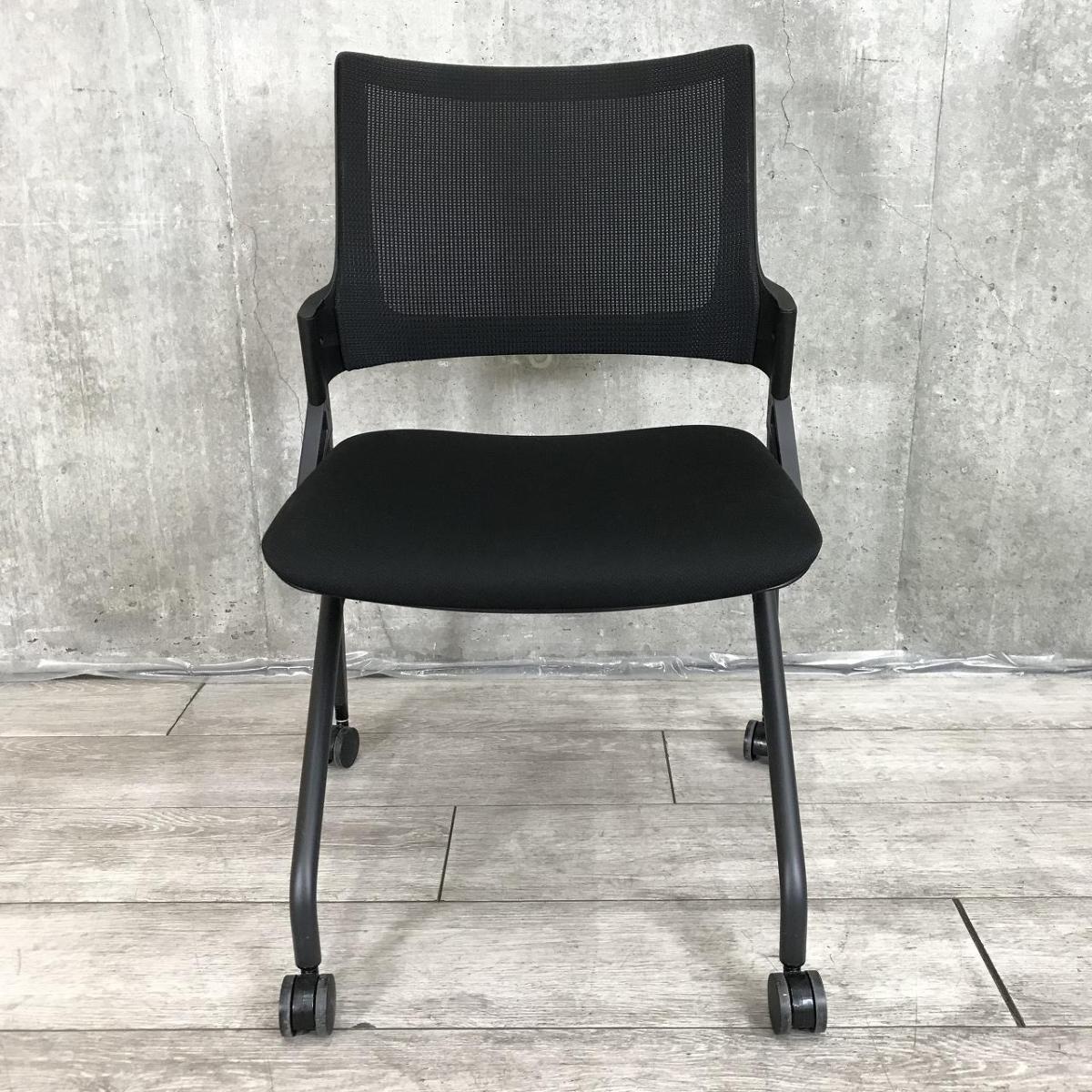 【省スペース収納&キャスター付きの万能チェア!】■イトーキ(ITOKI)製 モノンチェア(Monon) ネスティングチェア ミーティングチェア ■背面メッシュ ■キャスター付 ■ブラック- 茨城南店
