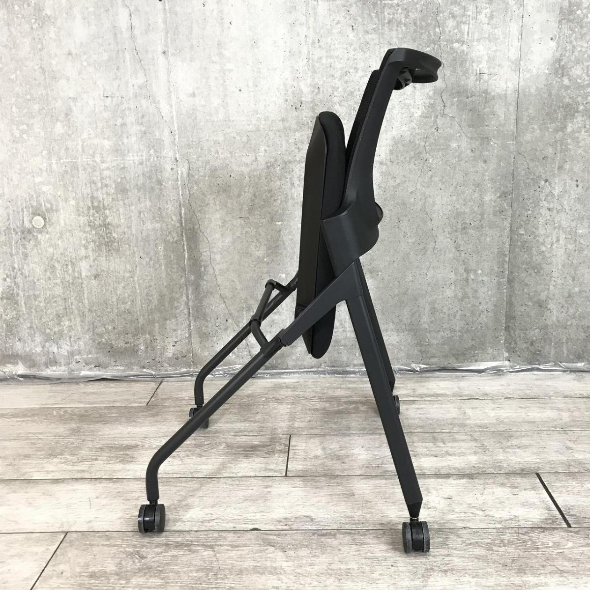 【省スペース収納&キャスター付きの万能チェア!】■イトーキ(ITOKI)製 モノンチェア(Monon) ネスティングチェア ミーティングチェア ■背面メッシュ ■キャスター付 ■ブラック