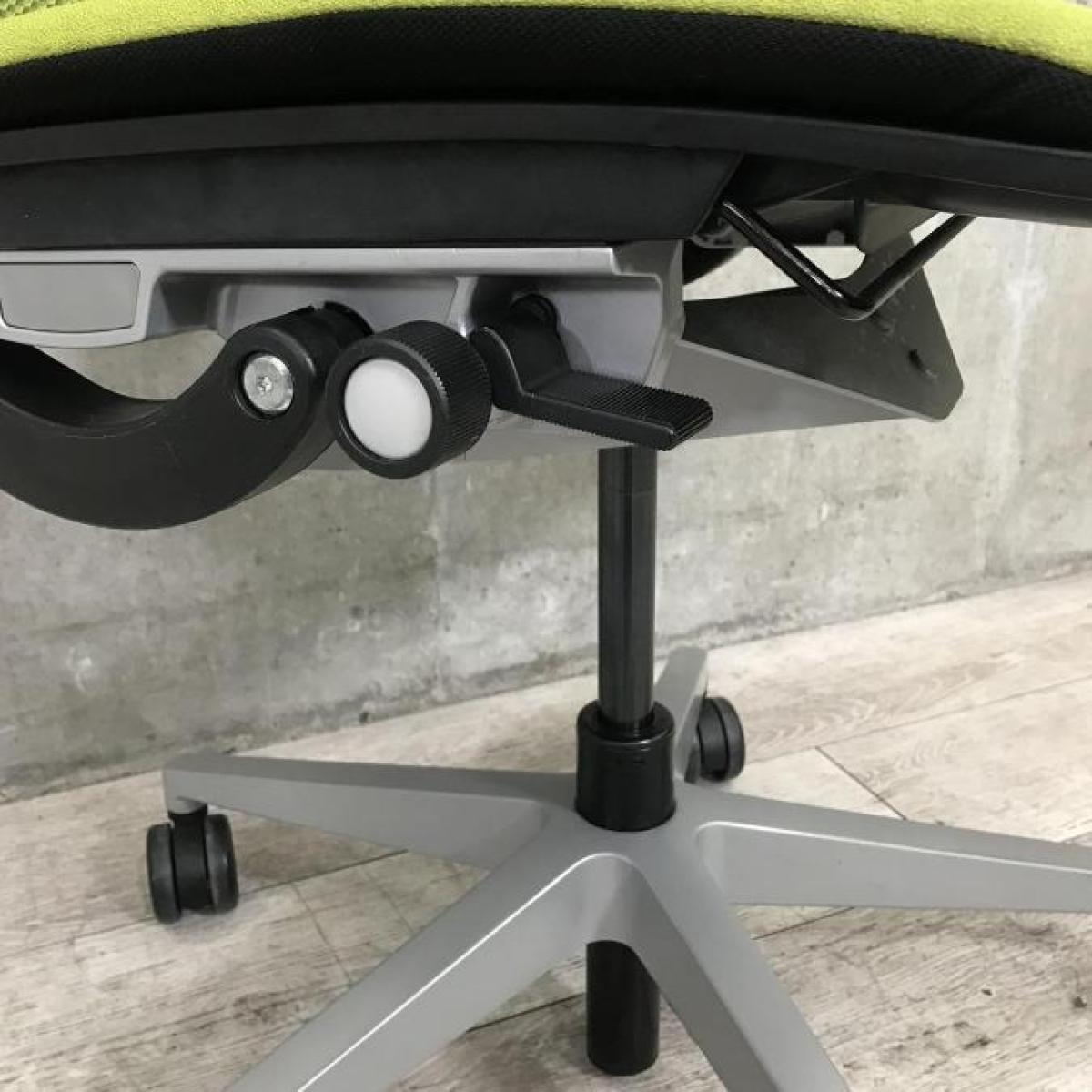 快適な座り心地に不可欠な調節機能である、上下昇降、座面の奥行き調整、リクライニングなどを備えており、操作もわかりやすく好評です。 特に、座面の奥行きは、座面下の左右に通った細いバーで調整でき、座ったままで軽やかに滑るように調整が可能です。 価格面では、新品では高めですが、中古は流通も多く、定価の3割前後の価格で高級チェアの座り心地を手に入れることができます!