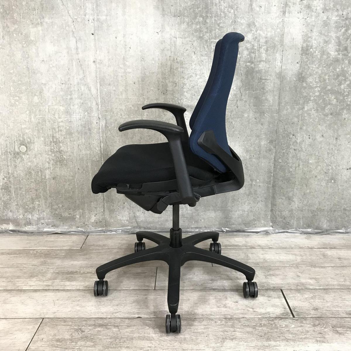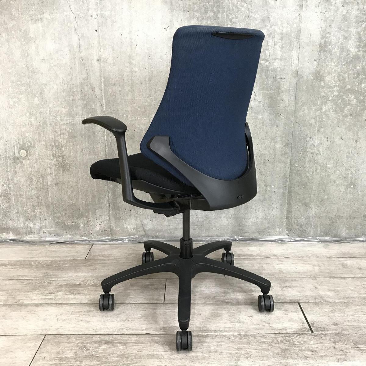 【姿勢の変化にフレキシブルに対応!スタイリッシュなデザイン!】■イトーキ(ITOKI) エフチェア(f) 肘付き ローバック ■固定肘 ■背面ネイビーブルー/座面ブラック×ブラックシェル