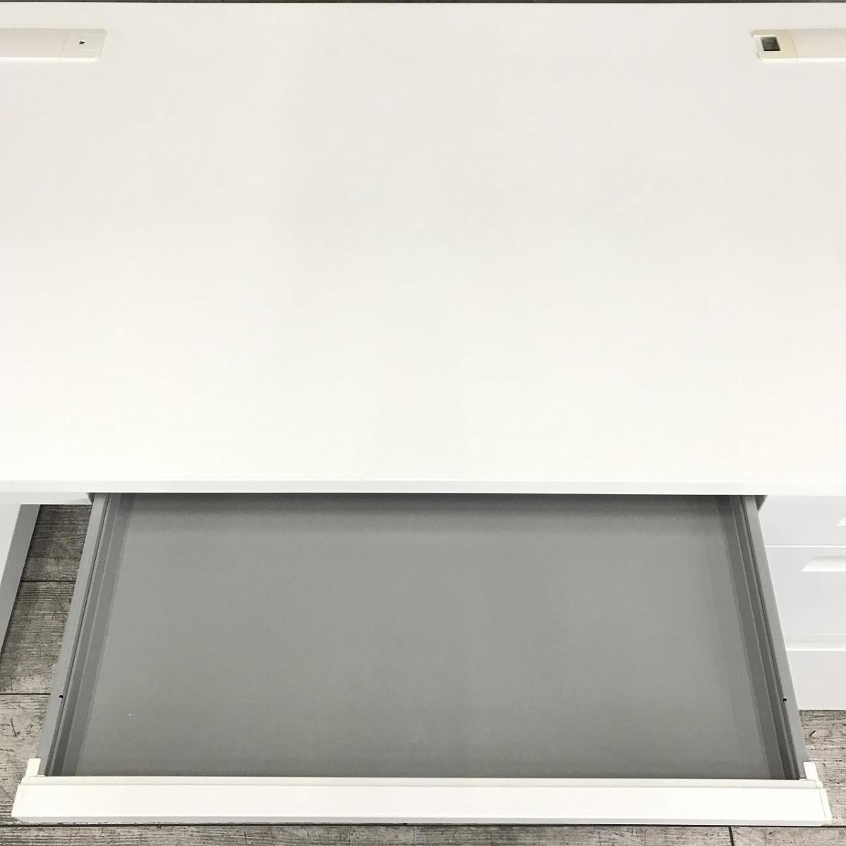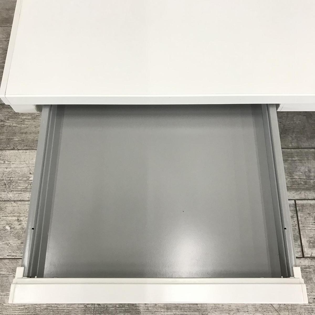 【在庫入替セール】片袖机 イナバ デュエナ W1400のおおきめサイズ 清潔感のあるホワイトカラー 鍵付き ※天板ふちにキズの補修跡あり