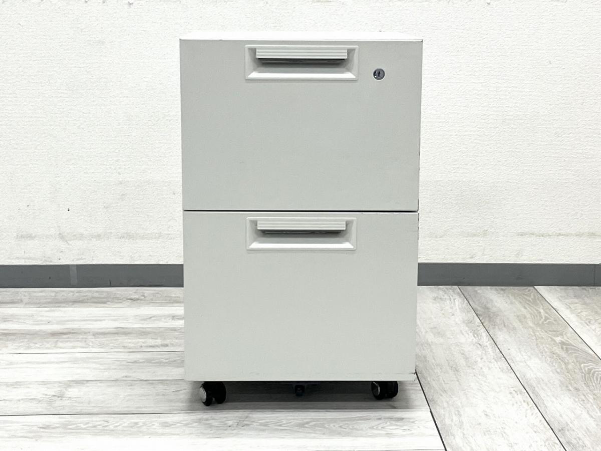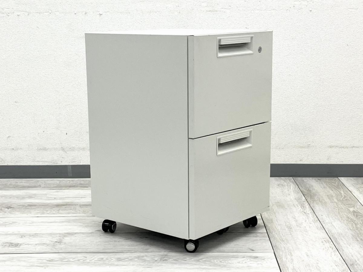 【手狭なオフィスでも使いやすい奥行スリムタイプが入荷いたしました!】■プラス(PLUS)製 リード(LEED)シリーズ 2段ワゴン フリアド用 W395×D420×H630mm ■シリンダー錠 ■ホワイト ■サイドキャビネット