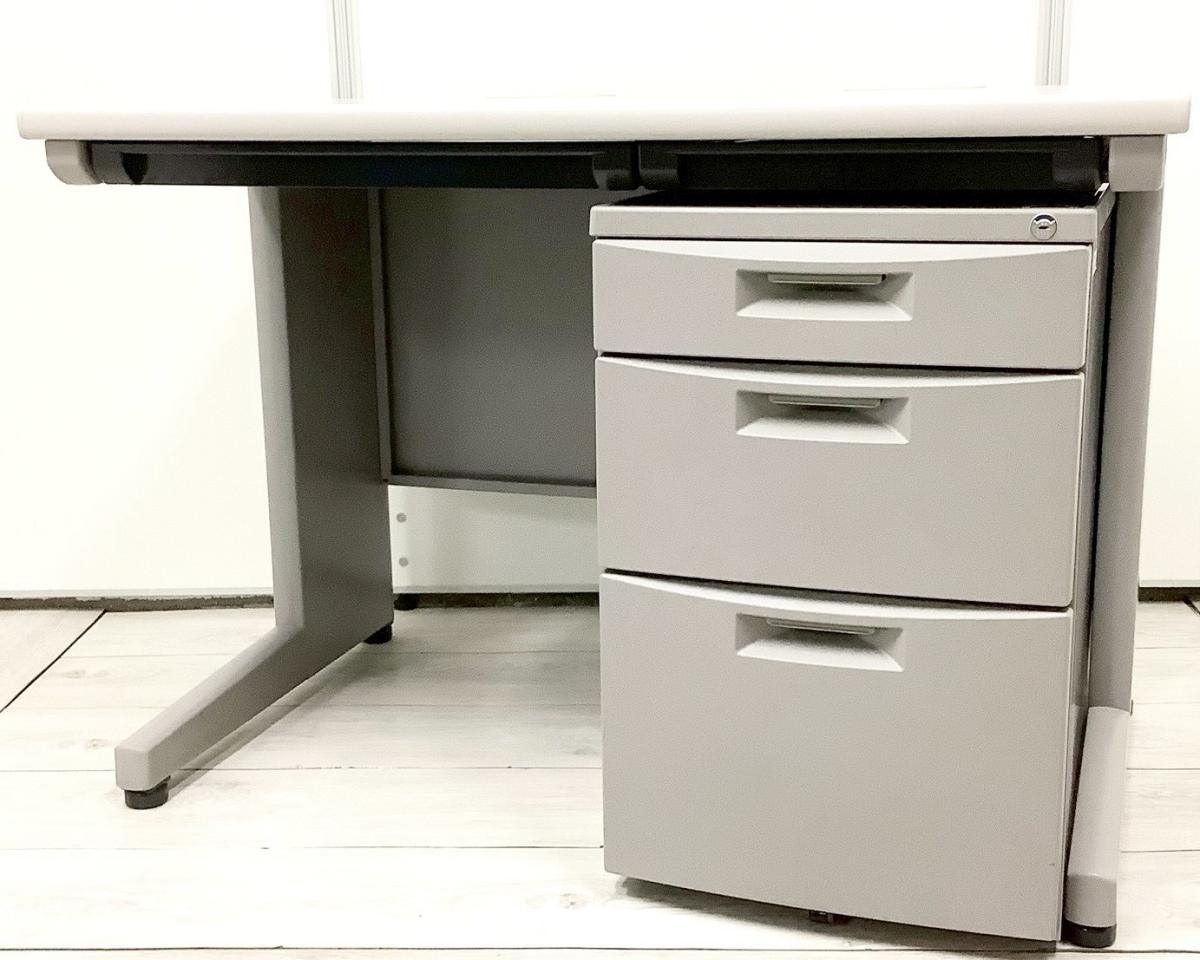 【幅1000㎜のコンパクトタイプ!使い勝手の良い3段収納の疑似片袖机!】■イトーキ(ITOKI)製 CZNシリーズ 片袖机 ■W1000㎜ ■グレー ■シリンダー錠※横浜本店撮影画像