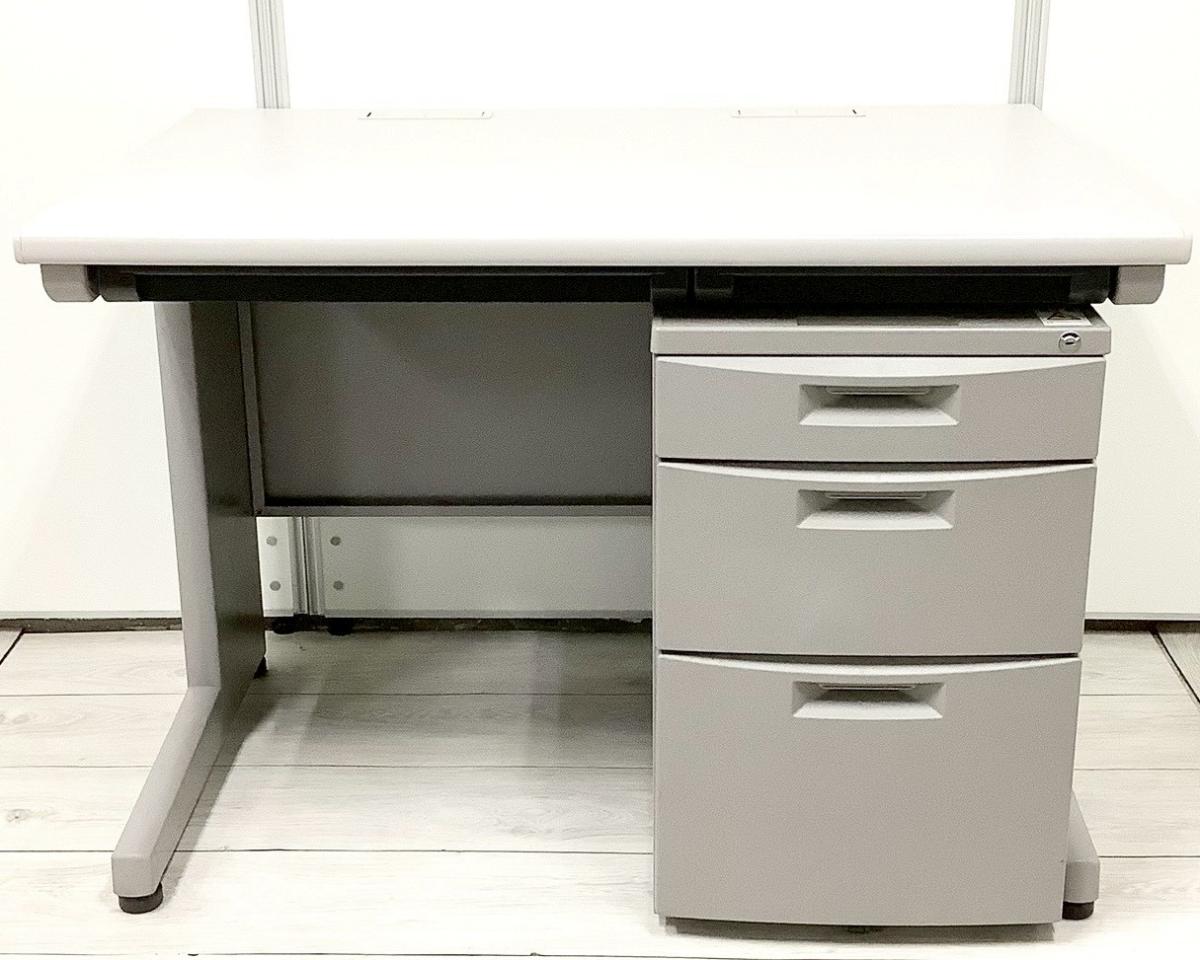 【幅1000㎜のコンパクトタイプ!使い勝手の良い3段収納の疑似片袖机!】■イトーキ(ITOKI)製 CZNシリーズ 片袖机 ■W1000㎜ ■グレー ■シリンダー錠※横浜本店撮影画像