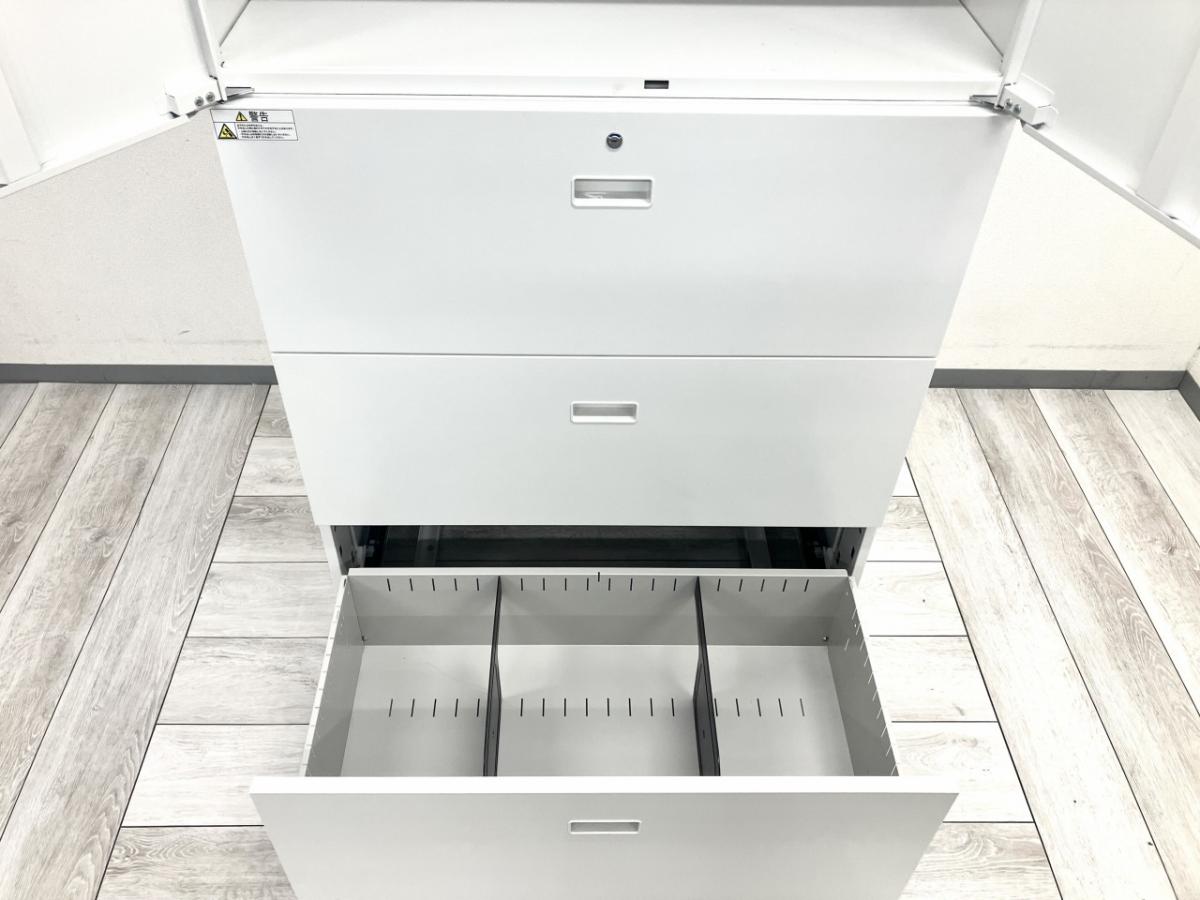 【大容量でスッキリ整理!両開き+3段ラテラルの人気書庫セット!】■イトーキ(ITOKI)製 シンライン(THUN LINE) 両開き+3段ラテラル 書庫セット ハイキャビネット ■シリンダー錠 ■ホワイト ※日焼けあり