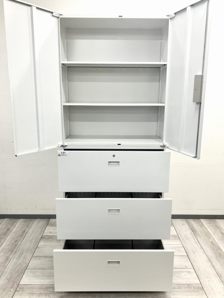 【在庫お探しいたします!/予約依頼商品】イトーキ製のハイキャビネット(両開き書庫+3段ラテラル書庫)【シンラインシリーズ/ホワイト色】 *良品を格安で!「オフィスバスターズ福岡南店」は、福岡を拠点として、全国へ中古オフィス用品・オフィス家具を提供しております
