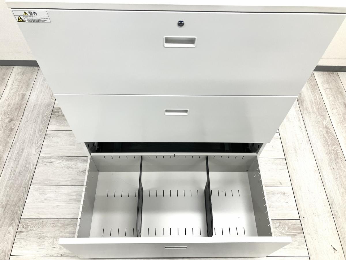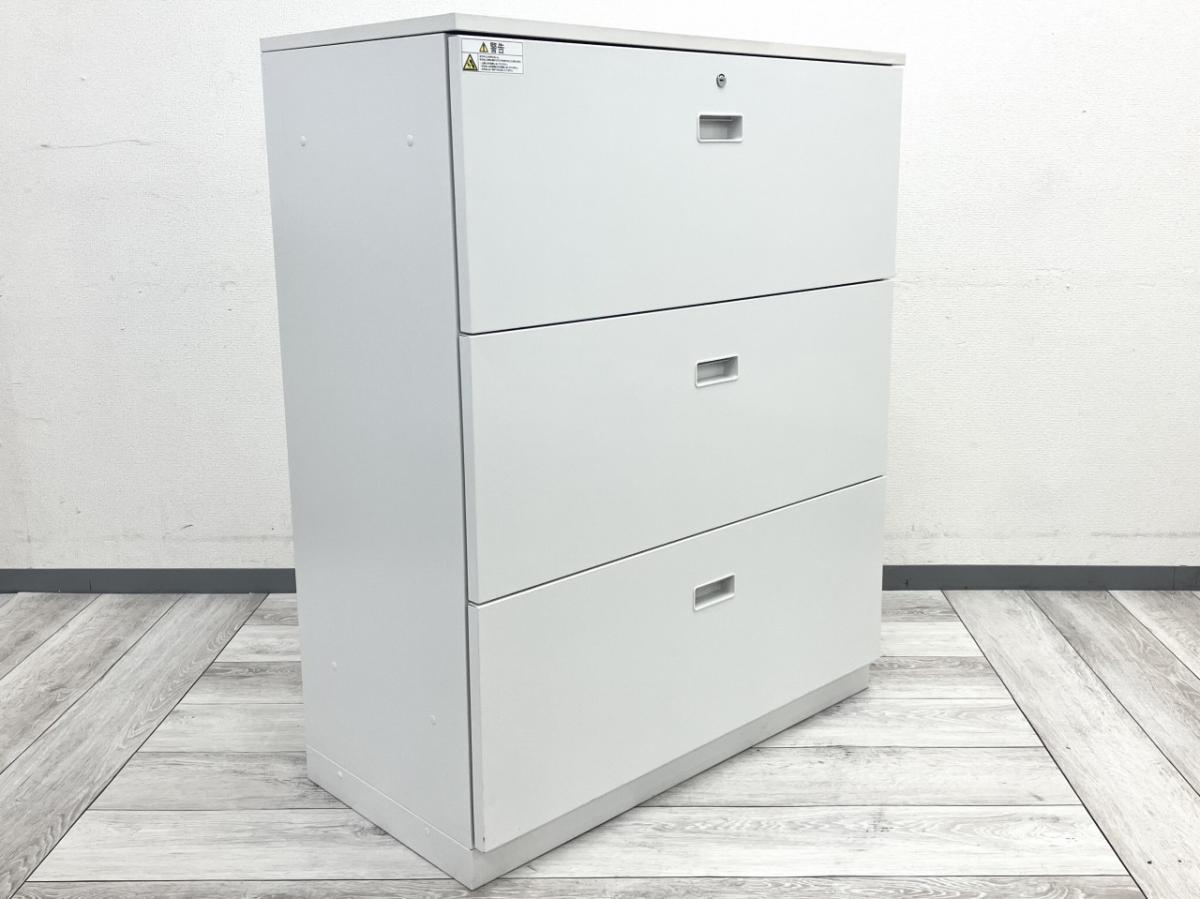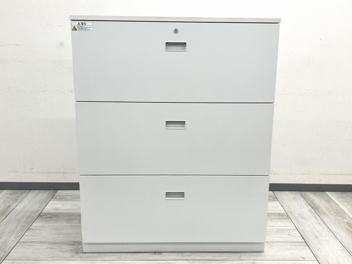 イトーキ製シンラインシリーズの3段ラテラルキャビネットです。