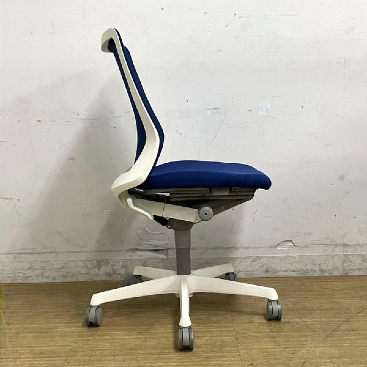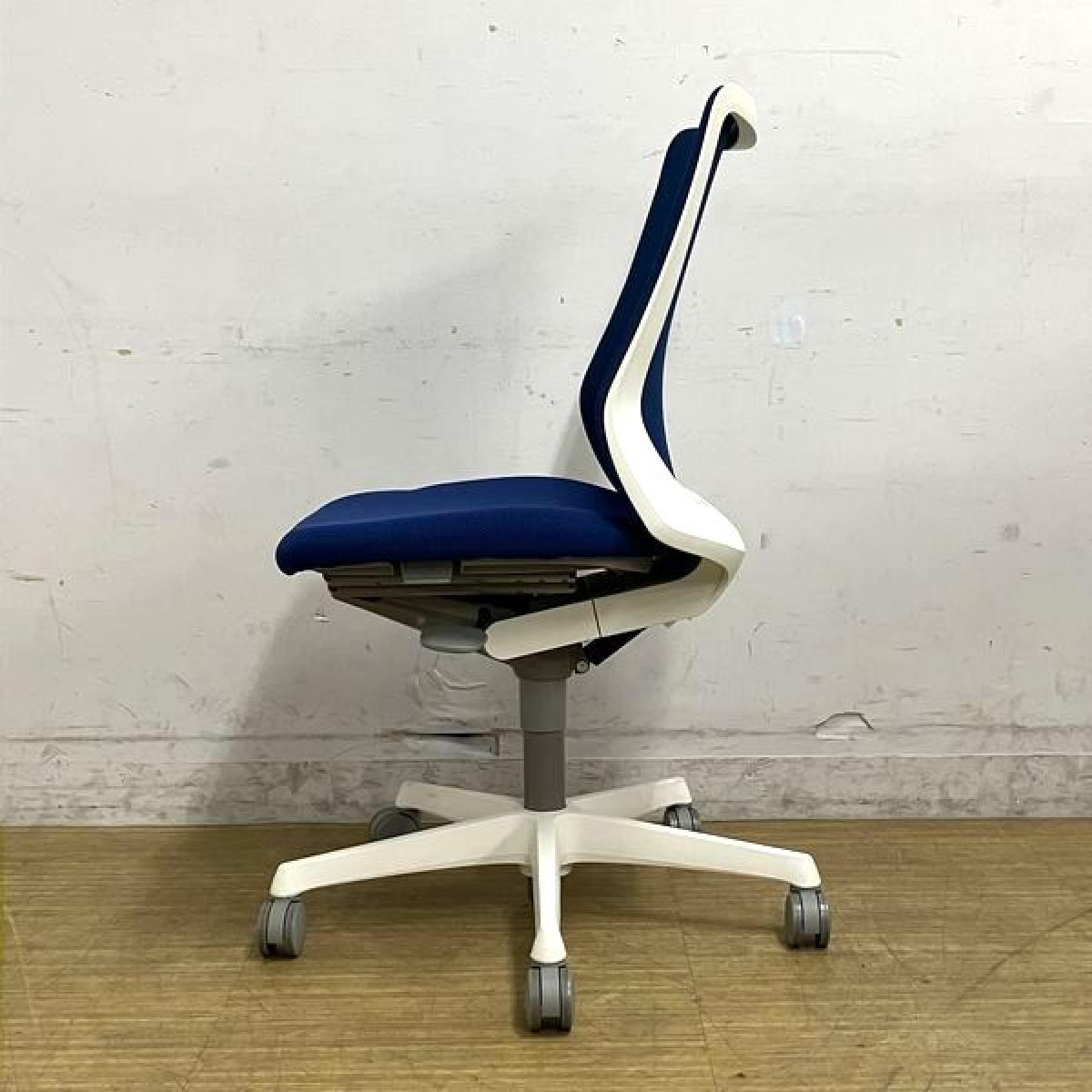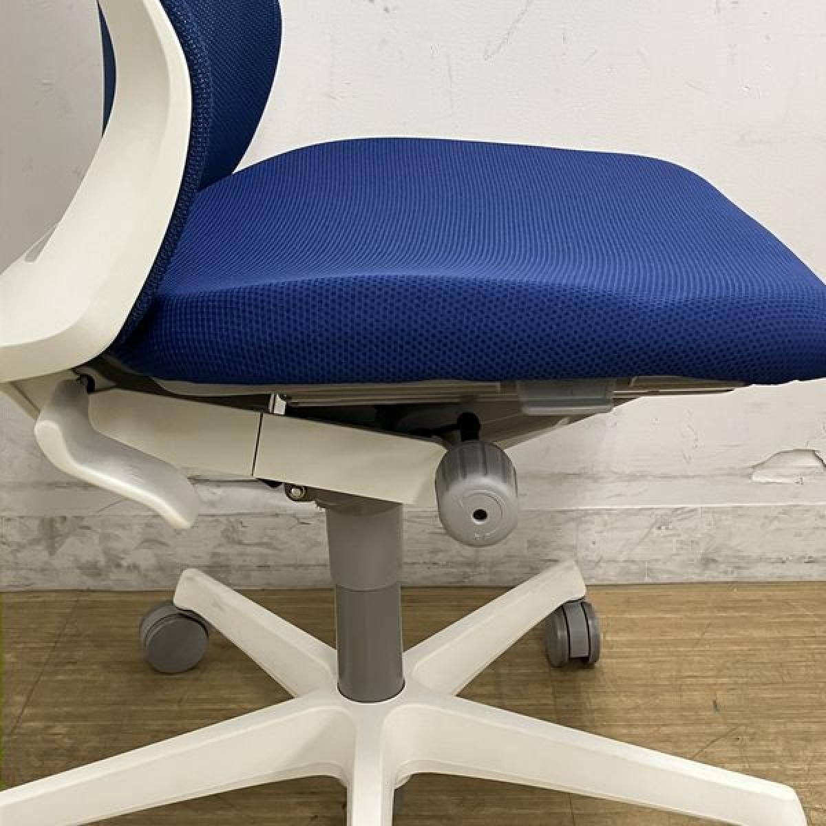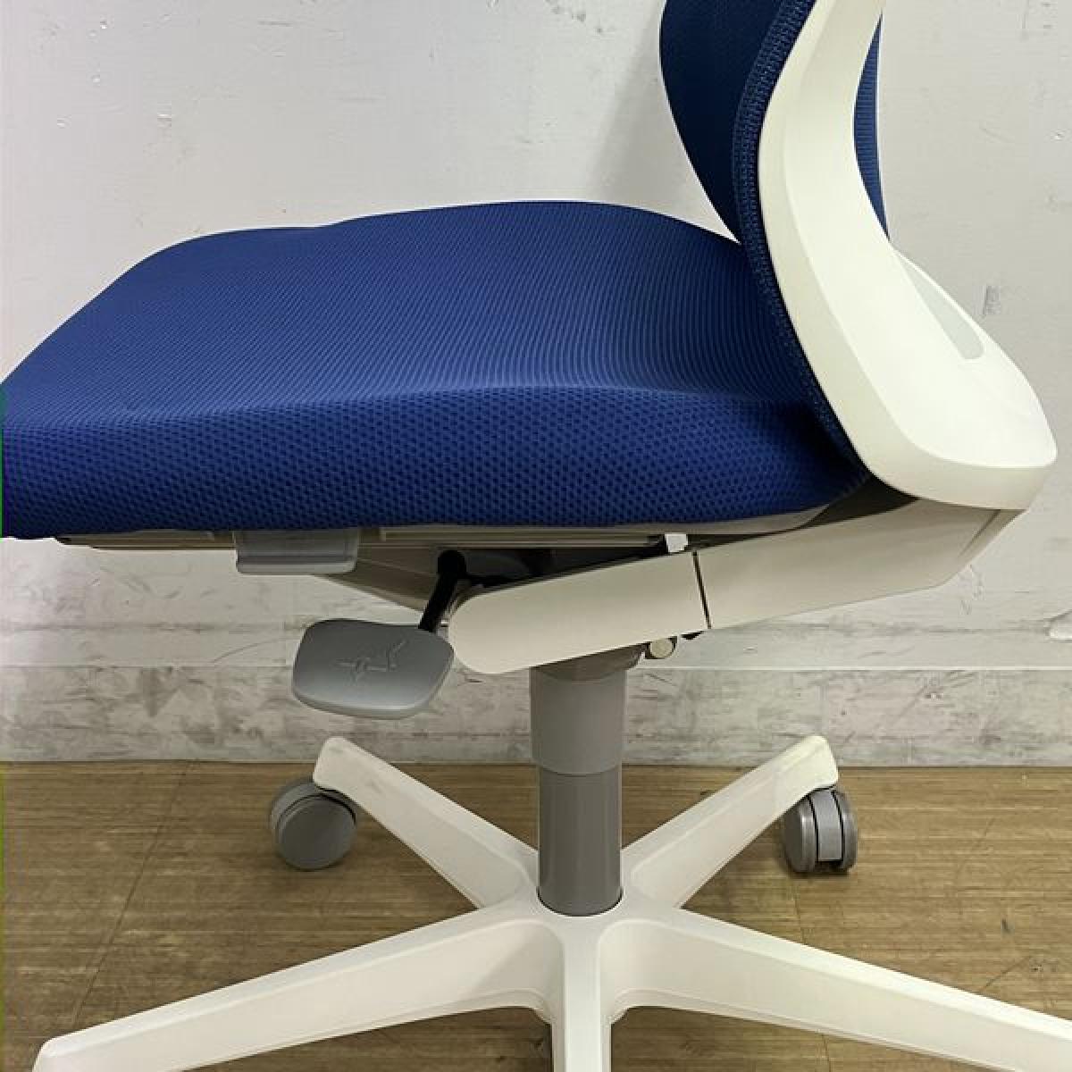 【2023年製の状態良好品!】【腰まわりをしっかりホールド!長時間作業も快適フィット!】■オカムラ(okamura)製 フルーエントチェア(Fluent) ローバック 背面メッシュ ■ミディアムブルー ×ホワイトシェル