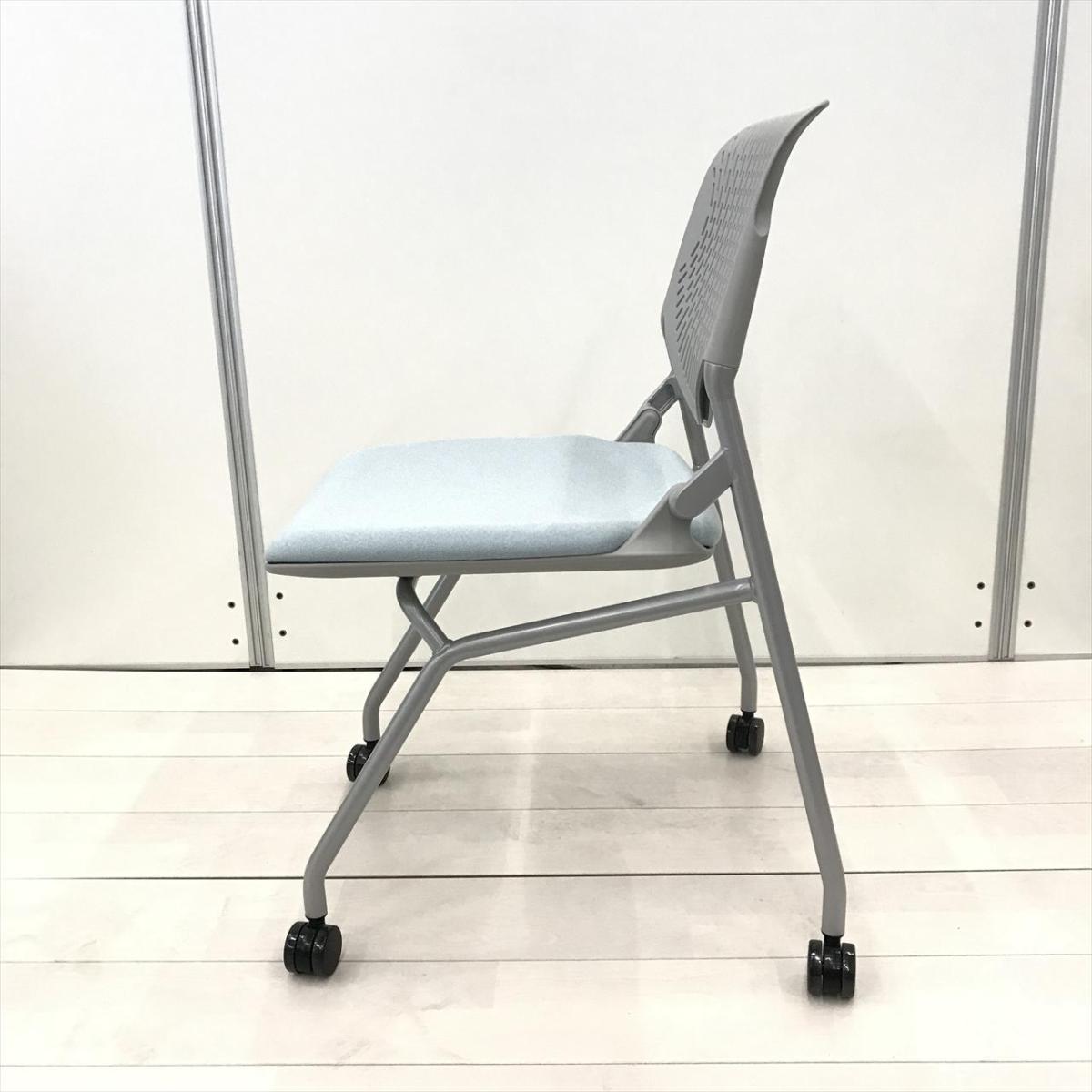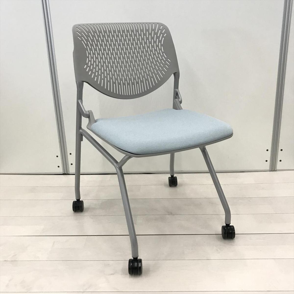 新古品!【大量入荷商品】【シンプルなデザインで使いやすい!重ねて収納可能なネスティングチェア!会議室、共有スペースなどに!】■オカムラ製 ルナシリーズ スタッキングチェア ■ライトブルー【OKT72】【関東倉庫在庫品】【弊社使用欄:A01053089】- 全店共通商品