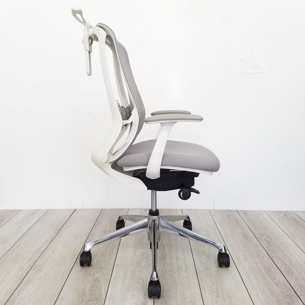 【前傾機能チェアの代名詞!背のカーブを変えられる新感覚のオフィスシーティング!】■オカムラ(okamura)製 シルフィー(Sylphy)チェア 肘付き ハイバック 背面メッシュ ■昇降レバー丸形 ■固定肘・ハンガー付 ■ライトグレー×ホワイトシェル【AD】