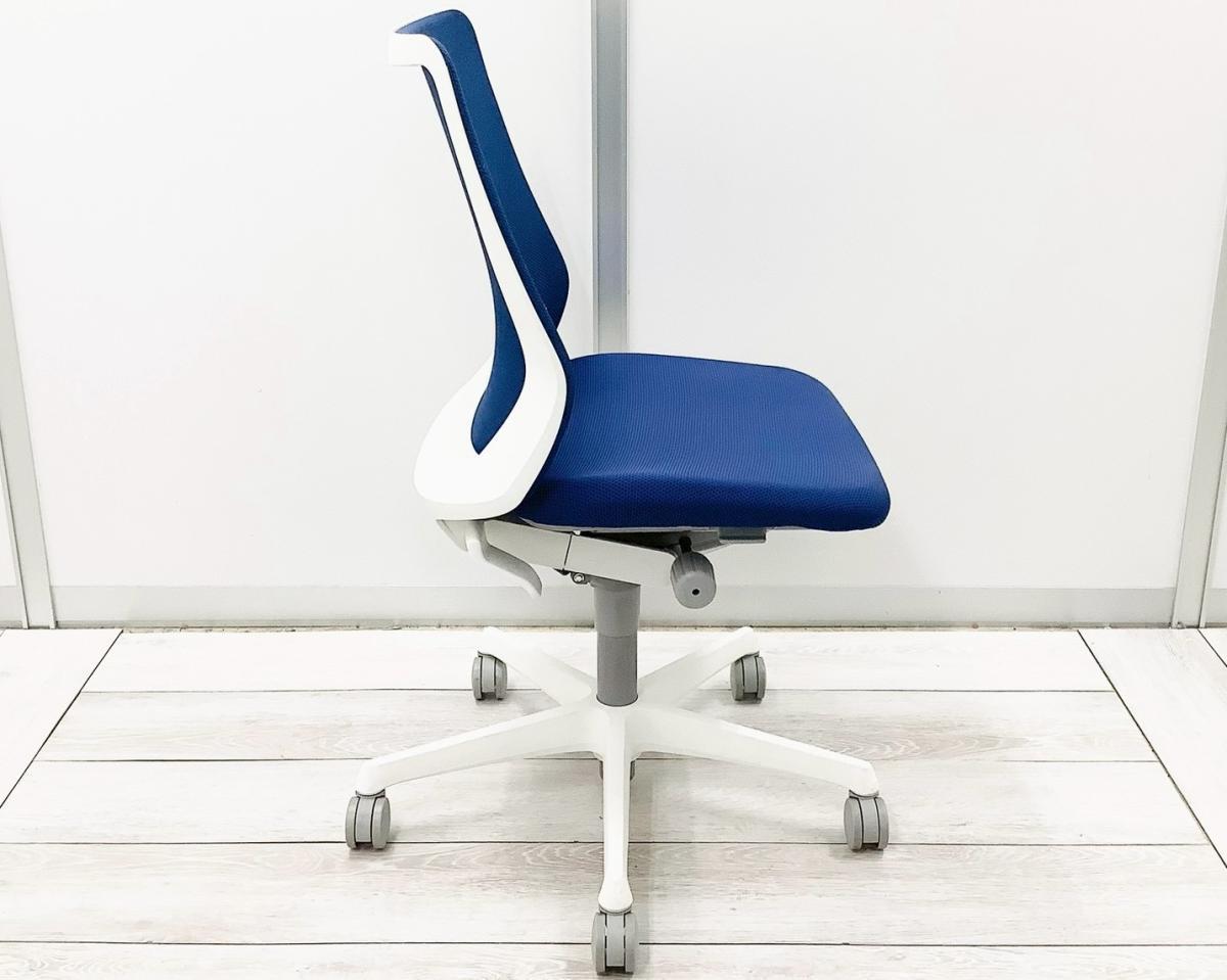 【2023年製の状態良好品!】【腰まわりをしっかりホールド!長時間作業も快適フィット!】■オカムラ(okamura)製 フルーエントチェア(Fluent) ローバック 背面メッシュ ■ミディアムブルー ×ホワイトシェル