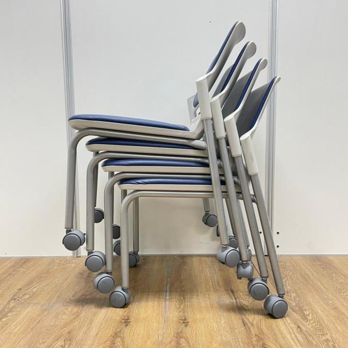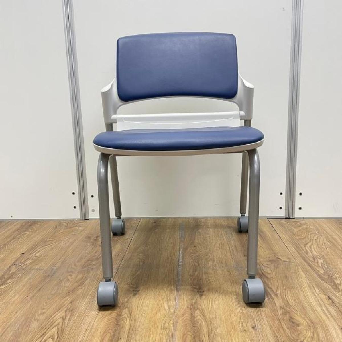 【残り2脚の為、お安く!】【キャスター付きで使いやすい!ミーティングに最適!】■ウチダ(UCHIDA)製 MF-180シリーズ スタッキングチェア ミーティングチェア ■キャスター付き ■レイズンブルー×ホワイトシェル