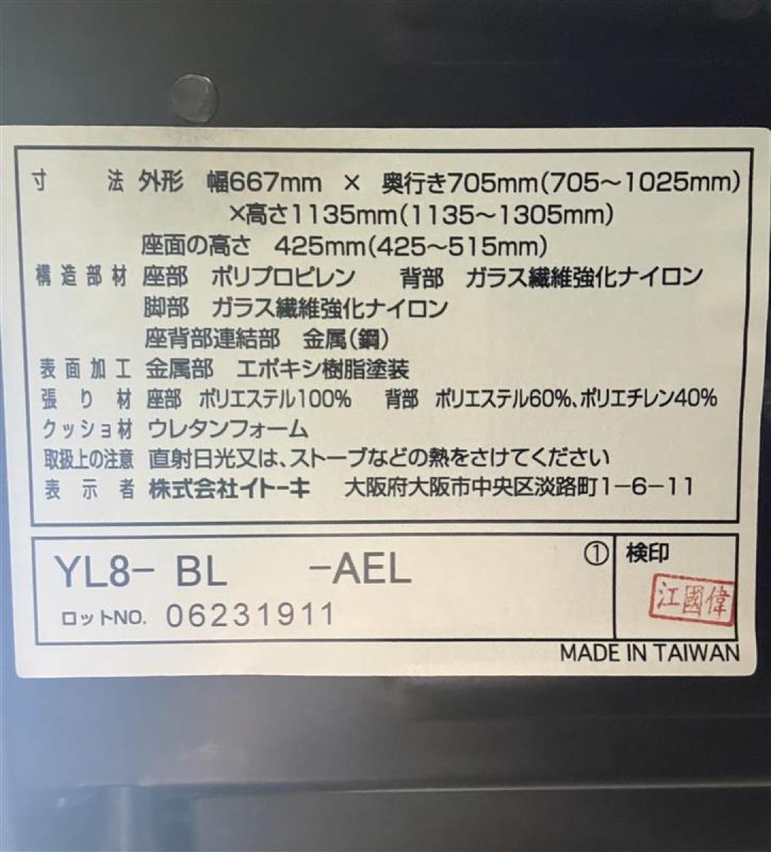 【中古】 サリダ(salida)チェア YL8- BL -AEL イトーキ/ITOKI 肘付ハイバックチェア 565001