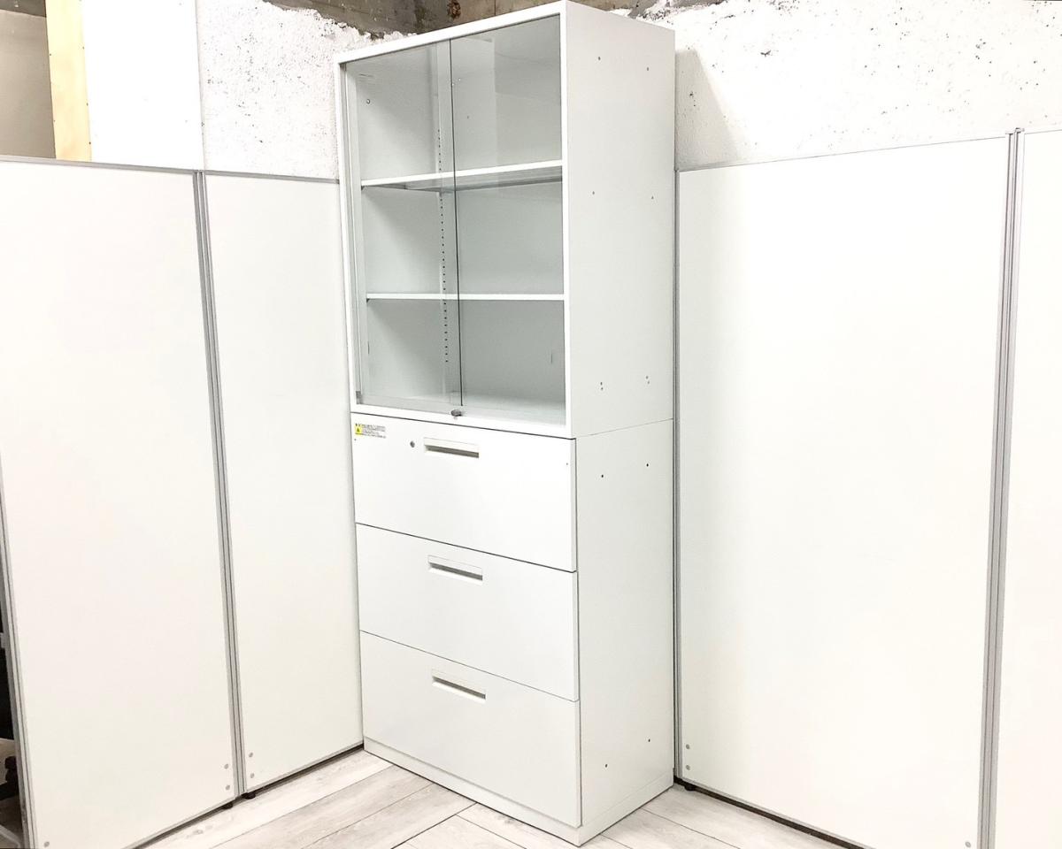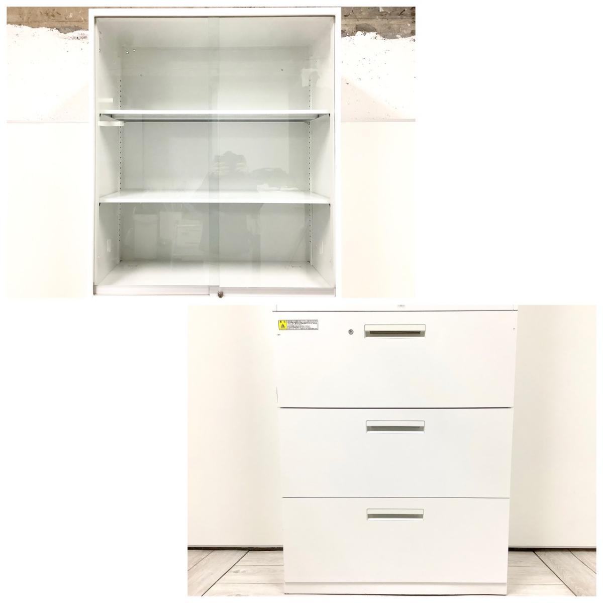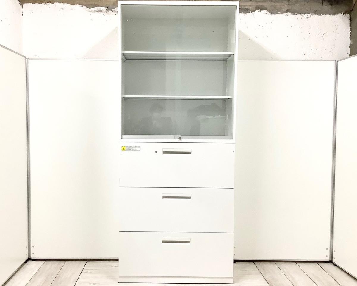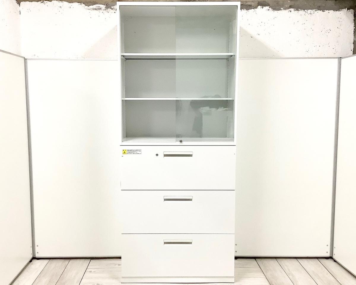 定番シリーズ!収納量抜群!観音開き+引き出しタイプのキャビネットセット! ■内田洋行/HS/ホワイト ラテラル取っ手部分日焼け有