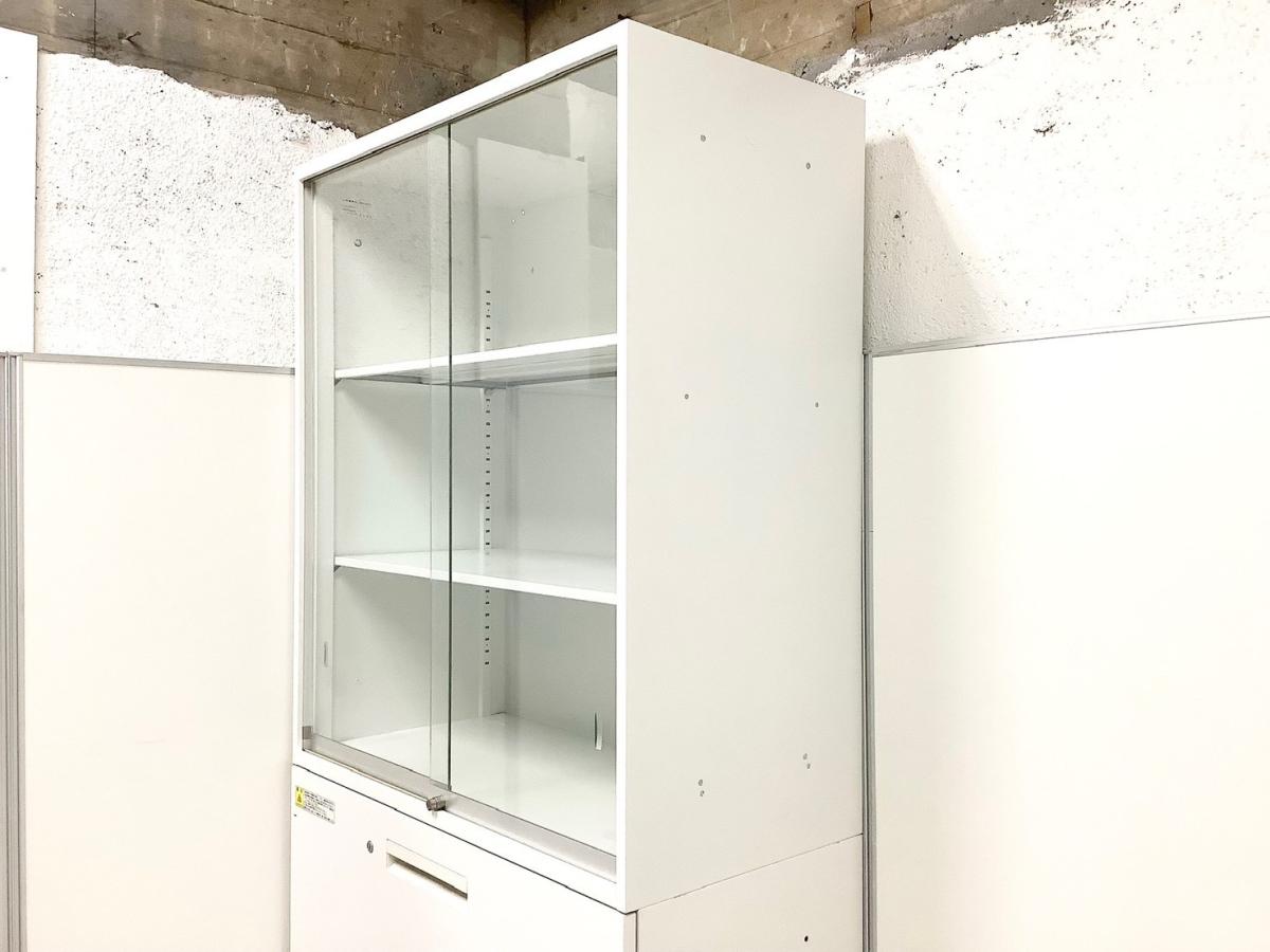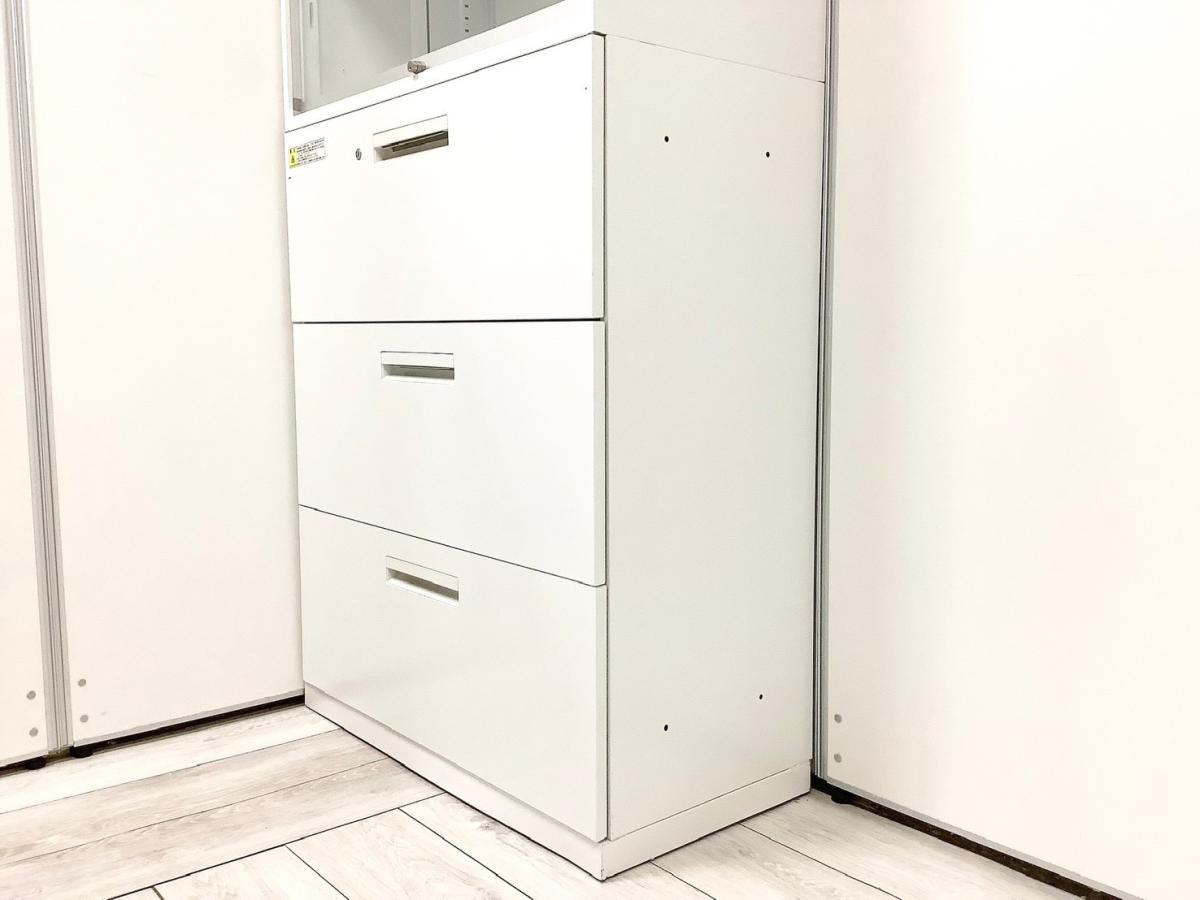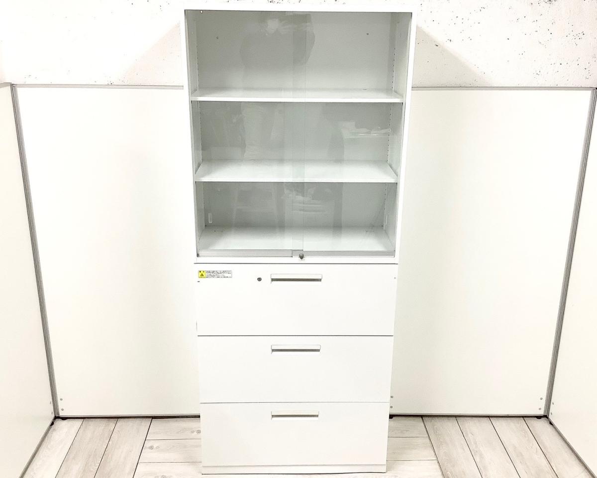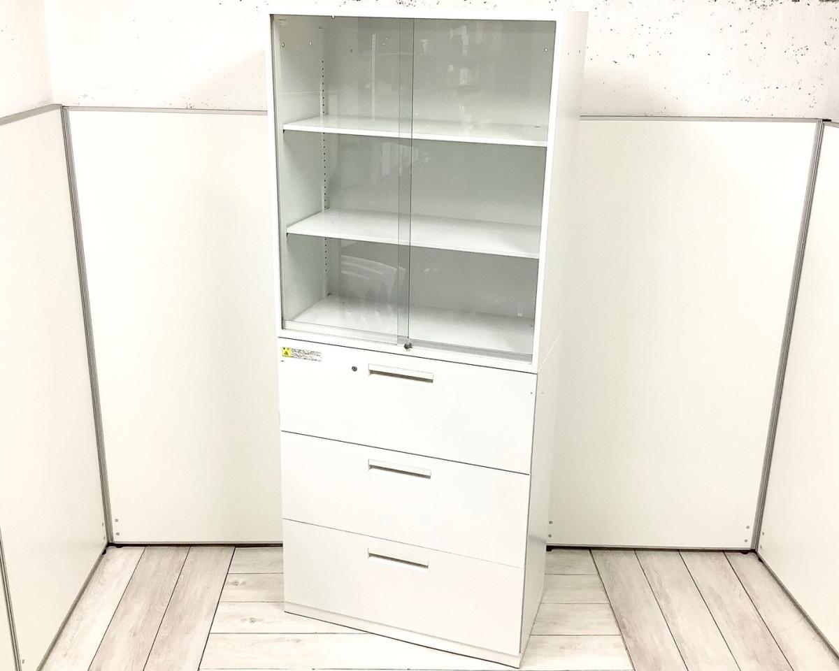 定番シリーズ!収納量抜群!観音開き+引き出しタイプのキャビネットセット! ■内田洋行/HS/ホワイト ラテラル取っ手部分日焼け有