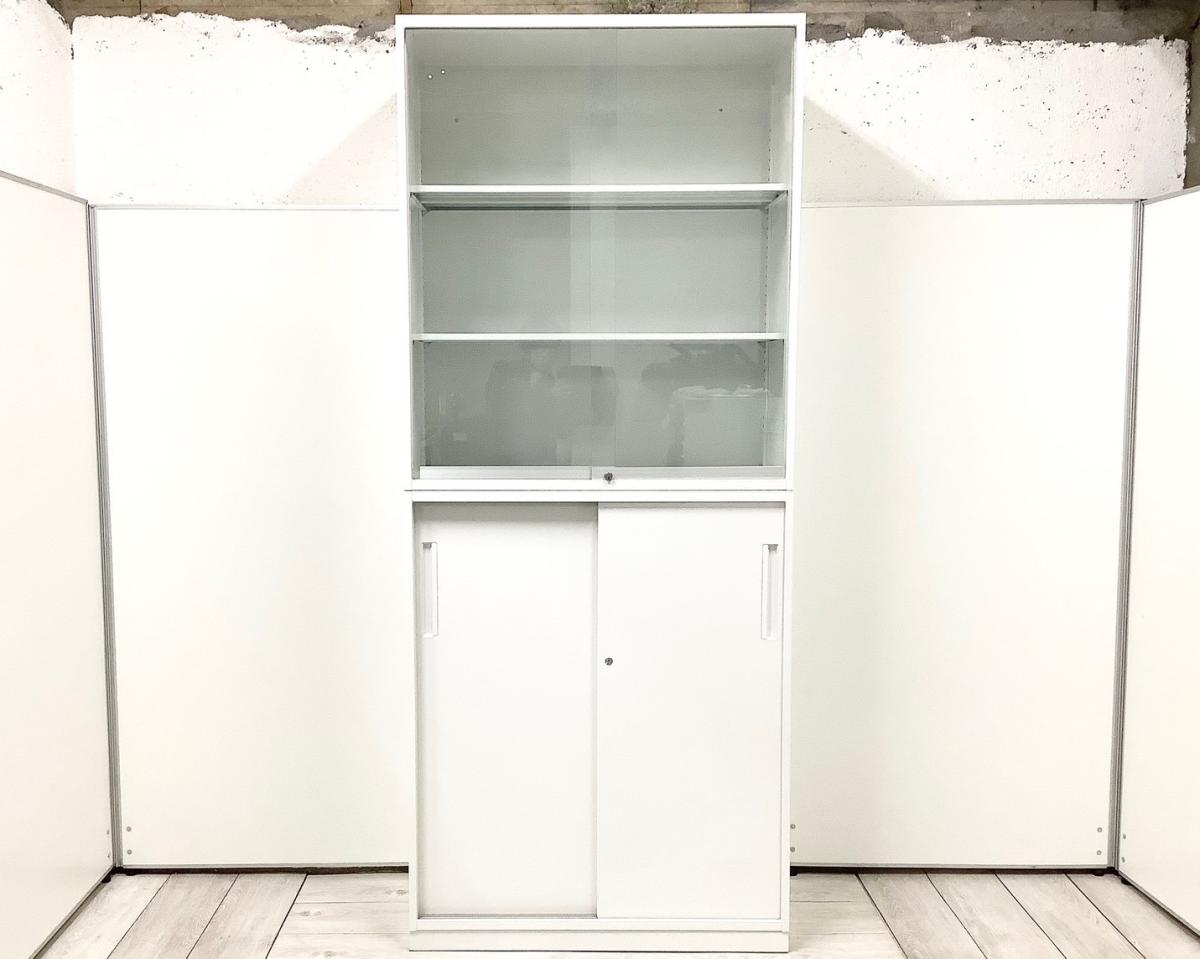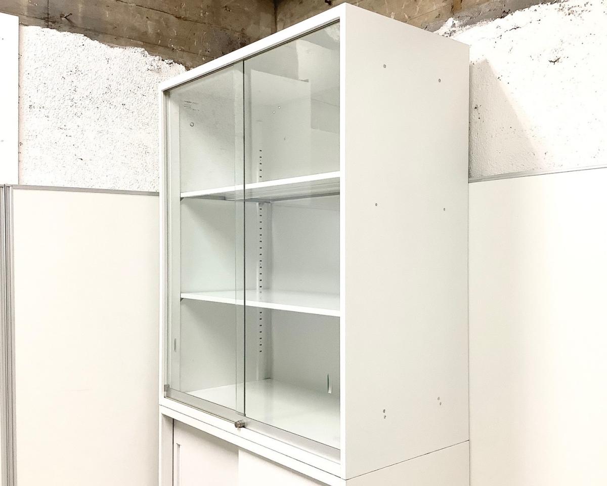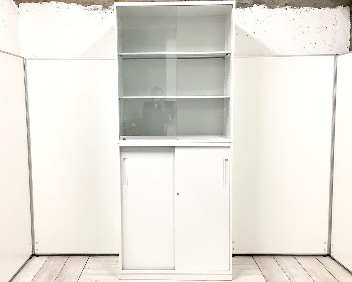 定番シリーズ!収納量抜群!観音開き+引き出しタイプのキャビネットセット! ■内田洋行/HS/ホワイト ラテラル取っ手部分日焼け有