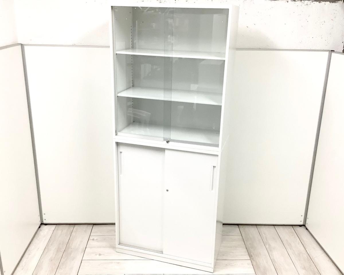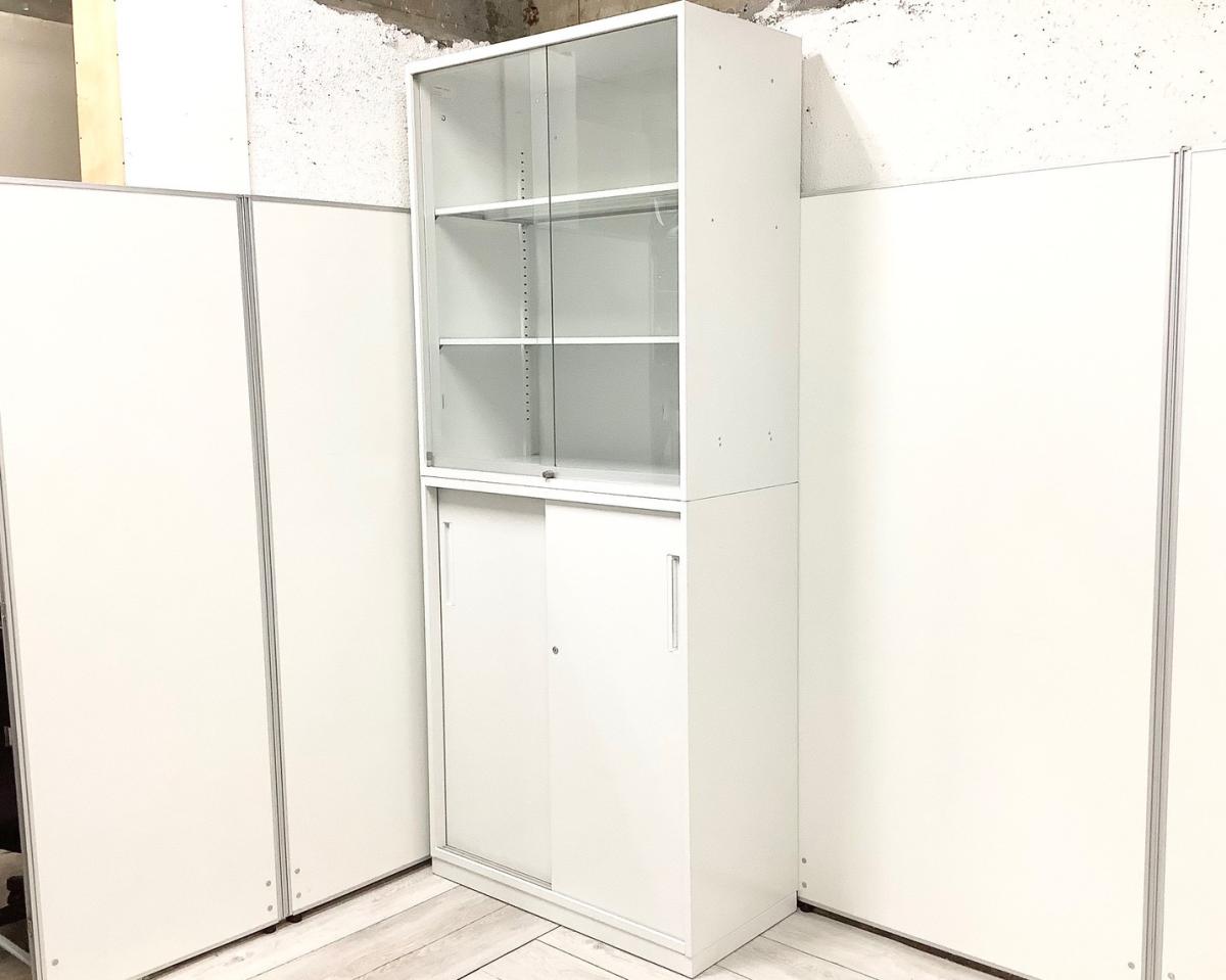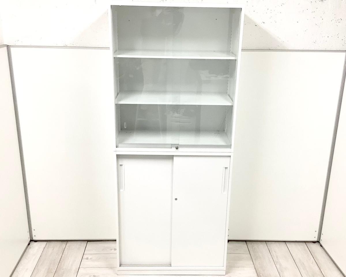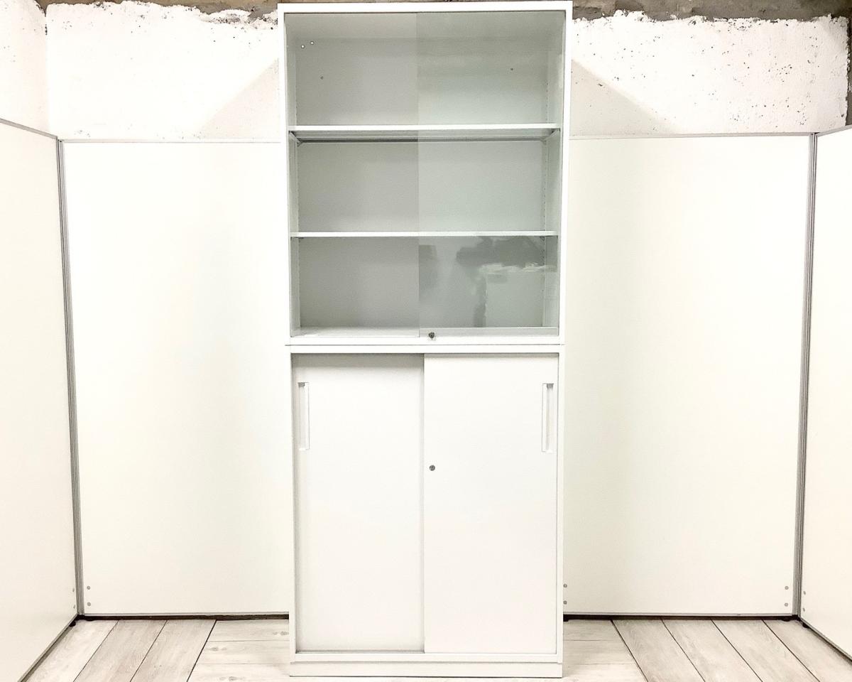 定番シリーズ!収納量抜群!観音開き+引き出しタイプのキャビネットセット! ■内田洋行/HS/ホワイト ラテラル取っ手部分日焼け有