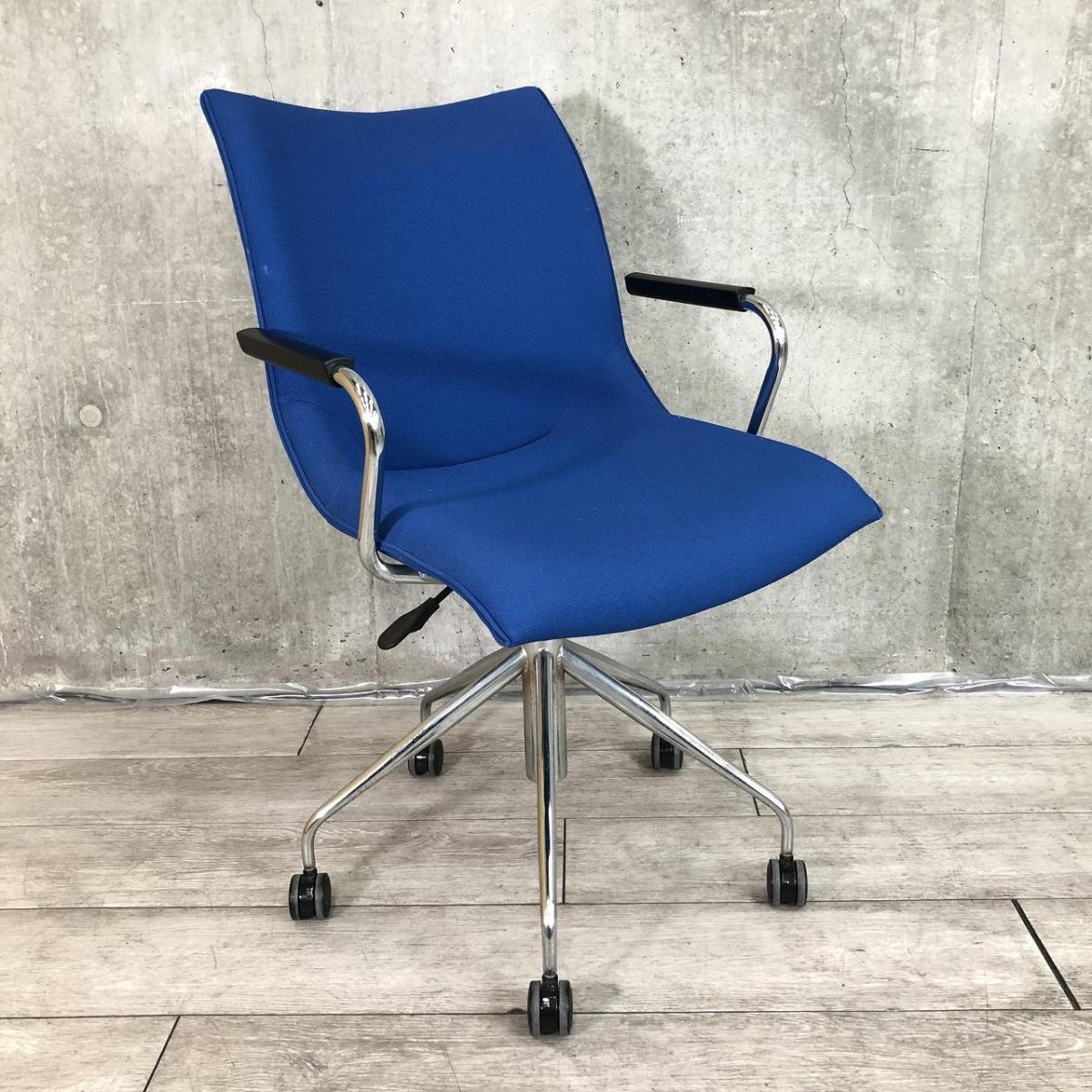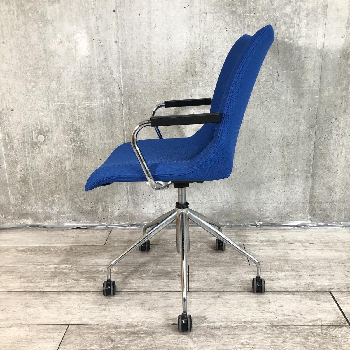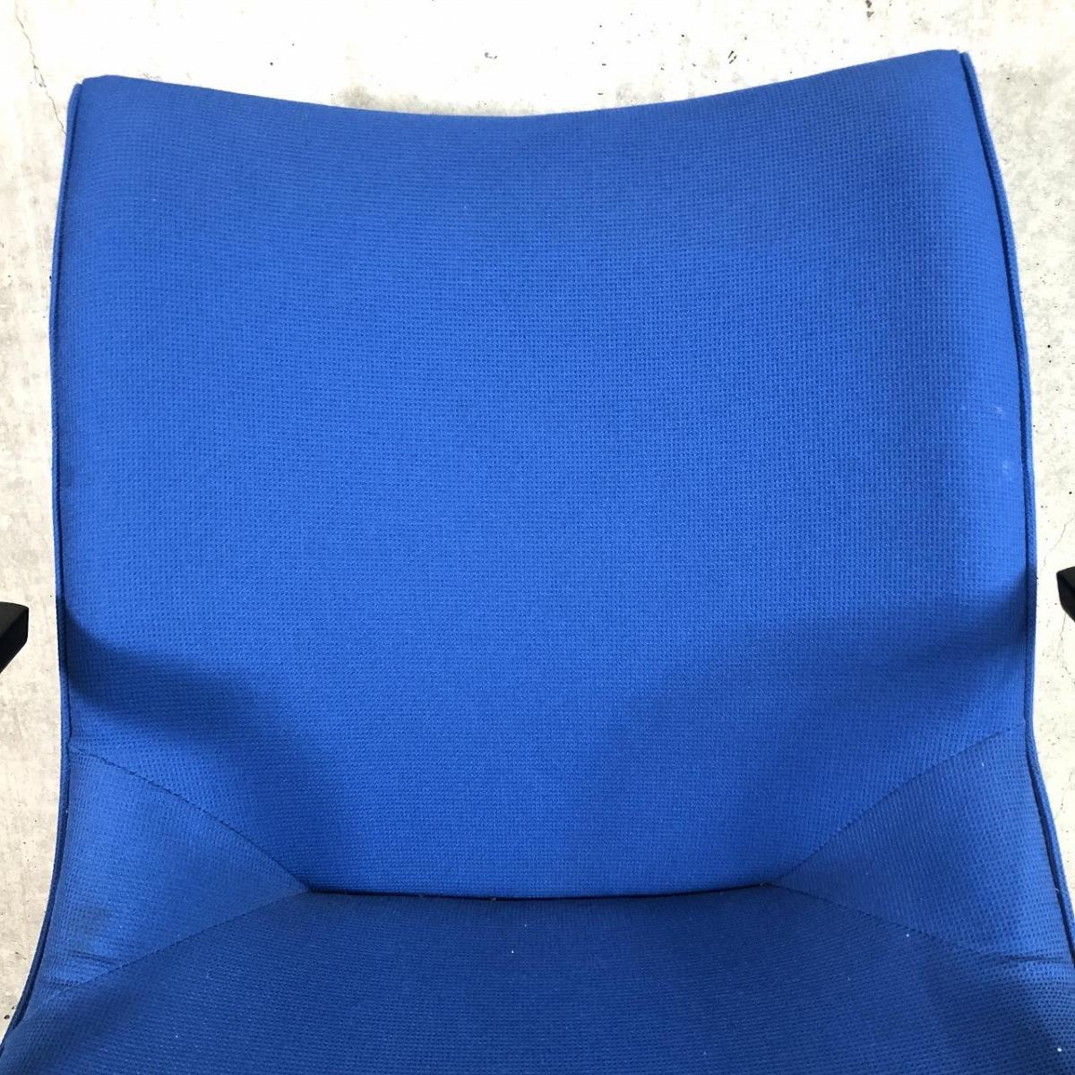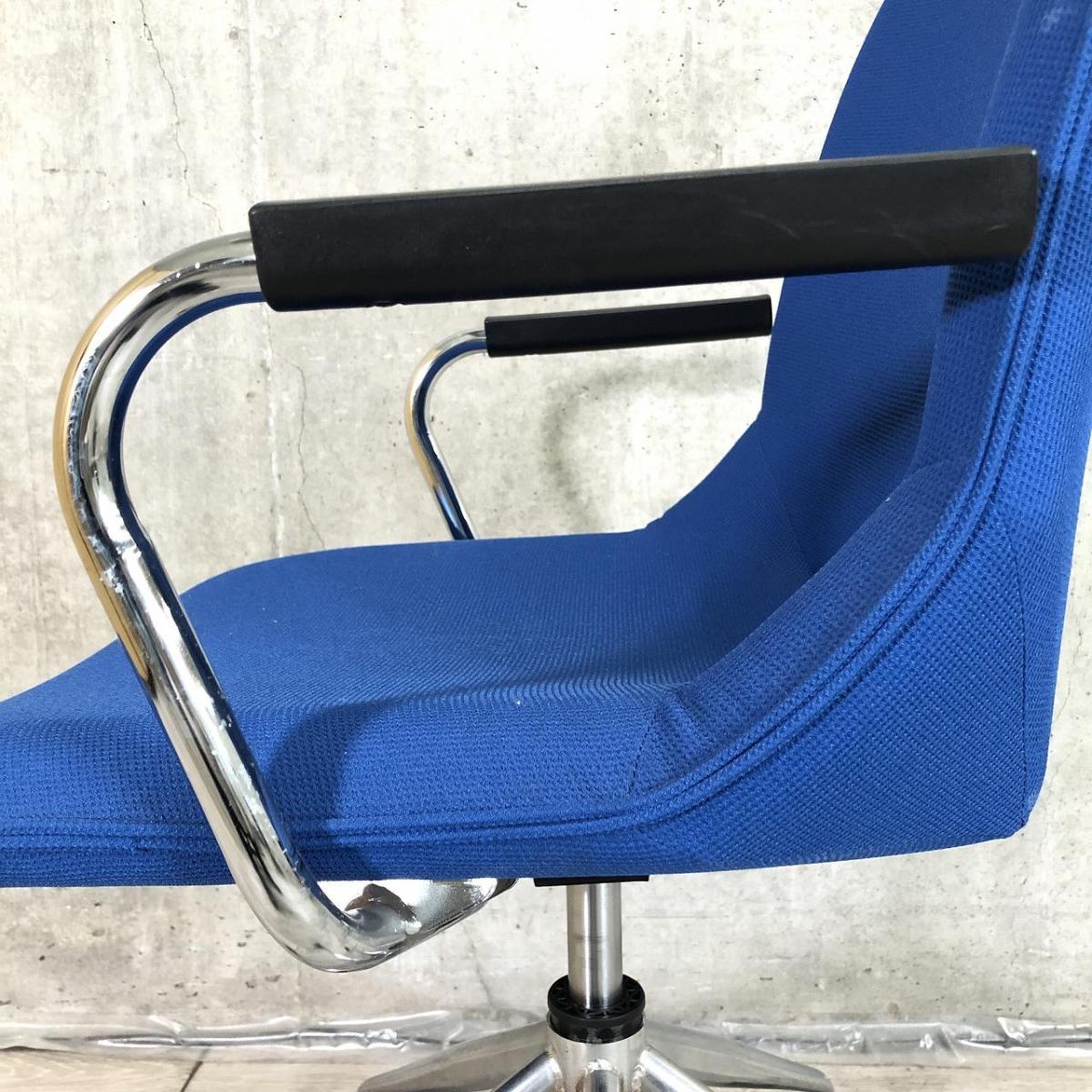 【長時間の作業でもワーカーを優しく包み込むクッション構造!】■オカムラ製 ミーティングチェア 肘付 ブルー ■ラウンジエリアにもフィット!【モダンデザイン】【ABW】- 川崎店
