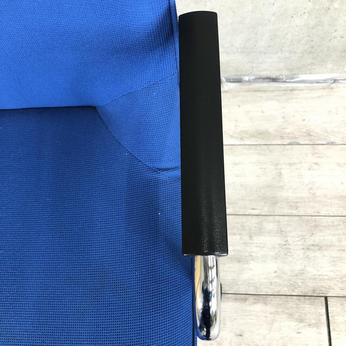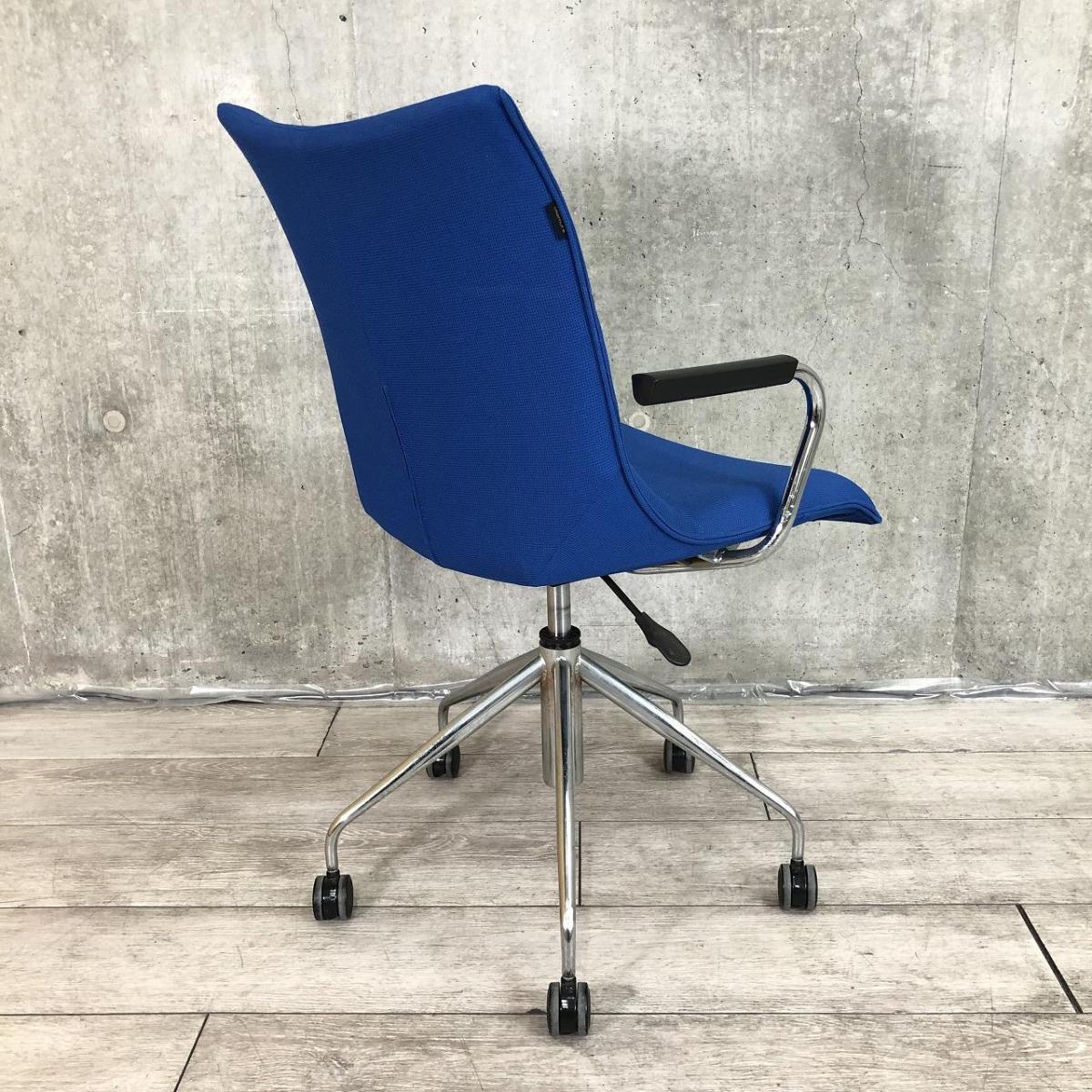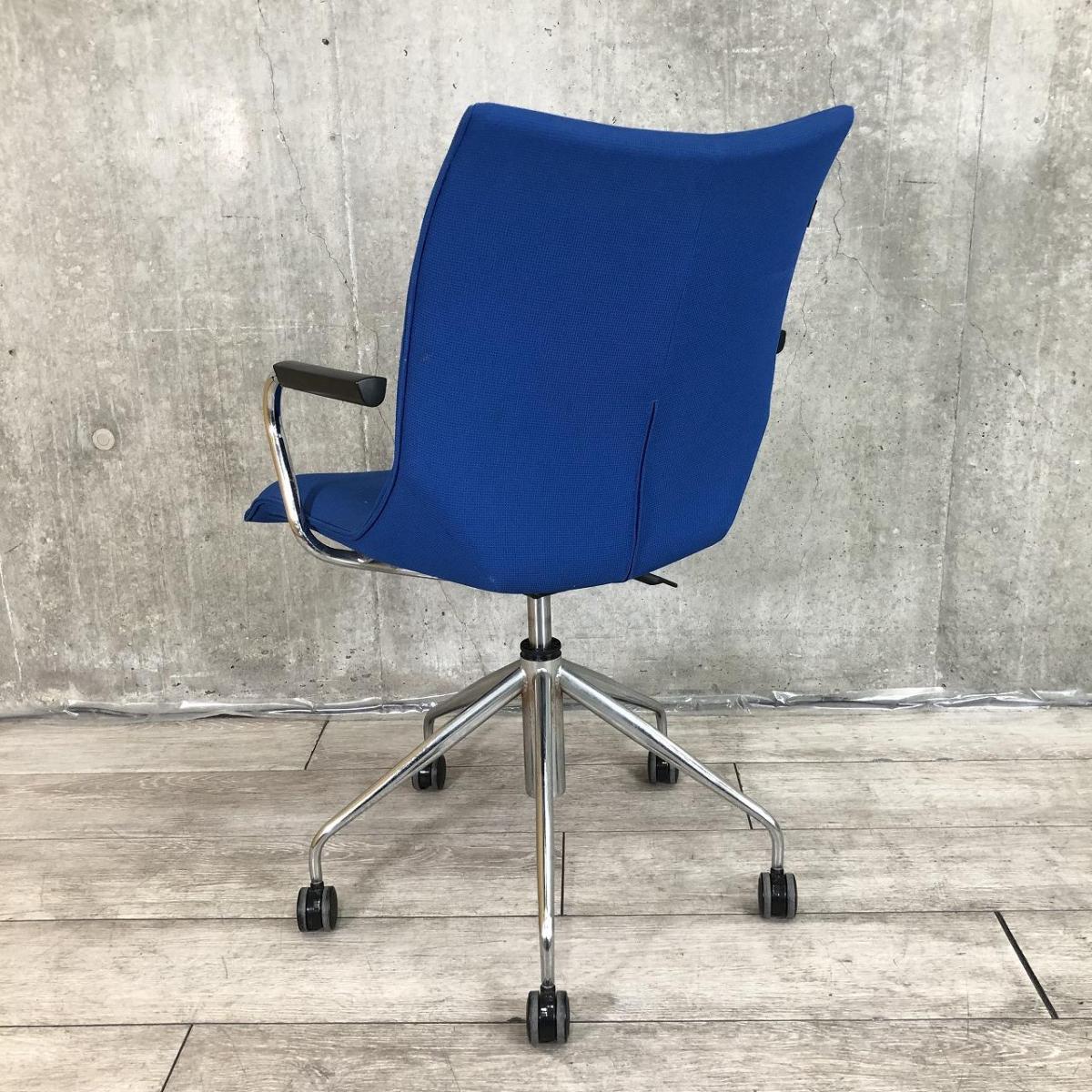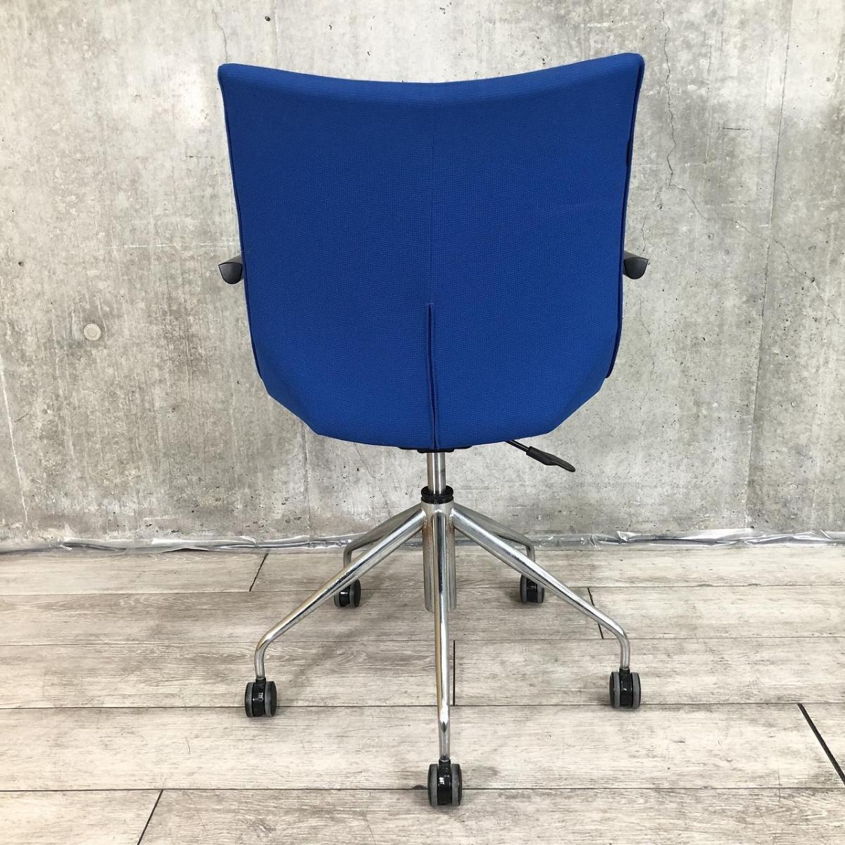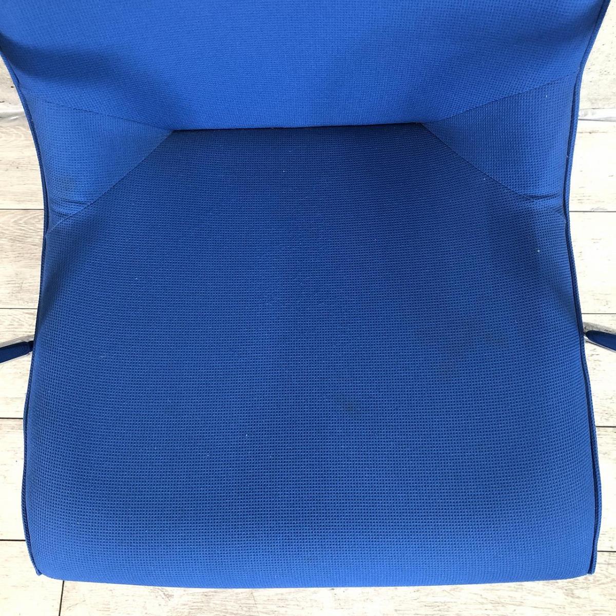 【長時間の作業でもワーカーを優しく包み込むクッション構造!】■オカムラ製 ミーティングチェア 肘付 ブルー ■ラウンジエリアにもフィット!【モダンデザイン】【ABW】- 川崎店