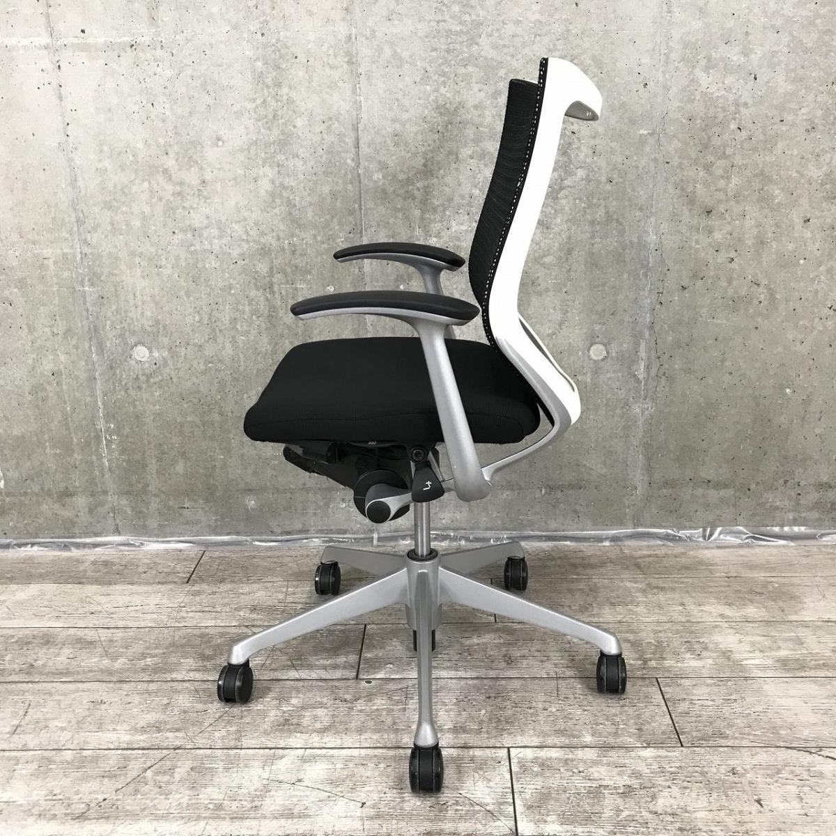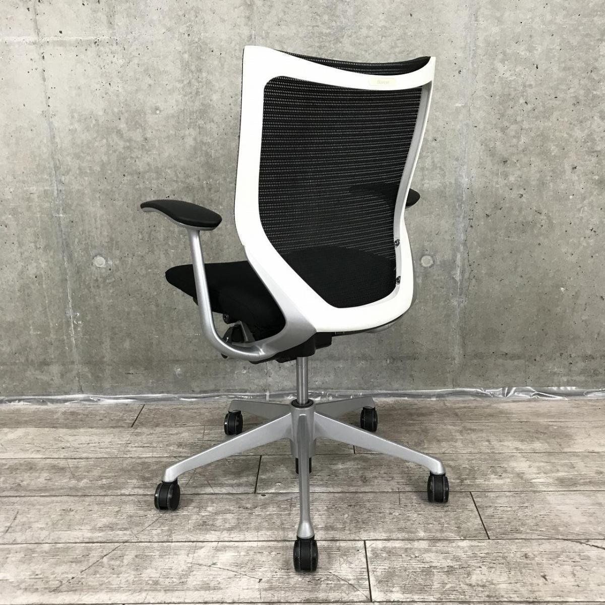 【国産メッシュチェアの代表格!オフィスの執務室、会議室におすすめ!】■オカムラ(okamura)製 バロン(Baron)チェア 肘付 ローバック 背面メッシュ ■固定肘 ■ブラック×ホワイトシェル- 茨城南店