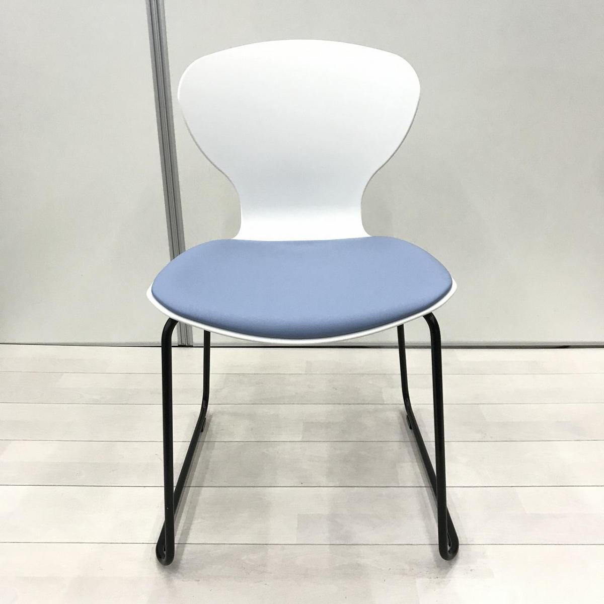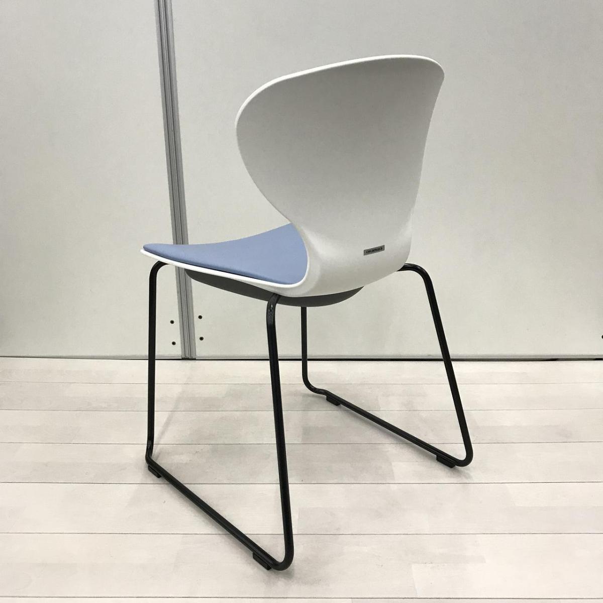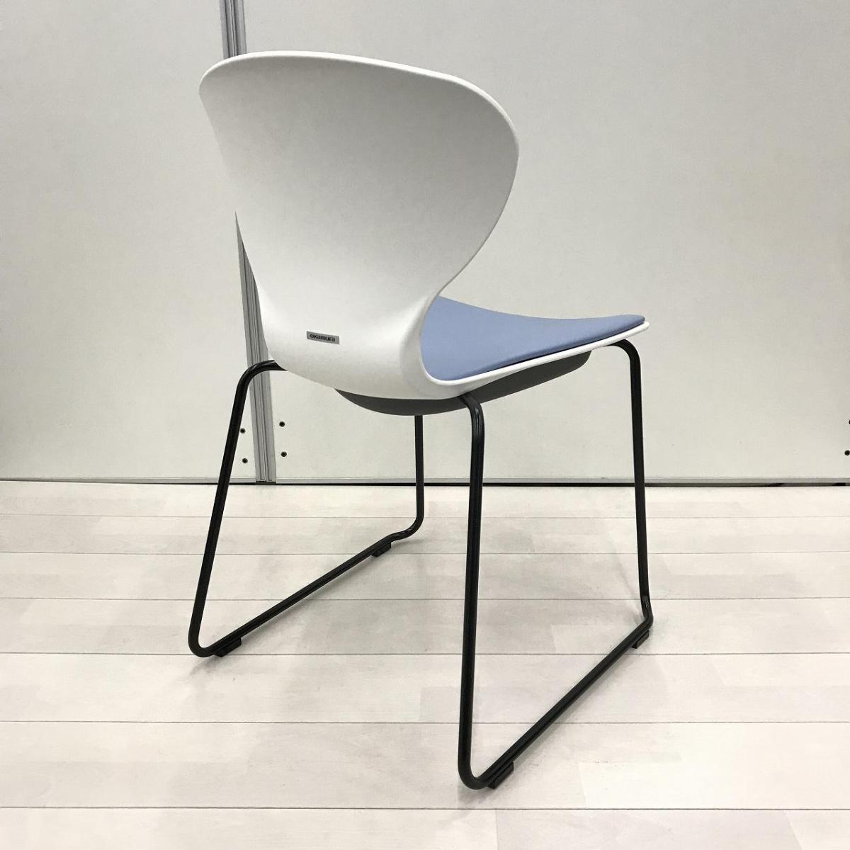 新古品!【大量入荷商品】【デザイン性のあるスタッキングチェア!打合せや会議室、休憩スペースなど使いどころ様々!】■オカムラ製 9370シリーズ スタッキングチェア ミーティング カフェチェア ■ホワイトシェルタイプ ■ビニール布座面 ライトブルー 【OKT85】【関東倉庫在庫品】【弊社使用欄:】- 全店共通商品