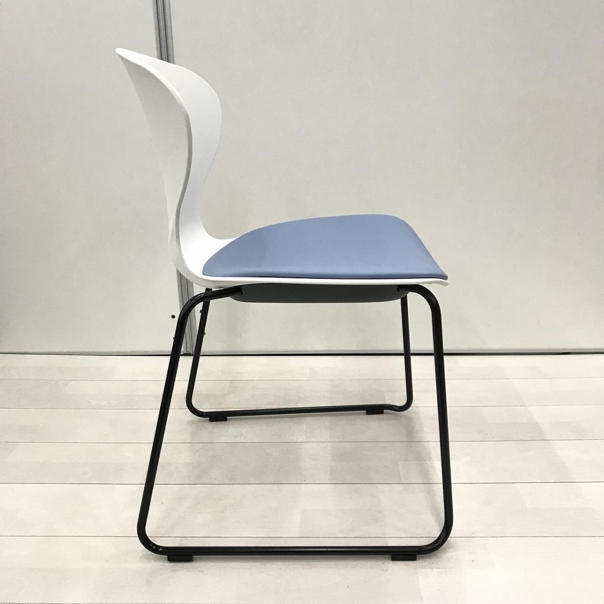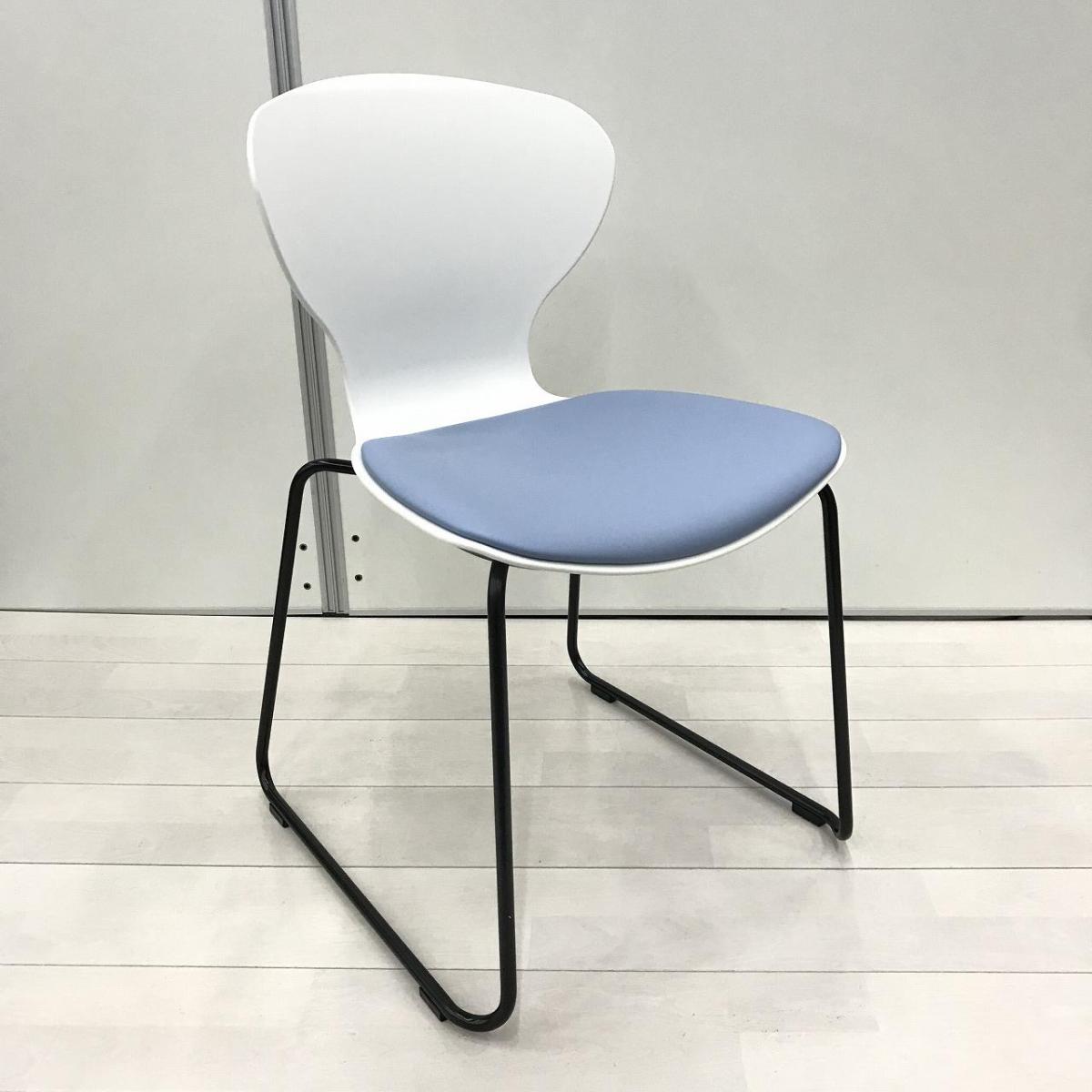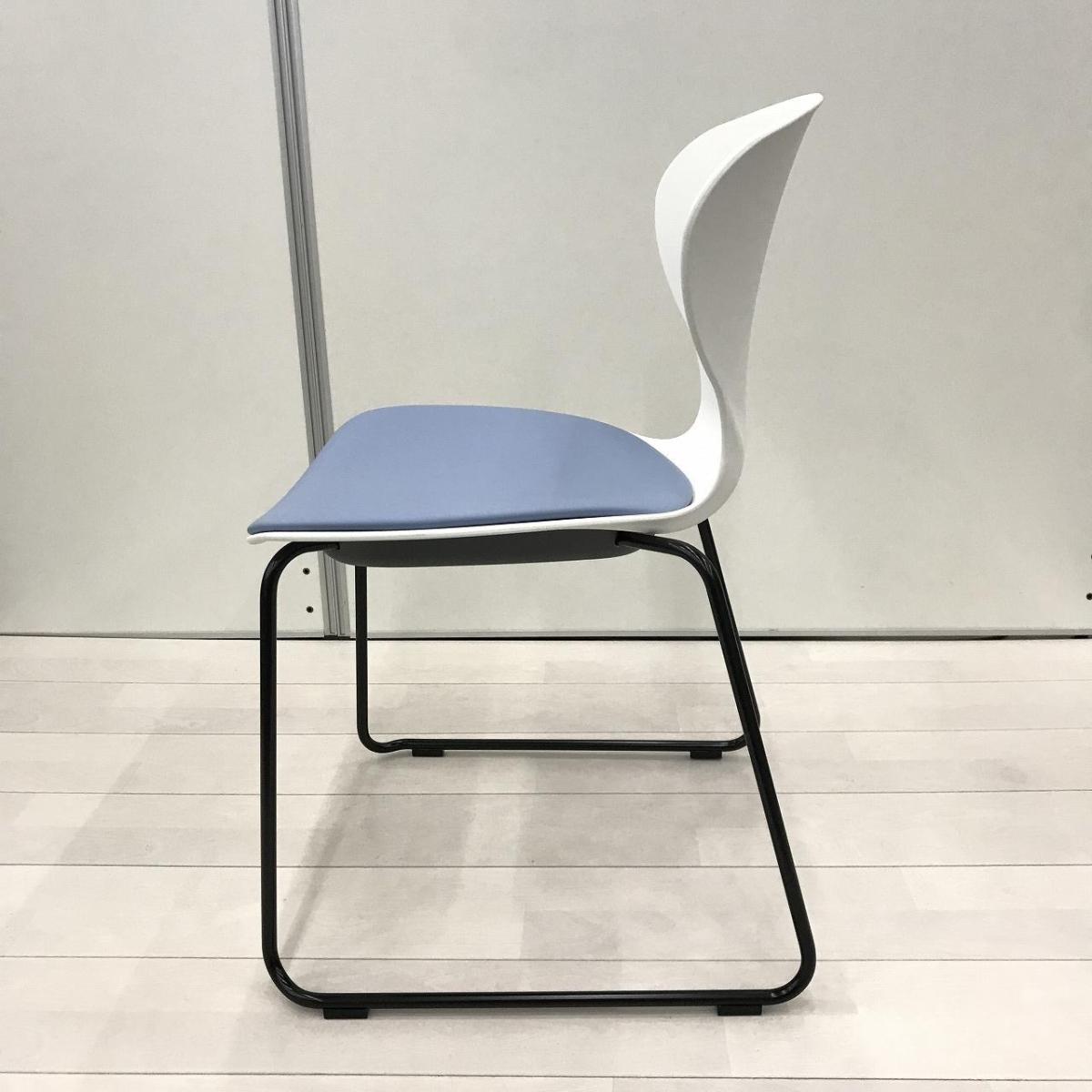 新古品!【大量入荷商品】【デザイン性のあるスタッキングチェア!打合せや会議室、休憩スペースなど使いどころ様々!】■オカムラ製 9370シリーズ スタッキングチェア ミーティング カフェチェア ■ホワイトシェルタイプ ■ビニール布座面 ライトブルー 【OKT85】【関東倉庫在庫品】【弊社使用欄:】- 全店共通商品