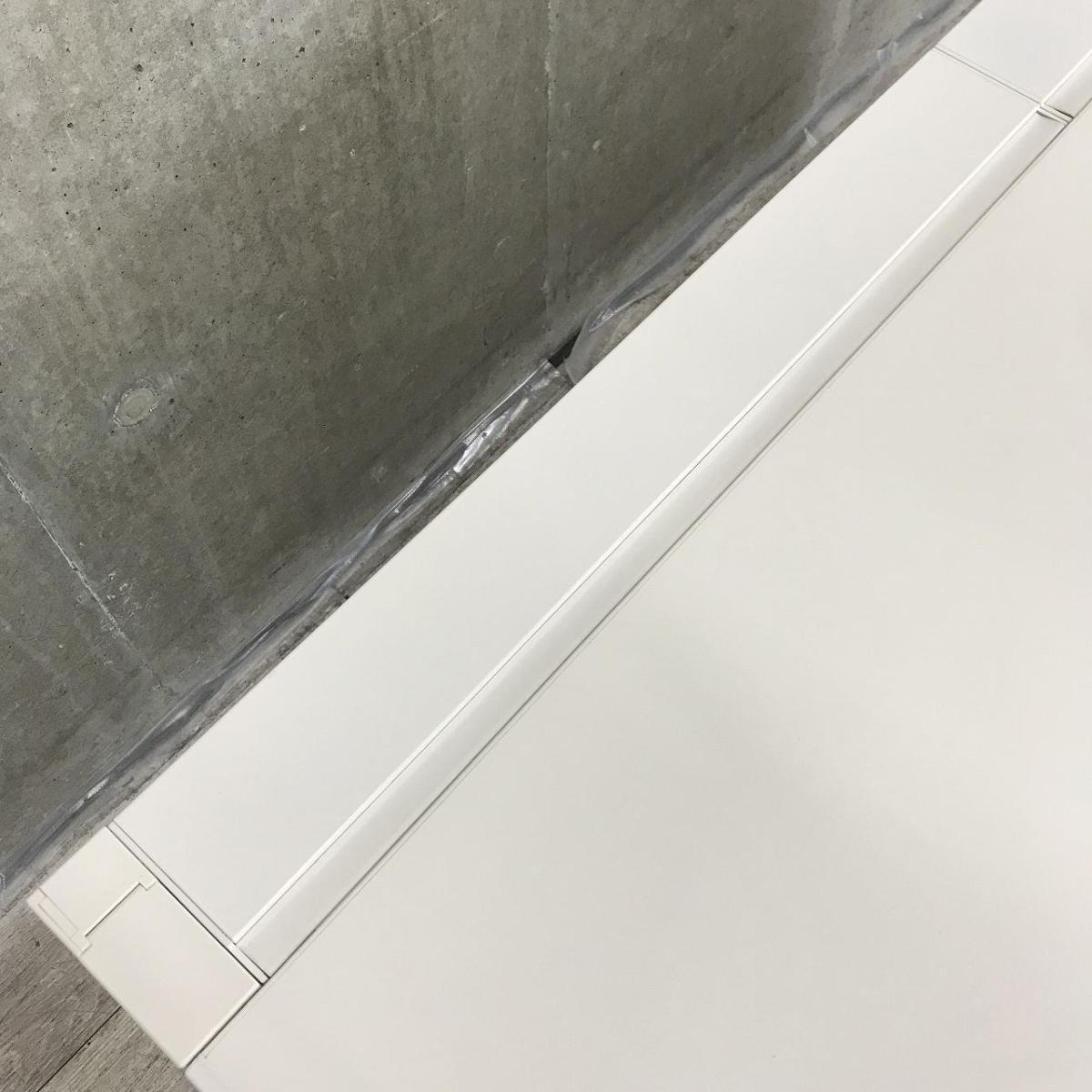 - 机の角がシャープなので、隣り合うデスクがフラットにつながります。すっきりとしたデザインです。