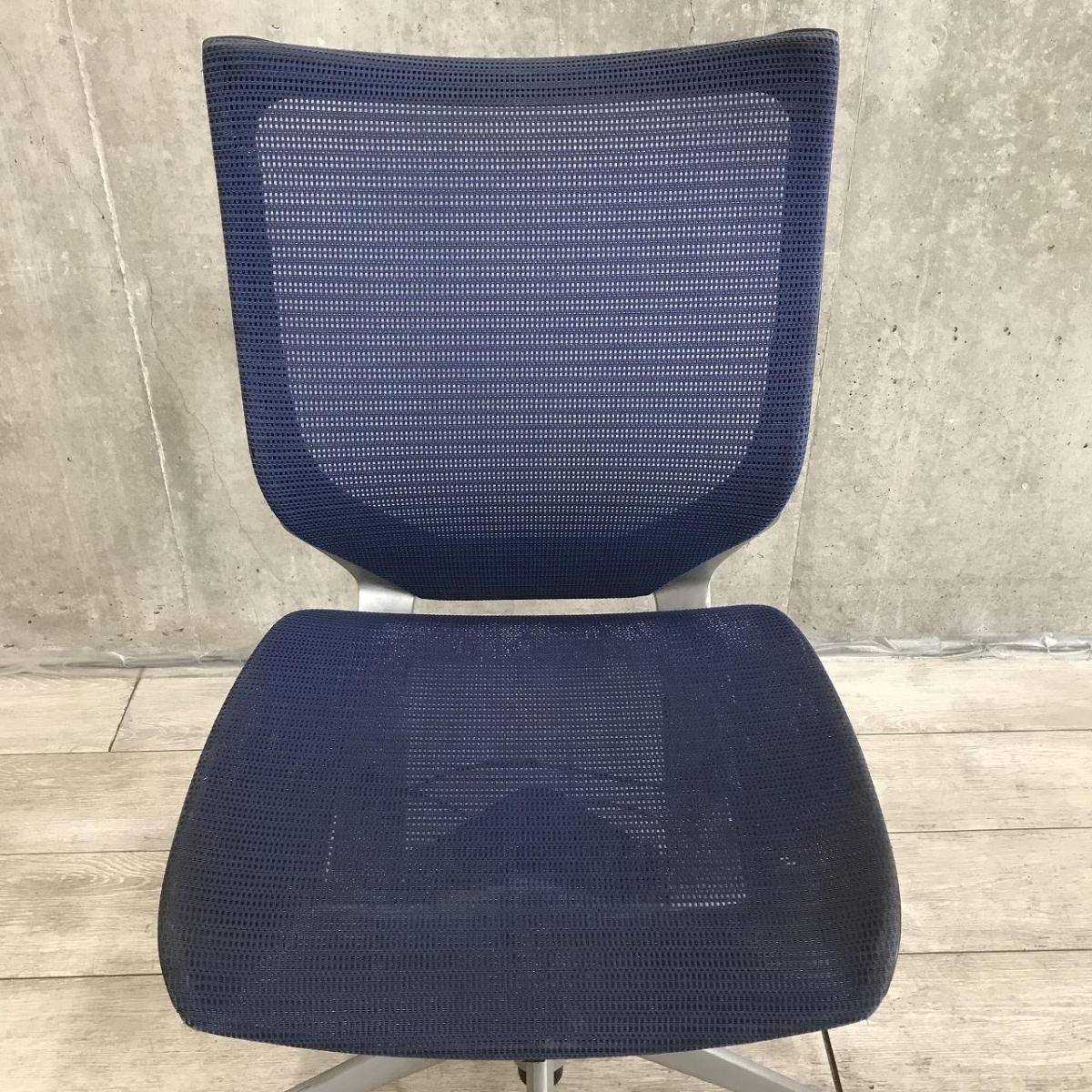 【国産メッシュチェアの代表格!オフィスの執務室、会議室におすすめ!】■オカムラ(okamura)製 バロン(Baron)チェア ローバック 肘無し ■背面メッシュ ■ハンガー付 ■色:ネイビーブルー×ブラックシェル ■オフィスバスターズ東大阪店