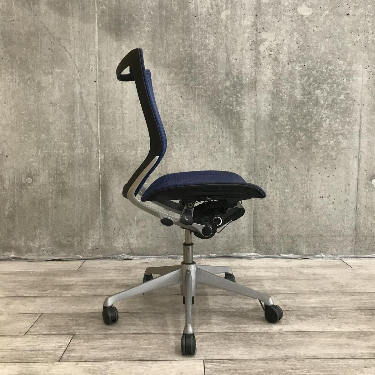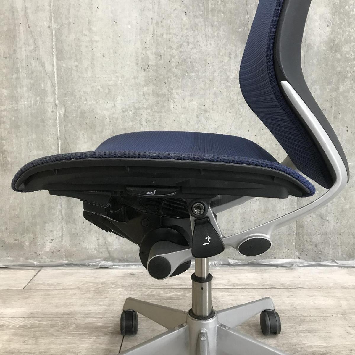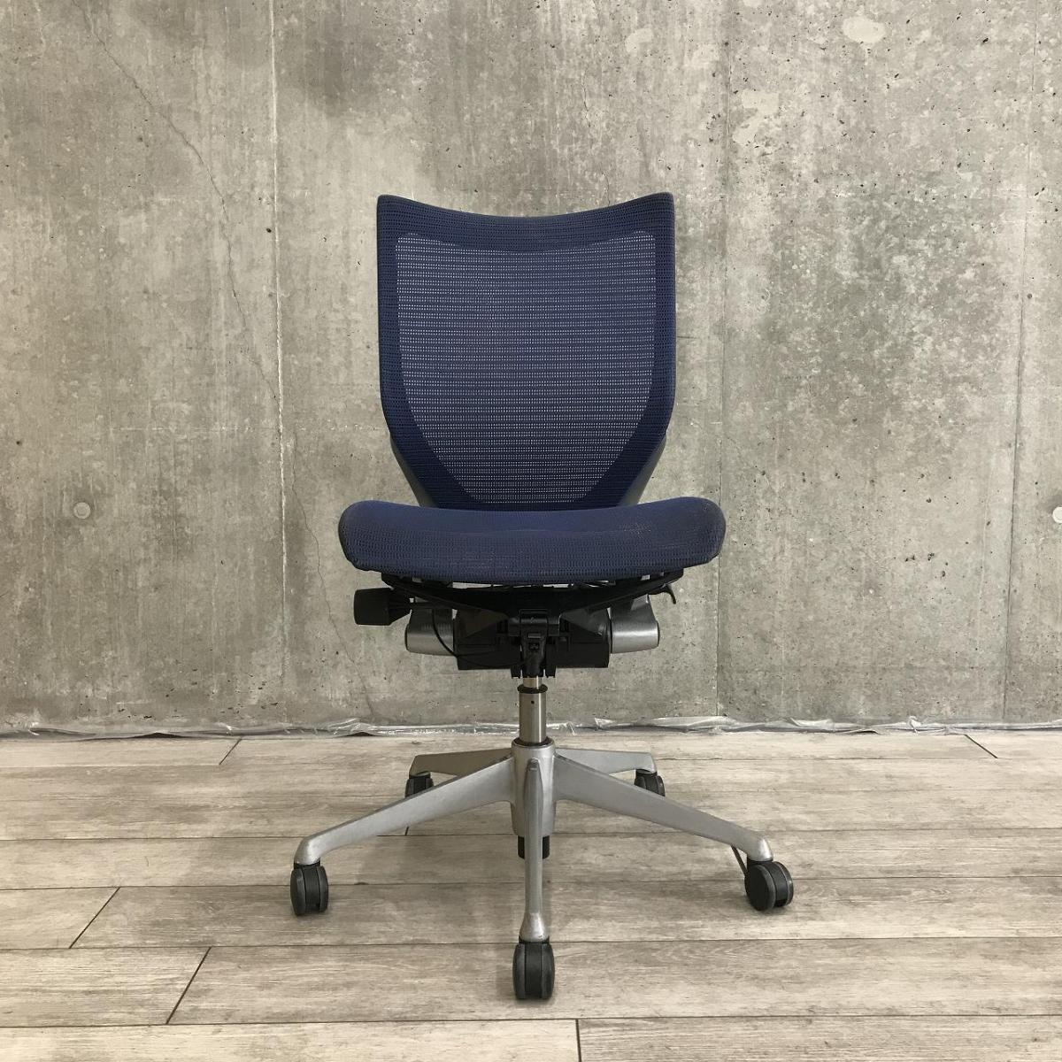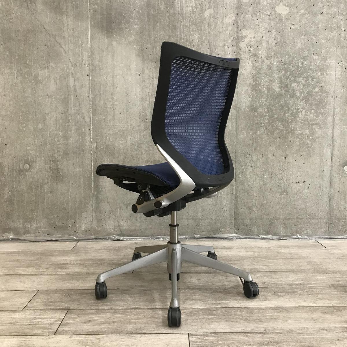 【関東倉庫在庫品】【人間工学に基づいた快適設計で身体にやさしくフィット!】■オカムラ製 バロンメッシュ 肘無しローバックチェア ■ブルー【弊社使用欄:A01022479】【ECBMC】- 渋谷サテライト