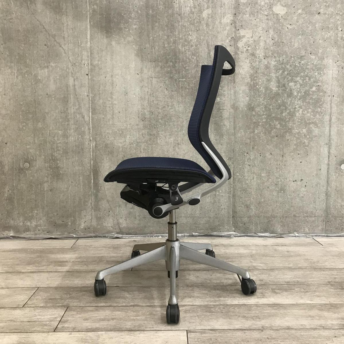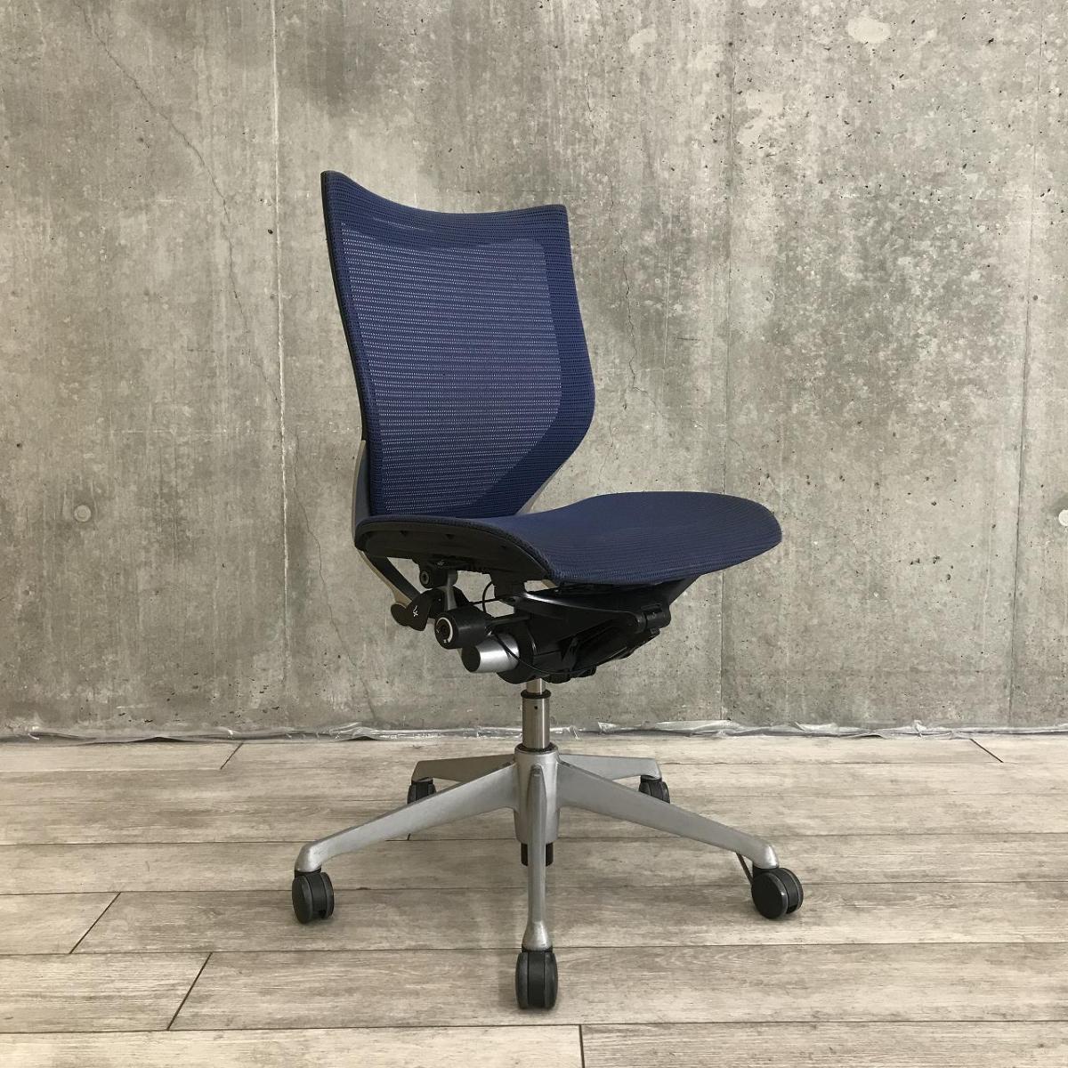 【オカムラ製の王道高級チェア!通気性ばっちりで長時間の着座も快適に過ごせます!】■オカムラ(okamura) バロン(Baron) 肘無し ローバック ■背面・座面メッシュ ■ブルー